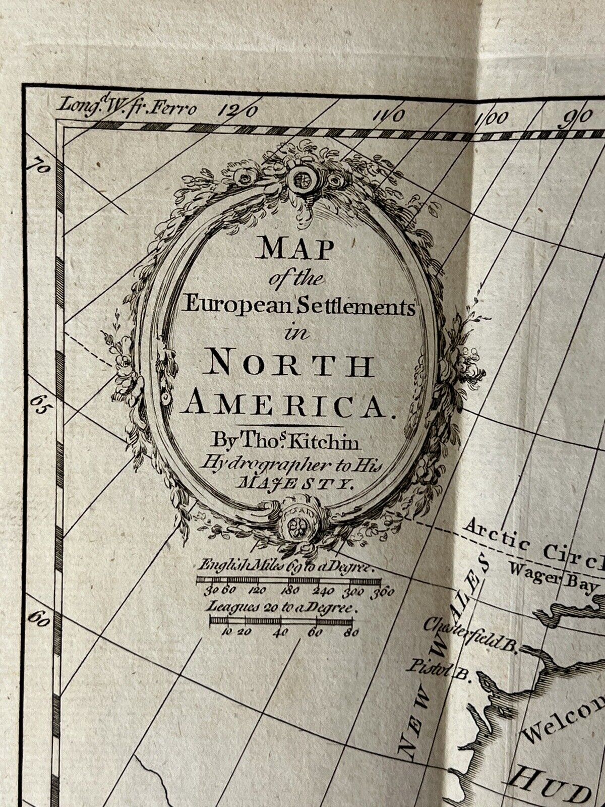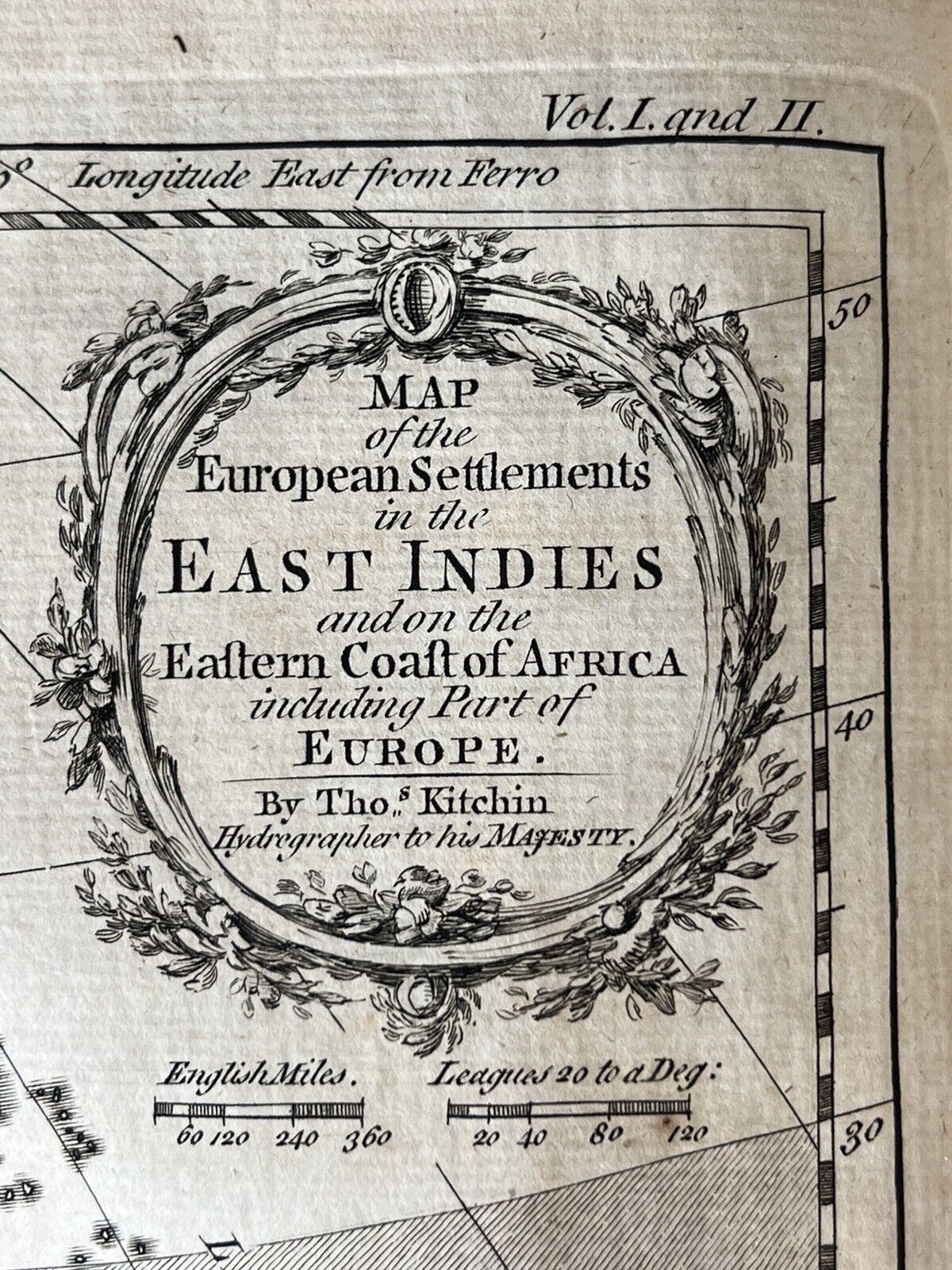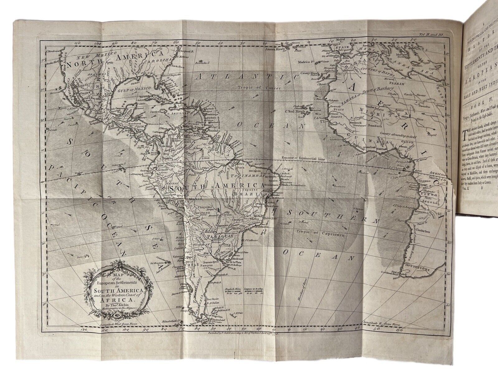 There is a fascinating 'Map of European Settlements in North America' contained in the fourth volume dated April 24th 1776 just three months prior to the declaration of independence, showing American cities, states, etc, just prior to the declaration, as well as two huge foldout maps in volumes one and two, one of which shows California as an island as early North American maps erroneously and famously did for a short time period from circa the 1770s. Many of Thomas Kitchin's maps individually sell for several thousand GBP/USD for their fascinating content. Here in this set we find three of his famous maps bound in volumes 1,2, and 4.