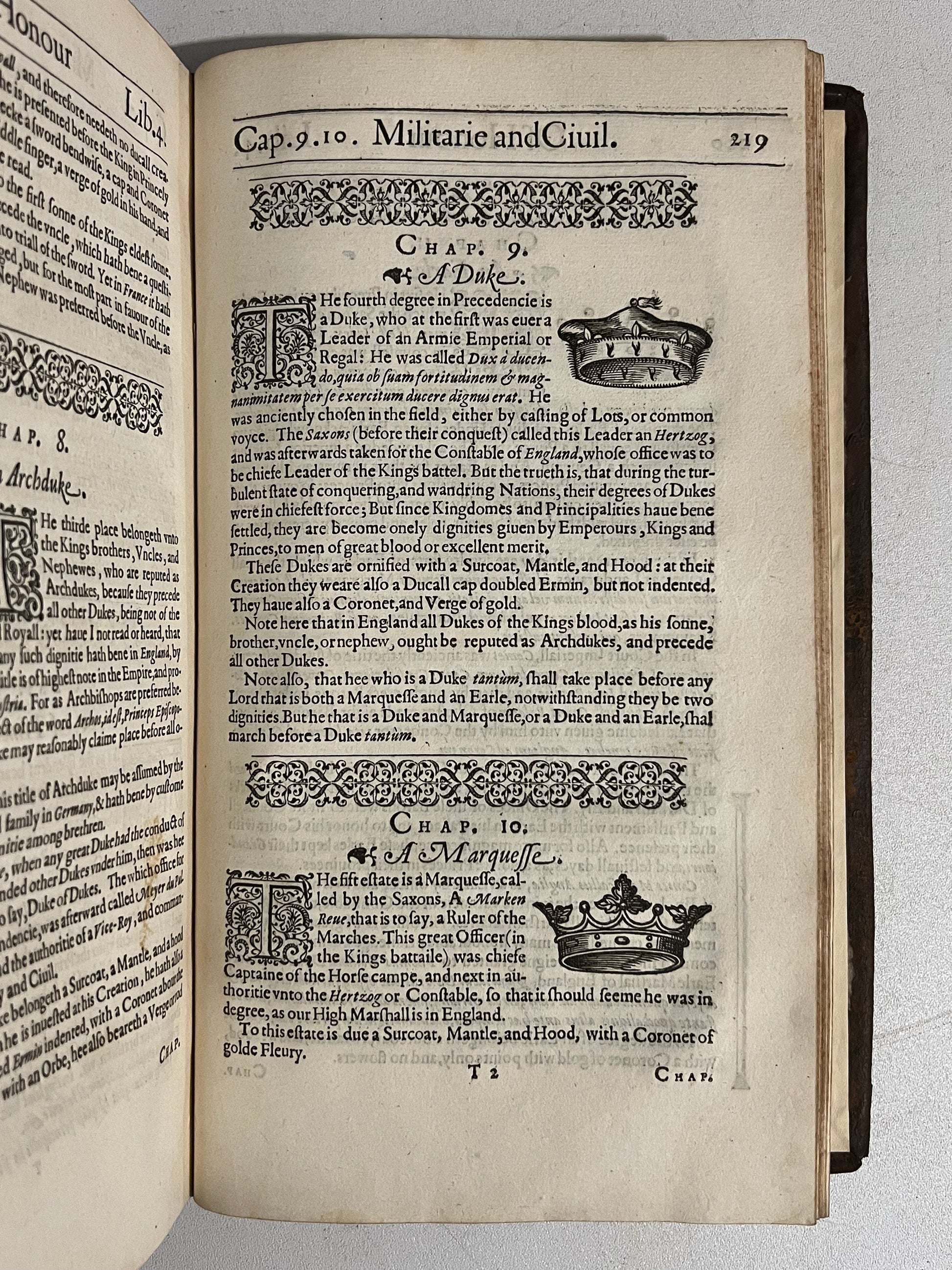 Honor Military and Civill, contained in foure Bookes. By William Segar. London: Robert Barker, 1602, folio.