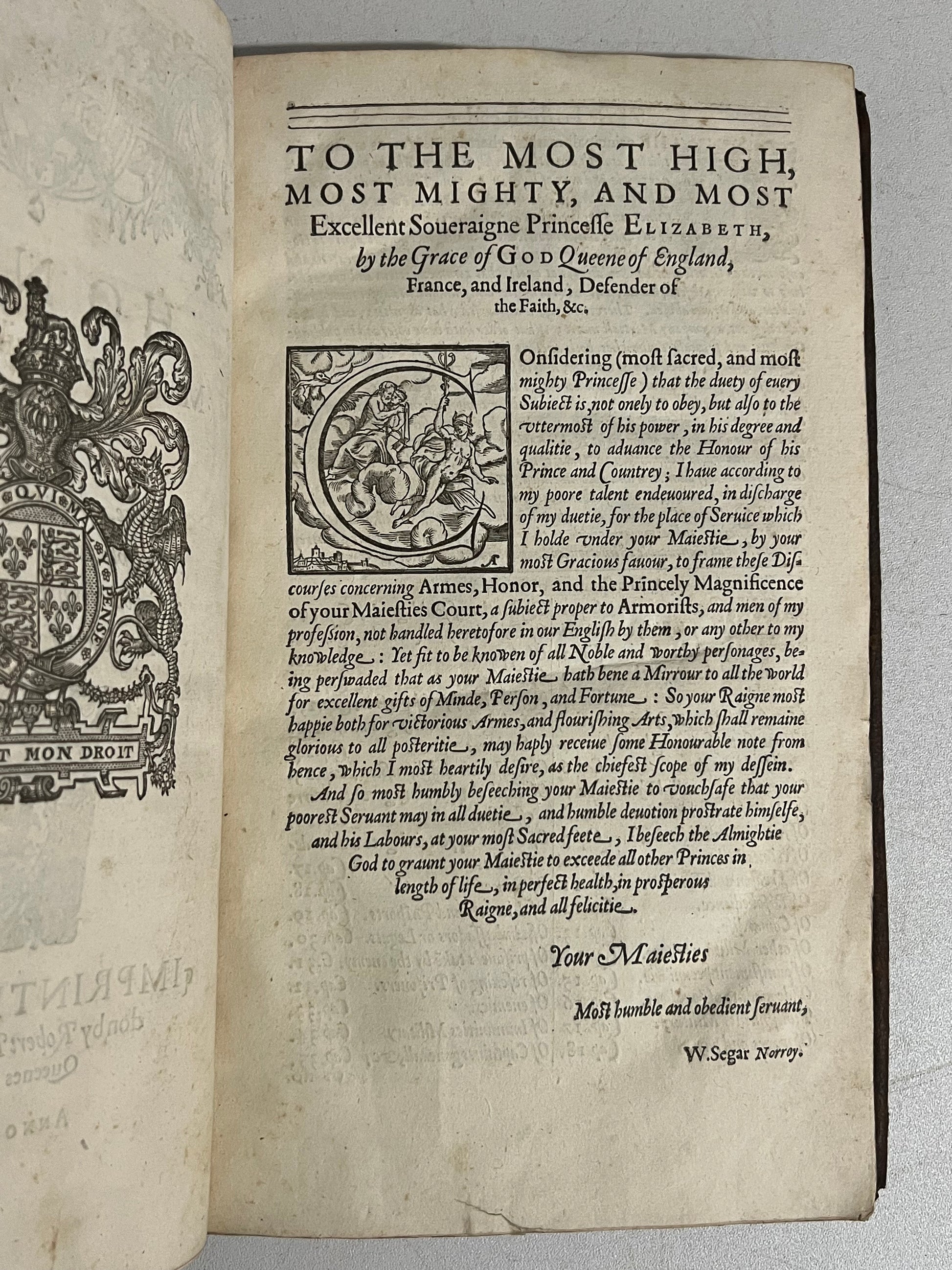 THE DUDLEY-GEORGE-CARY-ELWES COPY OF THE FIRST EDITION OF WILLIAM SEGAR'S BEST KNOWN WORK WITH BEAUTIFUL FOLDOUT PORTRAITS.