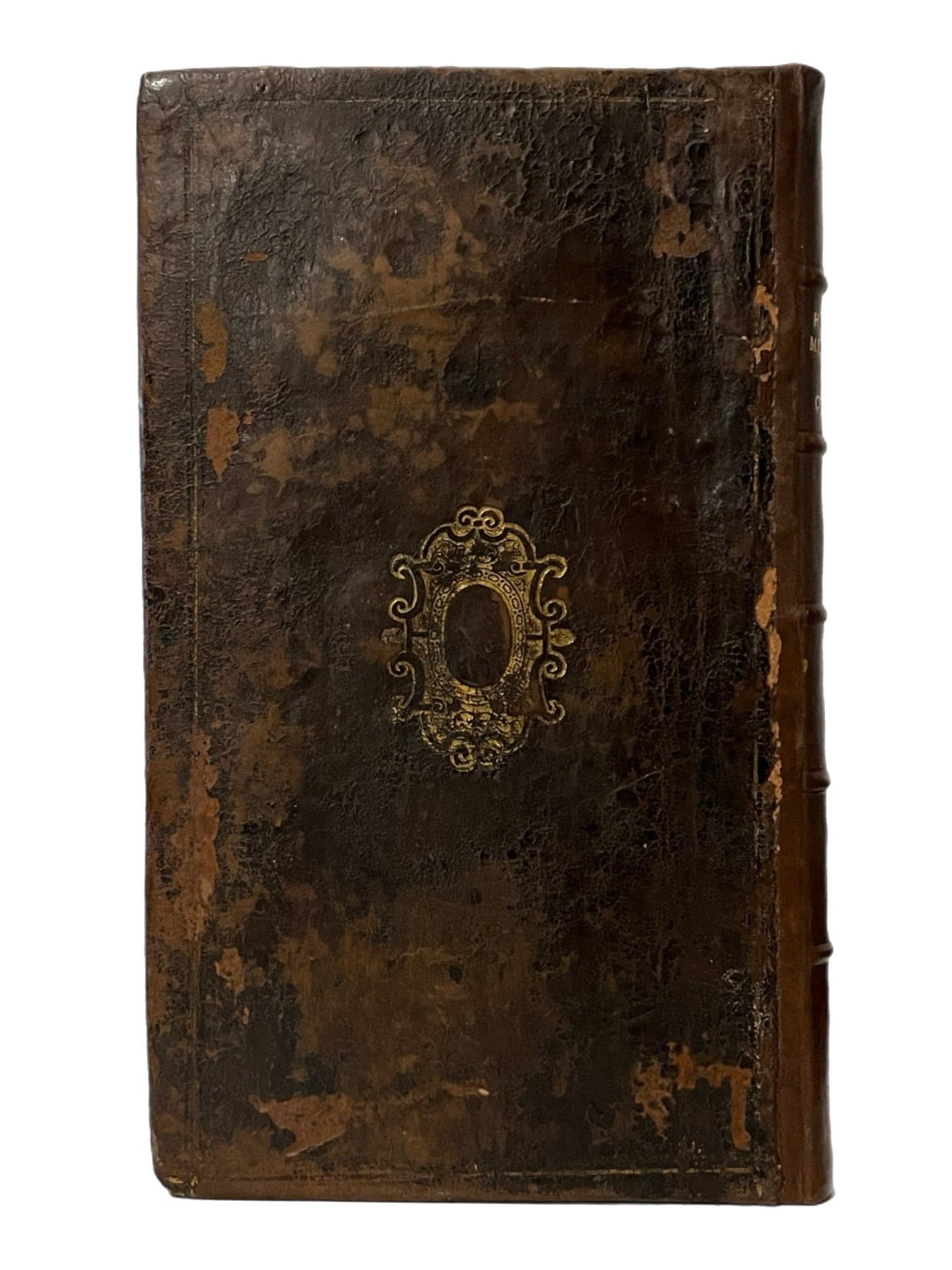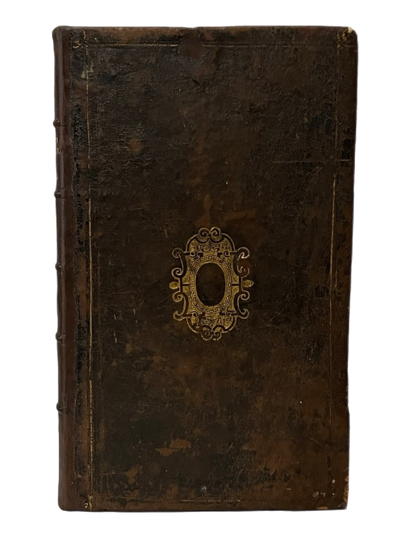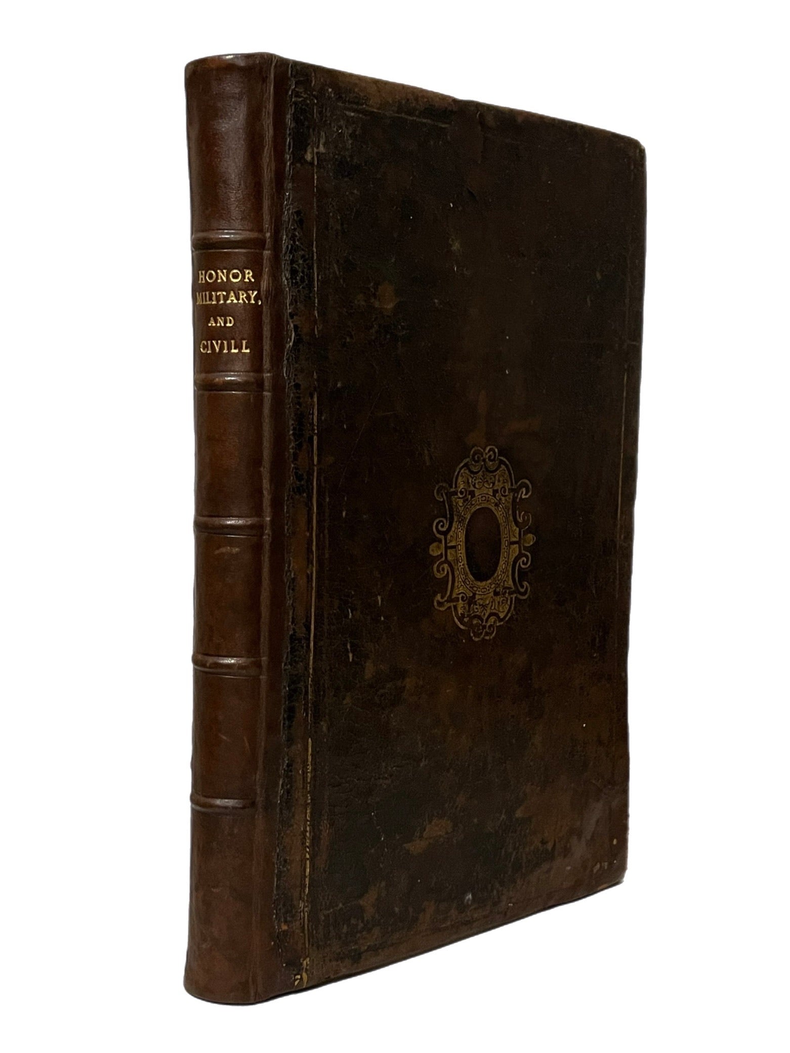Near contemporary (or perhaps contemporary) full calf with a heraldic emblem tooled in gilt to both boards, unidentified. Boards ruled in gilt, some loss. Rebacked attractively fairly recently (circa after 1968). Binding rubbed with some losses to the leather of the early boards. Some restoration to the corners and edges. Replaced endpapers and pastedowns preserving the earlier two bookplates to the front pastedown described under provenance, above. Inscription dated 1738 to verso of title page. Lacks frontispiece, and thus contains 7 of 8 engraved portraits. Lacks the blank leaf F2 as with almost all extant copies, likely bound without this blank originally. Some minor loss in the upper right corner of the final two gatherings (X1-Y2) which has been restored, just catching a few letters of text on the verso of one leaf, and occasionally catching some page numbers which have been supplemented by hand, no loss of sense to text. Generally very clean throughout the text, fully legible, without loss of sense. A lovely well cared for example of a scarce first edition with notable provenance.
