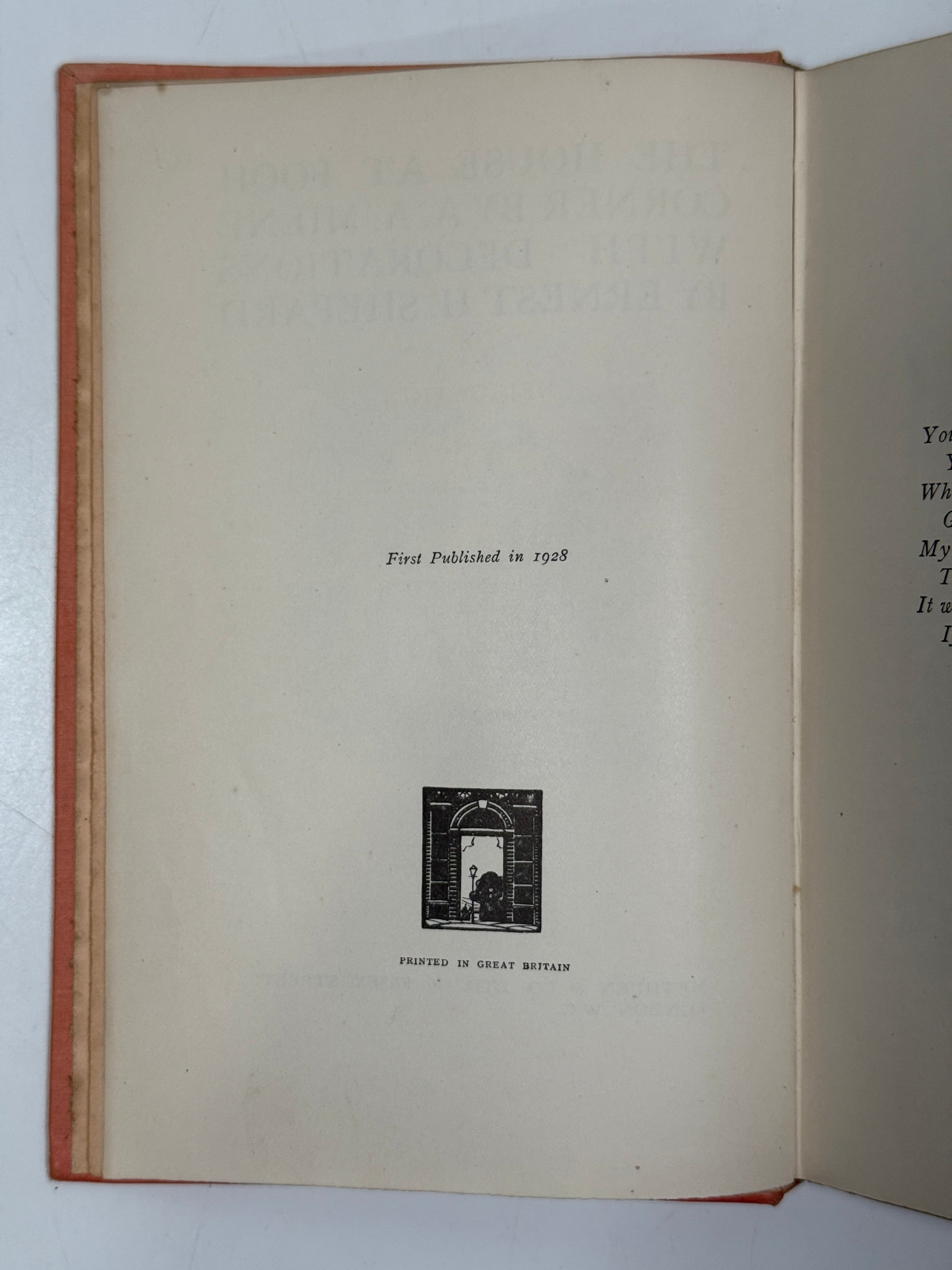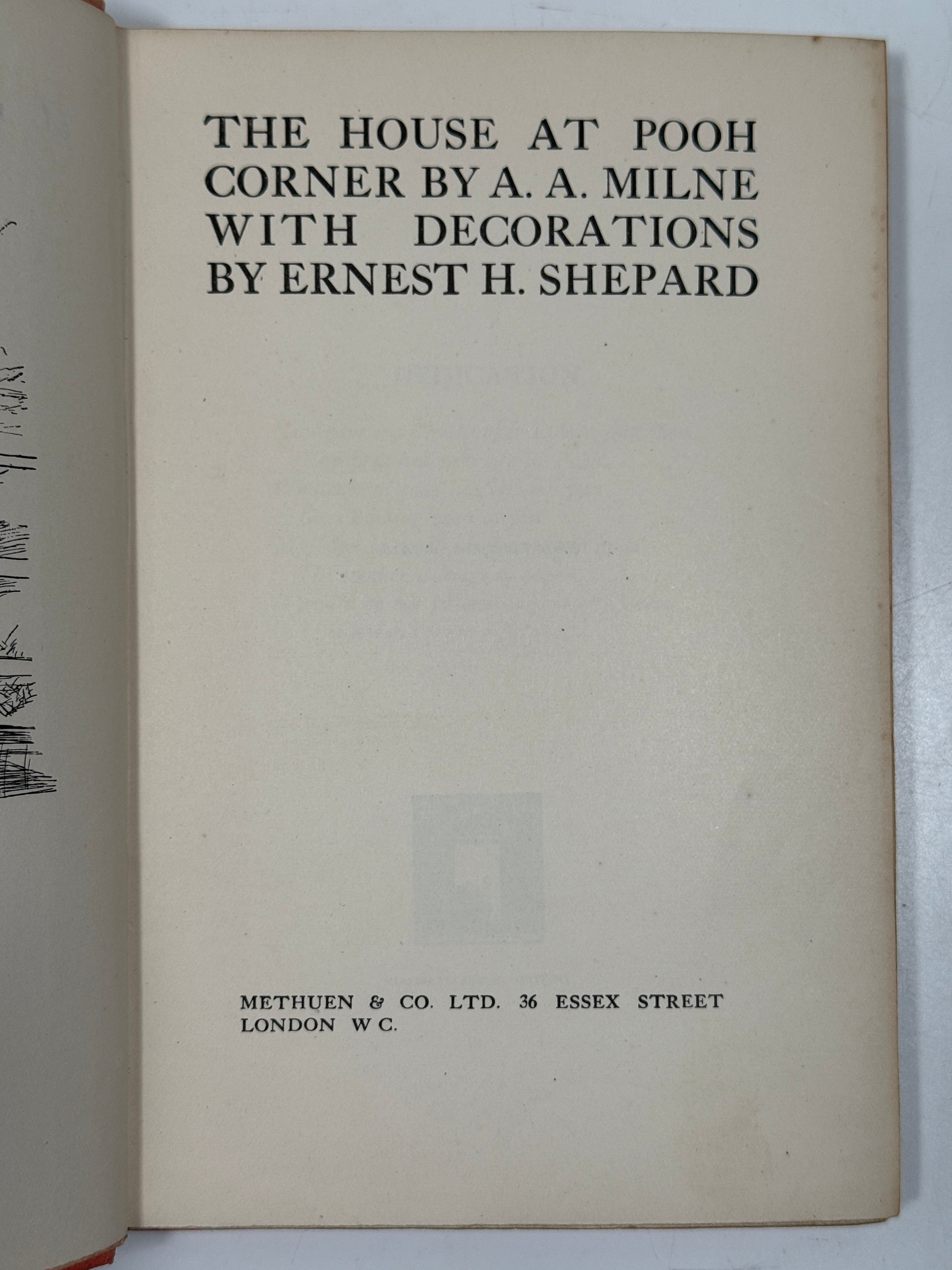 The House at Pooh Corner by A. A. Milne with Decorations by Ernest H. Shepard. London: Methuen & Co., Ltd., 1928.