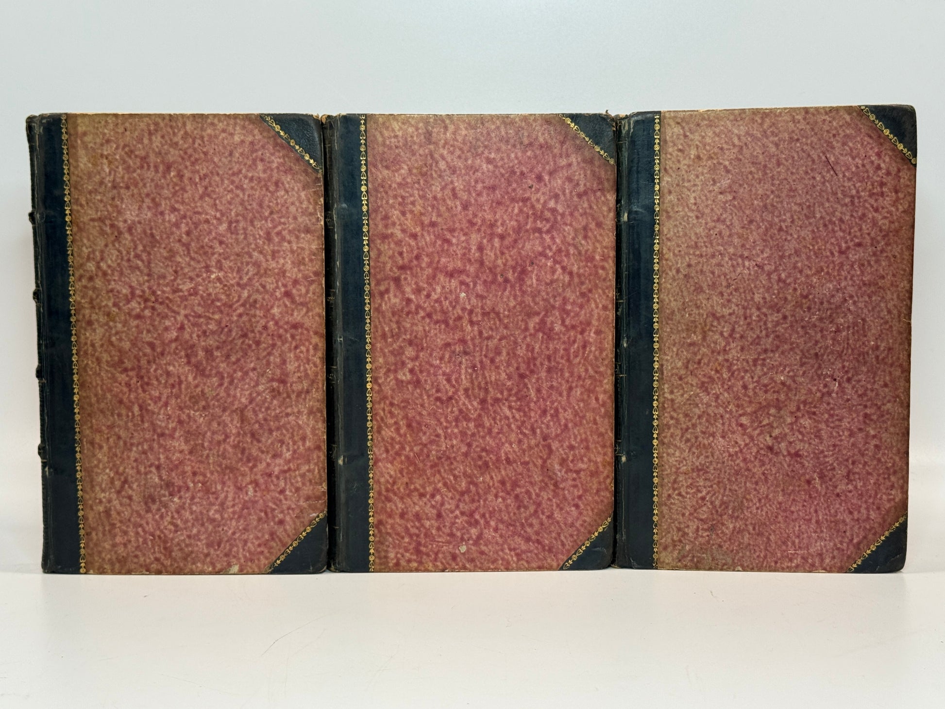 Contemporary quarter navy morocco over marbled paper backed boards with gilt titles and volume numbers to spines. Bindings with very minor signs of wear, some minor toning, very minor and faint marks, and few very minor scratches. All boards attached with minor wear to joints and hinges. Shelf and edge wear. Marbled page edges somewhat dulled with the top edges darkened. Bookplate attached to front pastedowns and binder's sticker attached to front blanks. Text blocks very clean with light toning and some foxing. Dark mark to the gutter between pp.80 and pp.81 in volume one. Pp.1/2 in volume two partially detached. Very small hole to the bottom of pp.3/4 in volume two, not affecting any text or legibility. Without the 3pp. catalogue rarely found at the rear of vol 3.