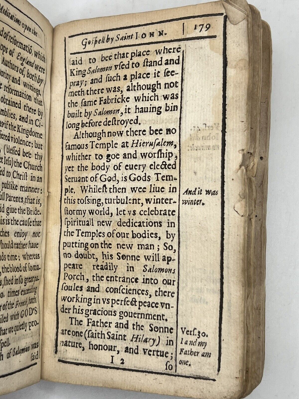 A fantastic copy in the original unrestored full vellum binding of this incredibly scarce commentary on John's gospel in English, printed around the time of the printing of the King James Bible. We could trace zero sales records for this title over the last century at auction, though several copies are held institutionally around the world. It is very rare in commerce, this likely being the only opportunity at acquisition. English vellum bindings of the early 17th century are also notably scarce.