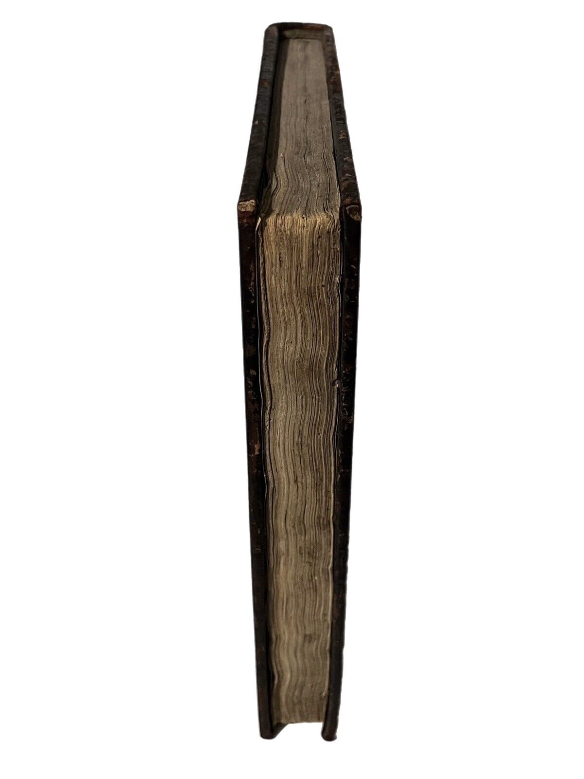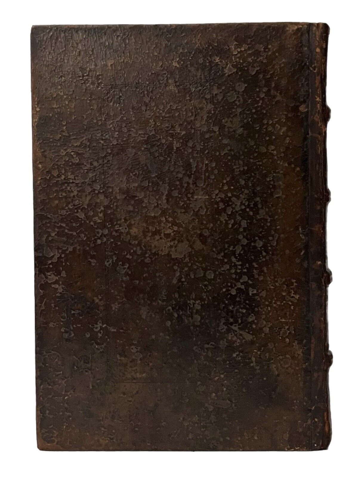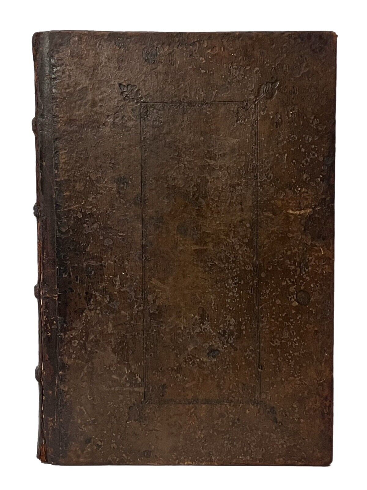 17th century blind-panelled full calf binding, rebacked circa the late 19th century, rubbed, but structurally secure with both boards securely attached. With a bespoke modern green cloth drop-over case with tooled label affixed to the upper spine and the date tooled in gilt to the foot, very slightly discoloured in places, but generally attractive and serves its purpose well.