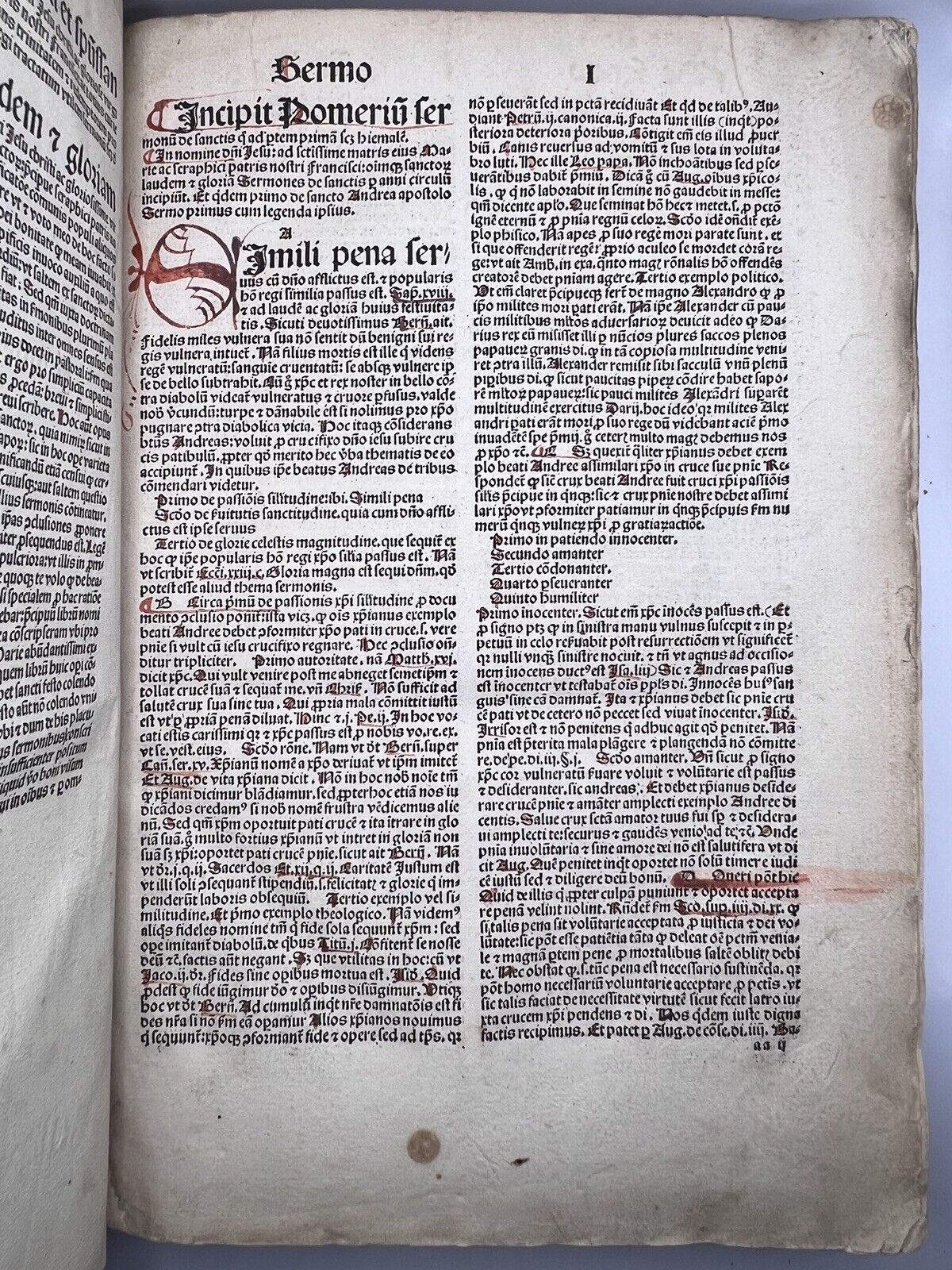 A BEAUTIFUL EARLY PRINTED FINELY RUBRICATED COPY OF PELBARTUS' FAMOUS SERMONS. VERY RARE.