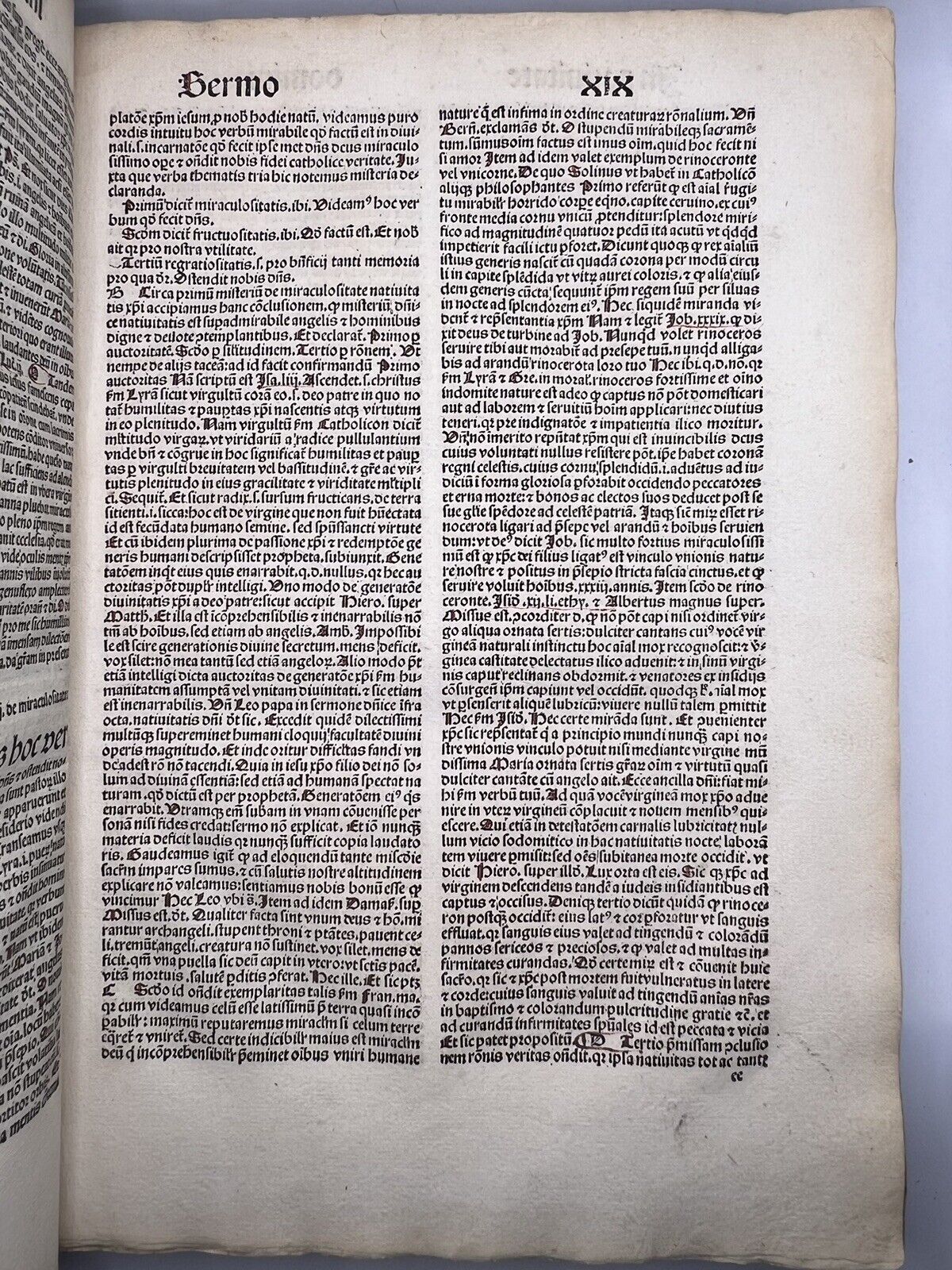 Pelbart of Temesvár (c.1435–1504) was a Hungarian Franciscan preacher, theologian, and author whose works became significant in late medieval sermon literature. Born in Temesvár (now Timișoara, Romania), he studied at the University of Kraków, earning his theology license in 1463 and leaving as a doctor in 1471. By 1483, he was teaching and writing at the Franciscan Monastery of St. John in Buda, Hungary, where he began publishing extensively. His works, including Stellarium coronae Mariae Virginis, a collection of Marian sermons, and Sermones, a compilation of over 500 sermons, were widely printed as incunabula from 1498, but not many copies survive to today, institutionally or in private hands. After his death in 1504, his writings, completed by his student Oswald von Lasko, continued to be translated and published, influencing Hungarian literature and remaining a key source for medieval theological studies. Printings from during his lifetime are notably very rare, as with this copy.