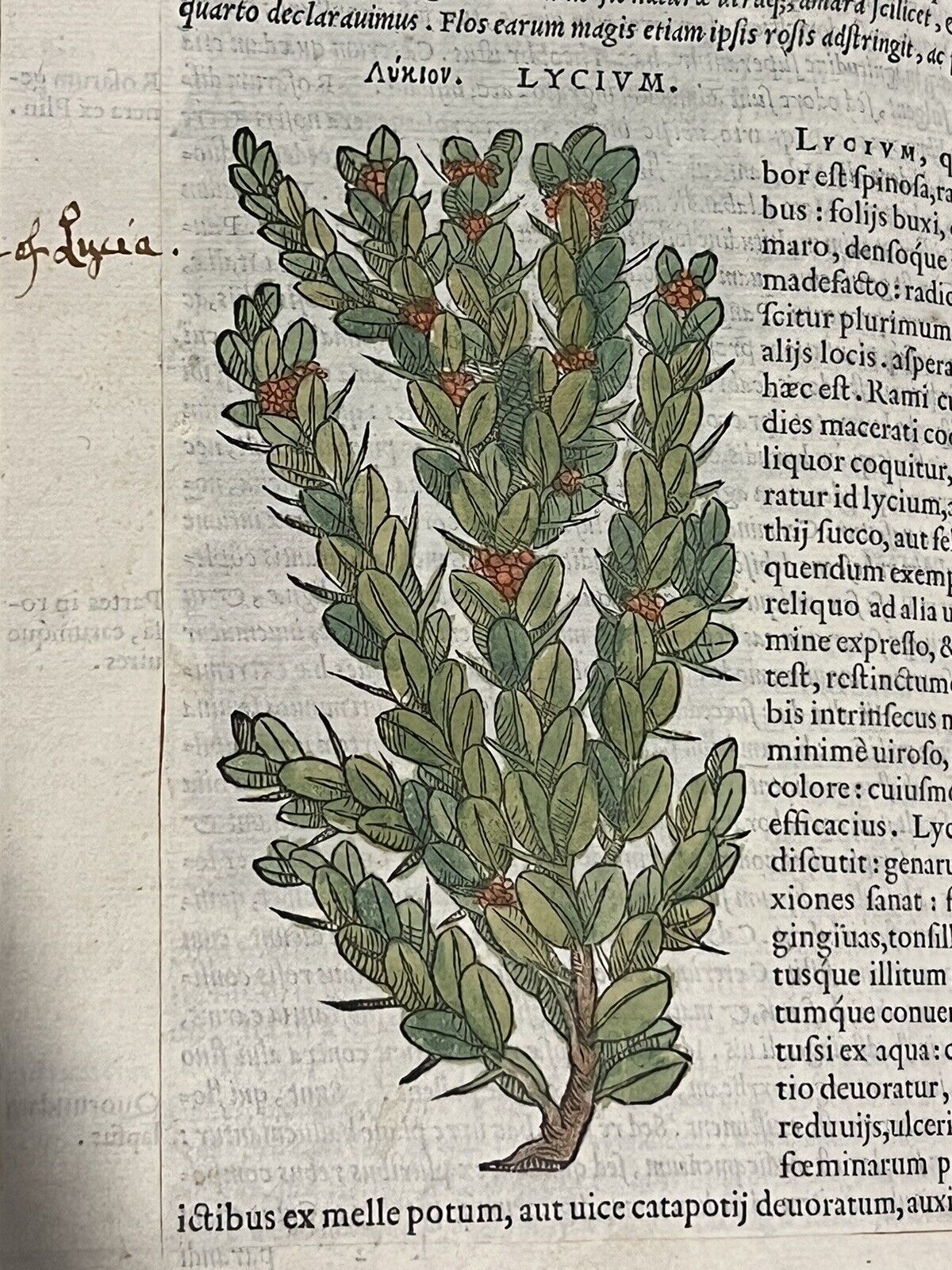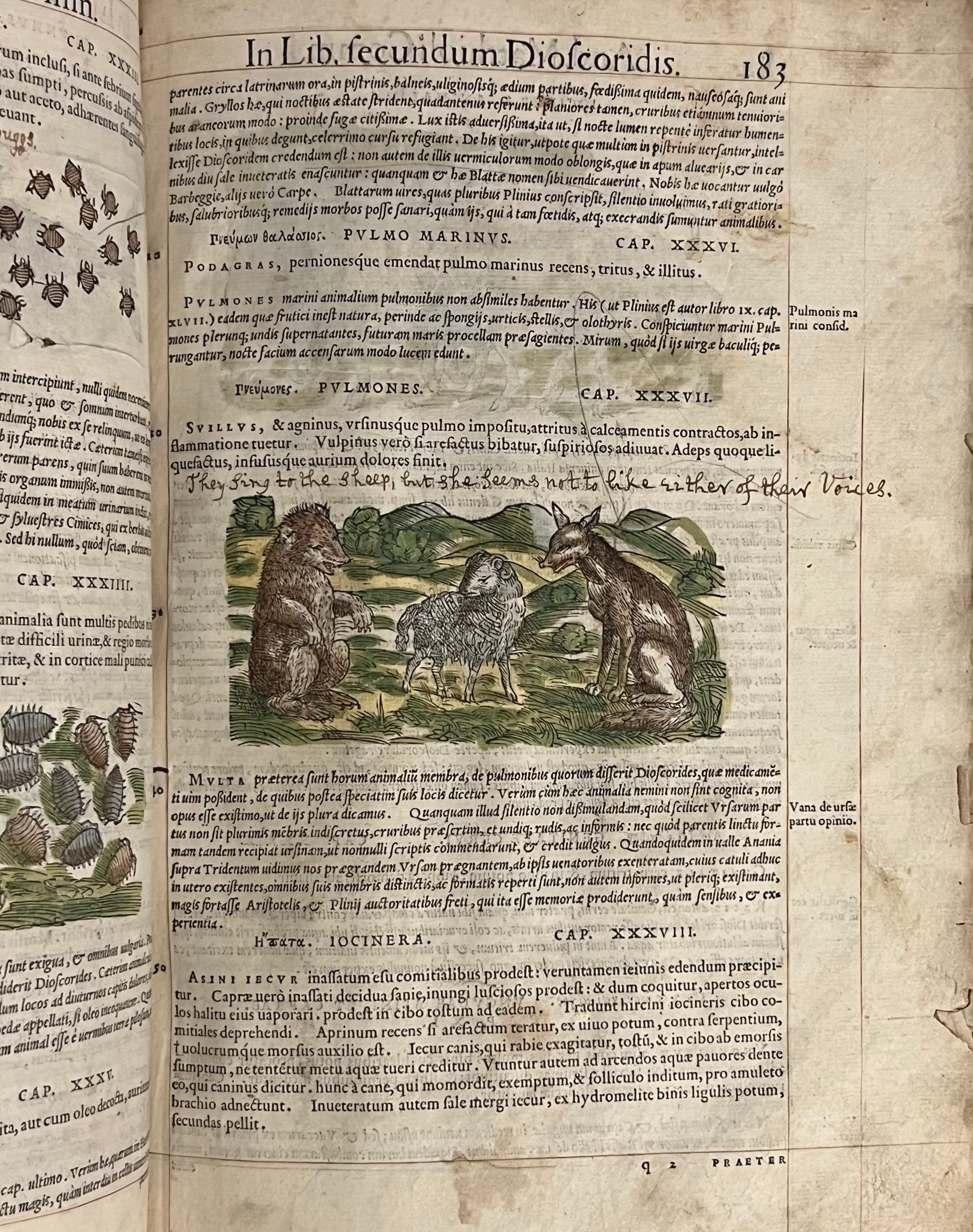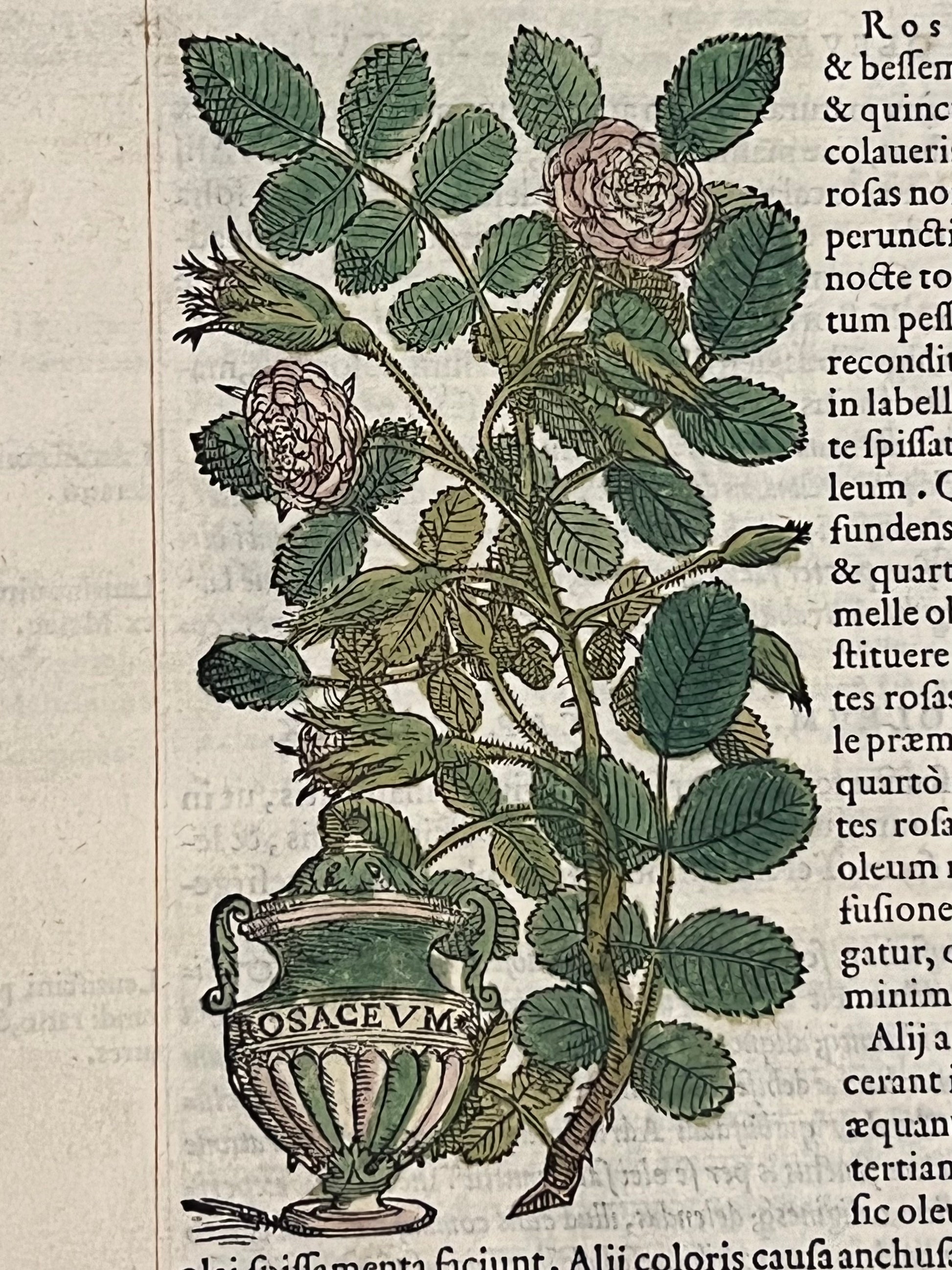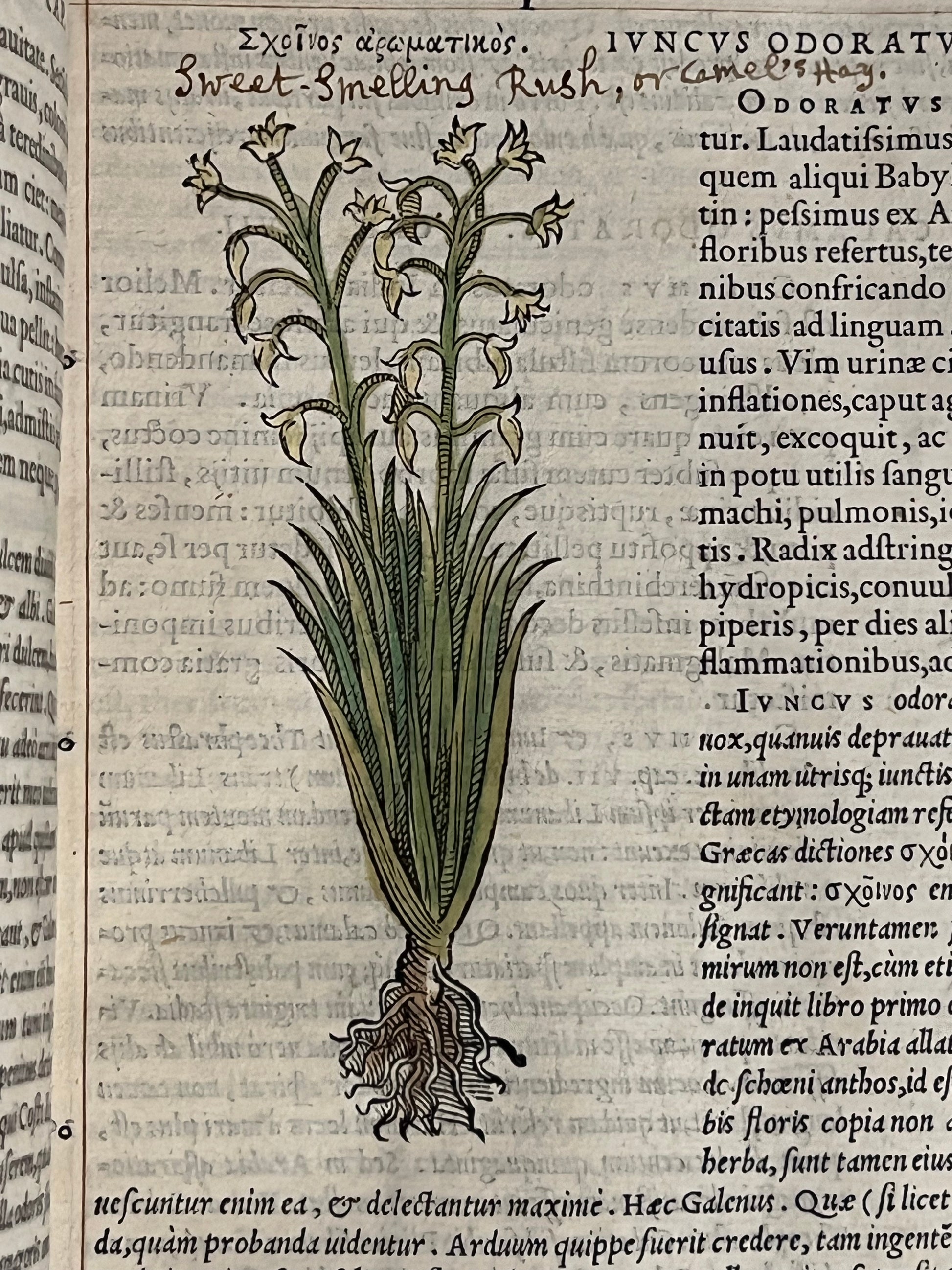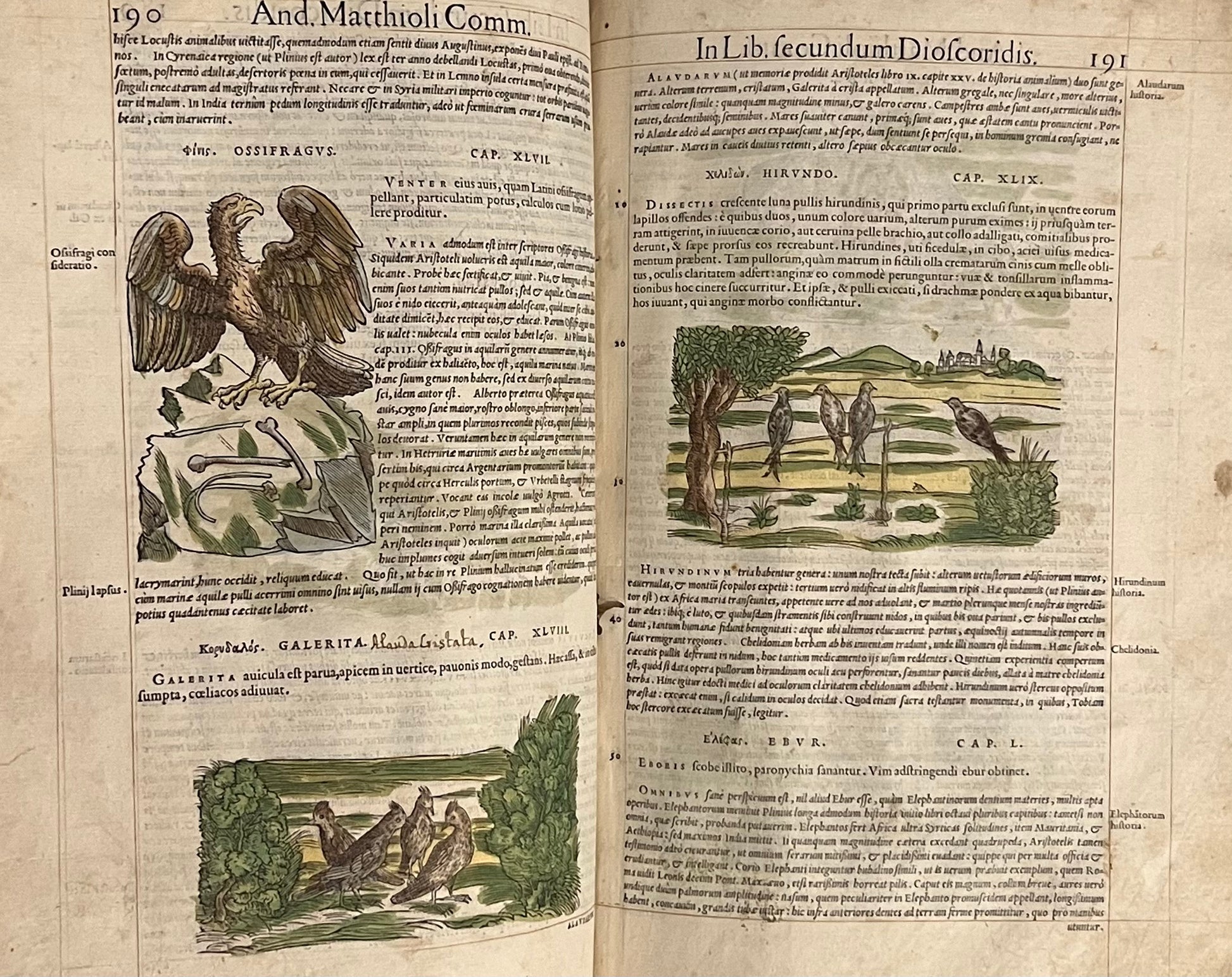 FIRST ILLUSTRATED EDITION AND THE FIRST IN LATIN OF MATTIOLI'S IMPORTANT HERBAL, HERE HAND COLOURED AND WITH EXTENSIVE MARGINALIA BY THREE EARLY MODERN HANDS IN LATIN, SPANISH, AND ENGLISH!