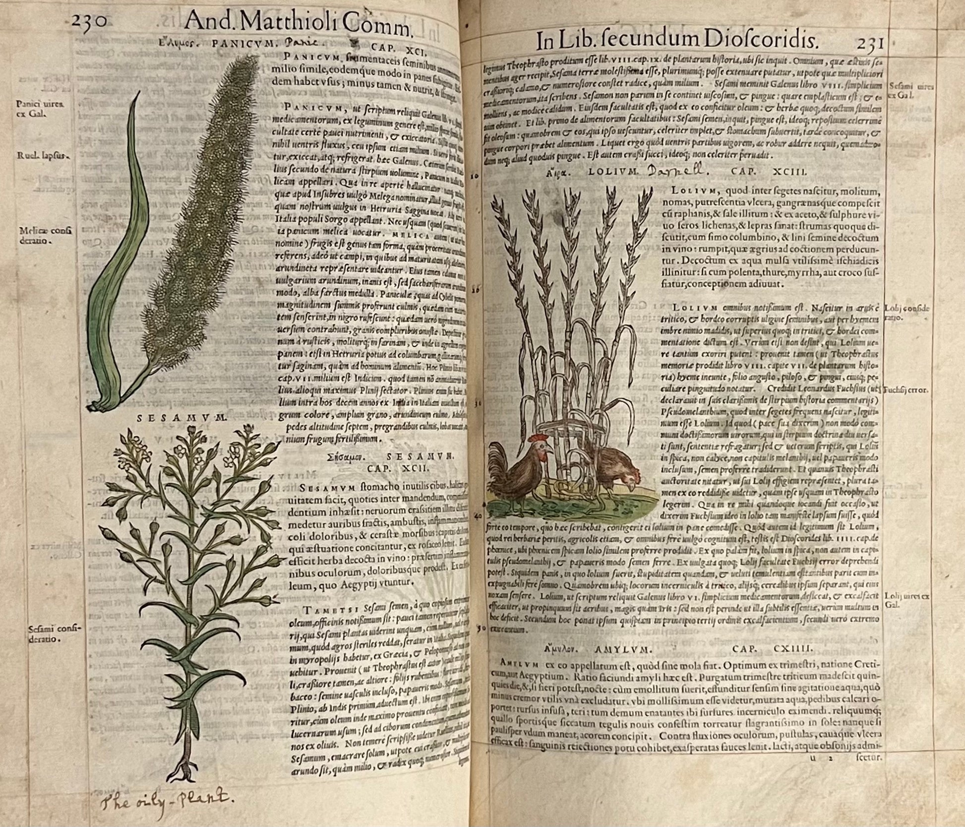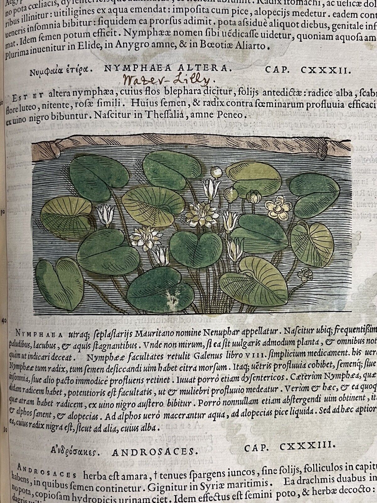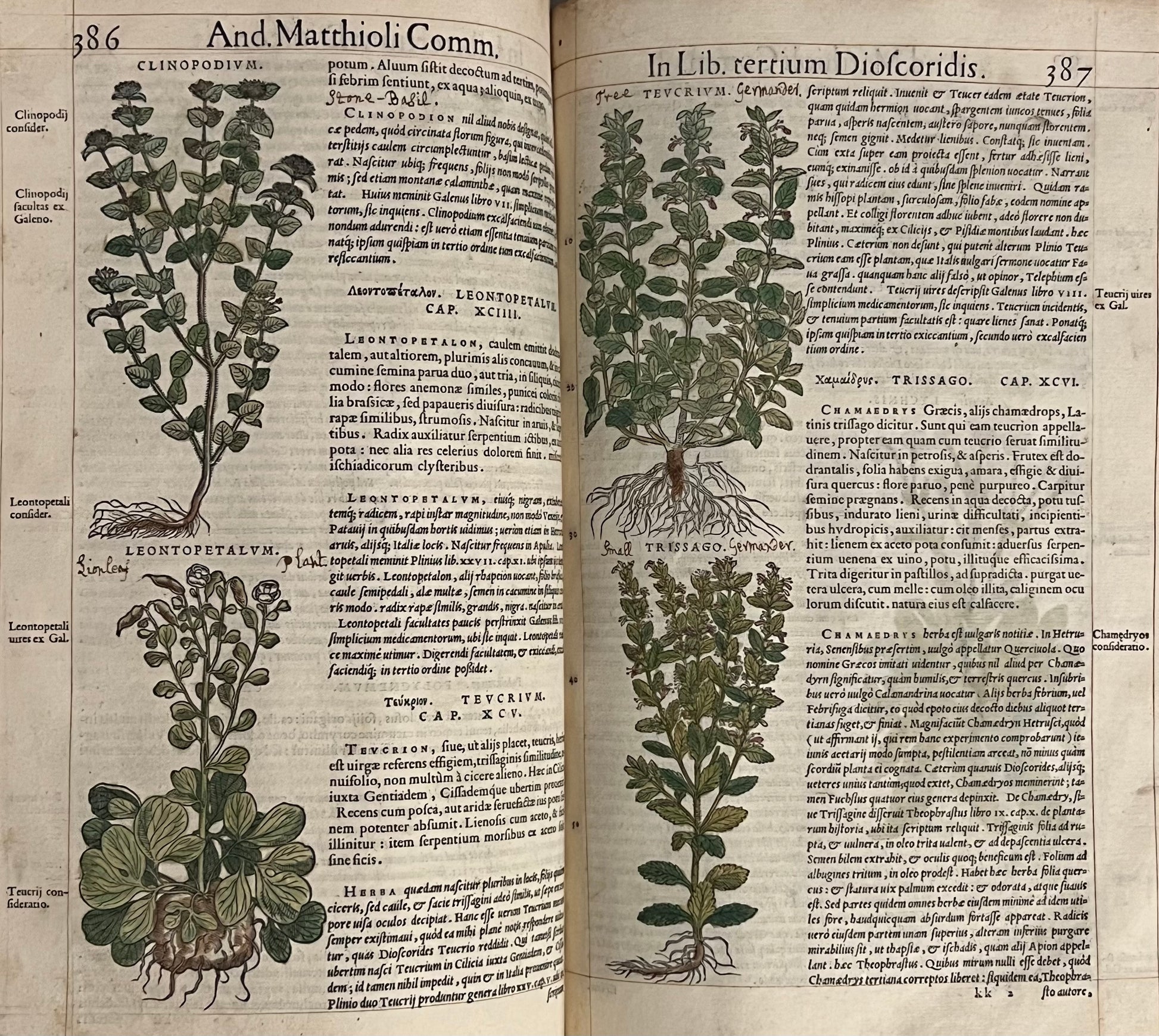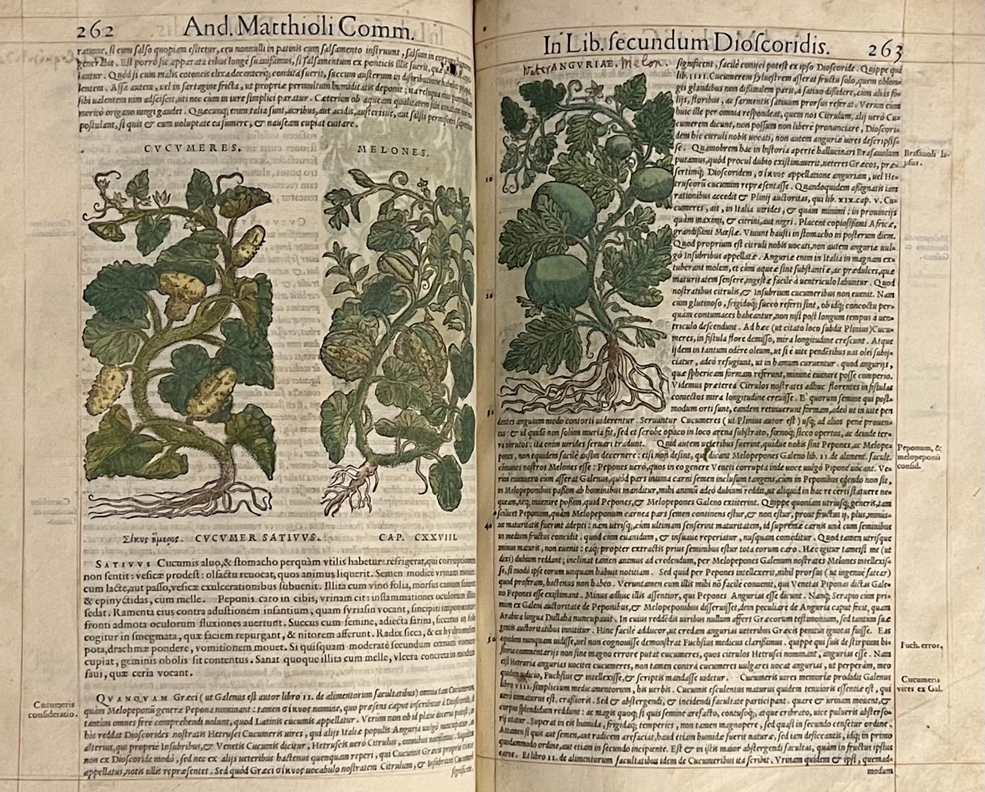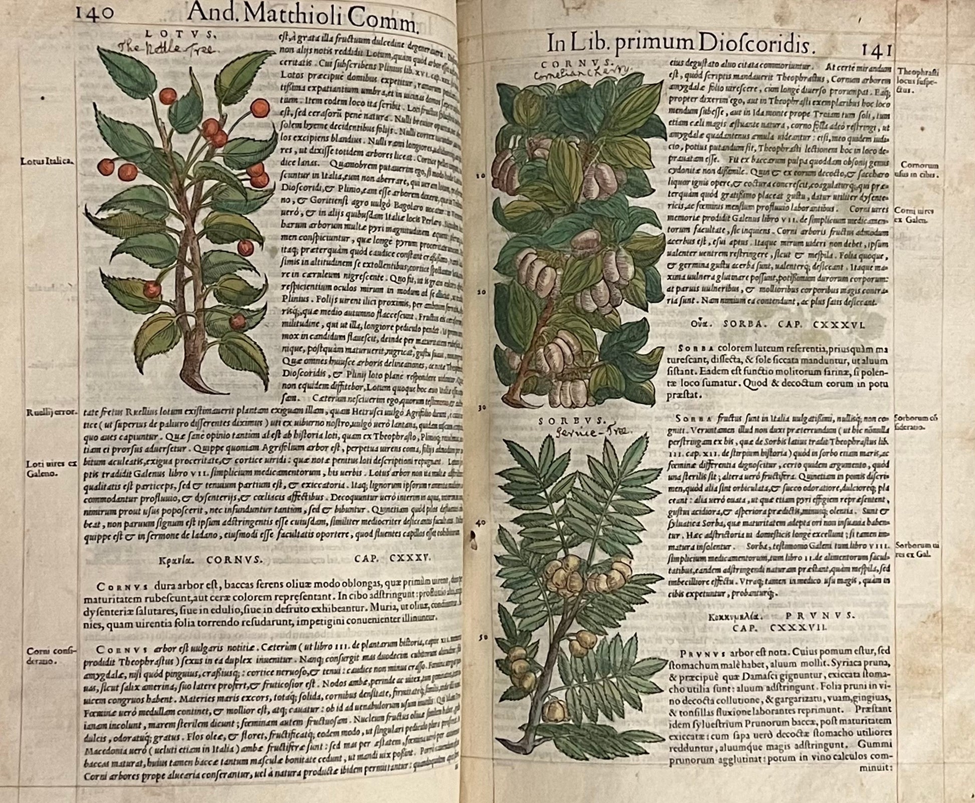 The first illustrated edition, and second overall, of Mattioli's magnum opus, one of the most prominent herbals ever printed, here beautifully coloured throughout and with extensive early modern marginalia in Latin, Spanish and English.