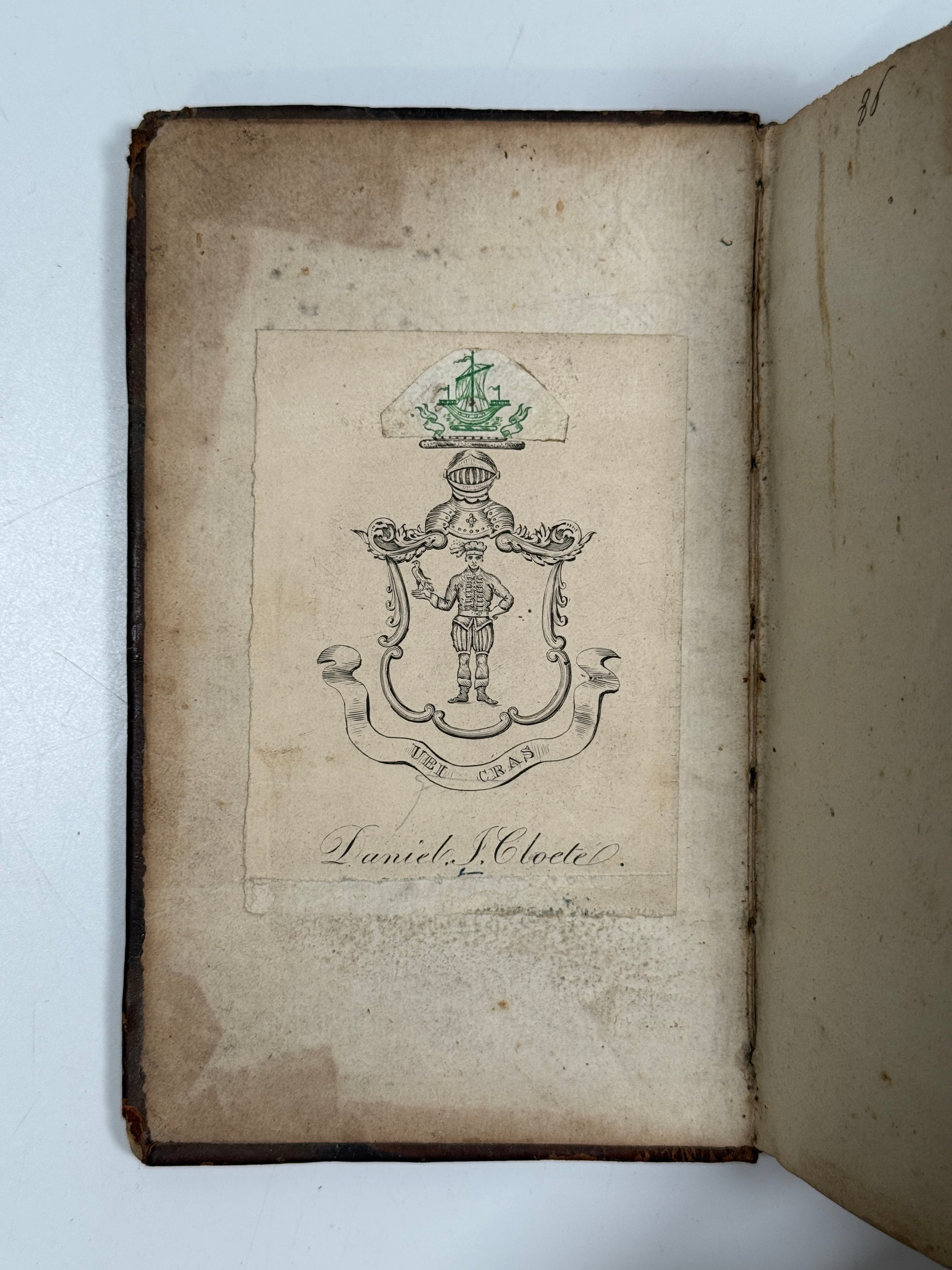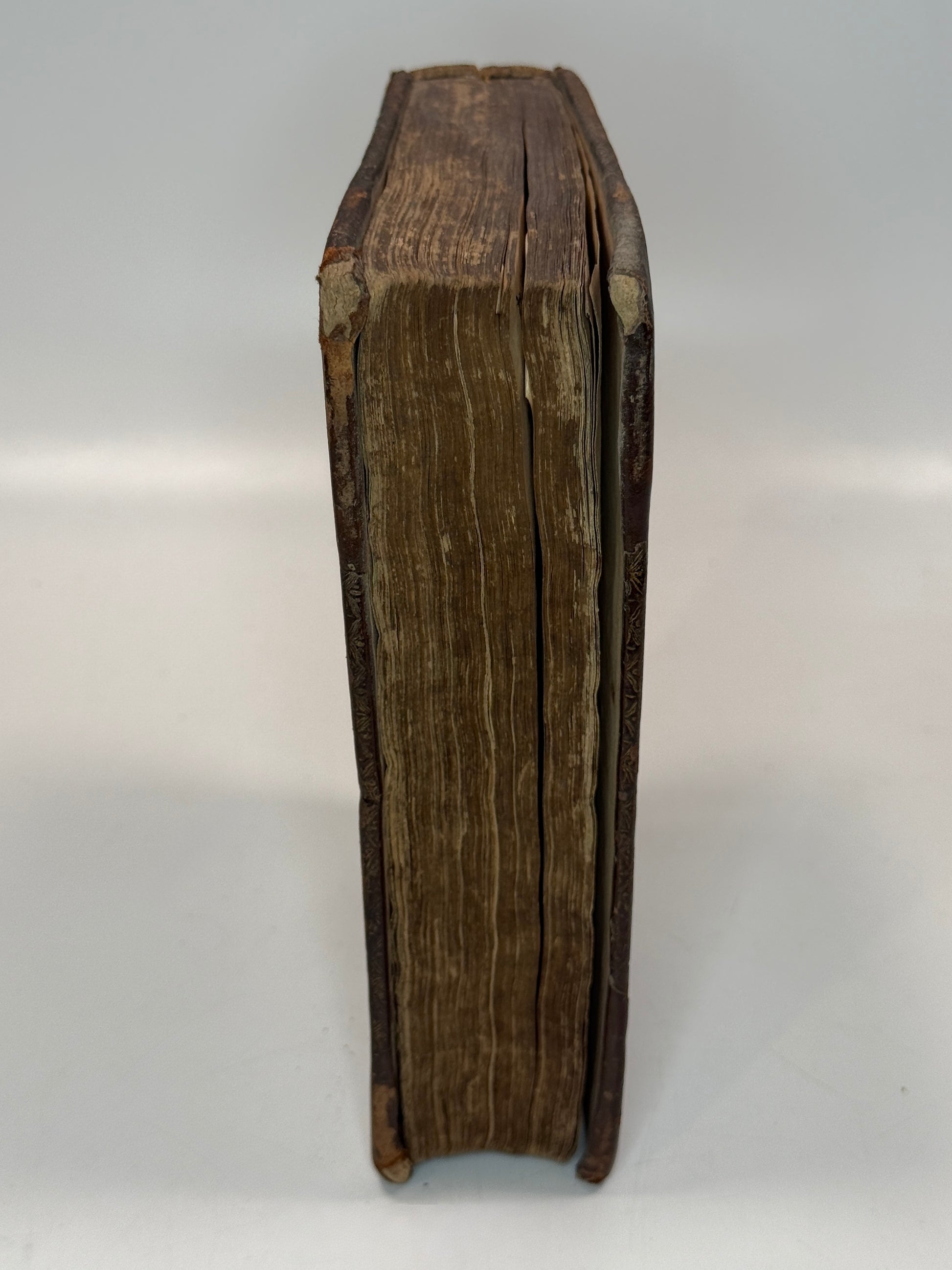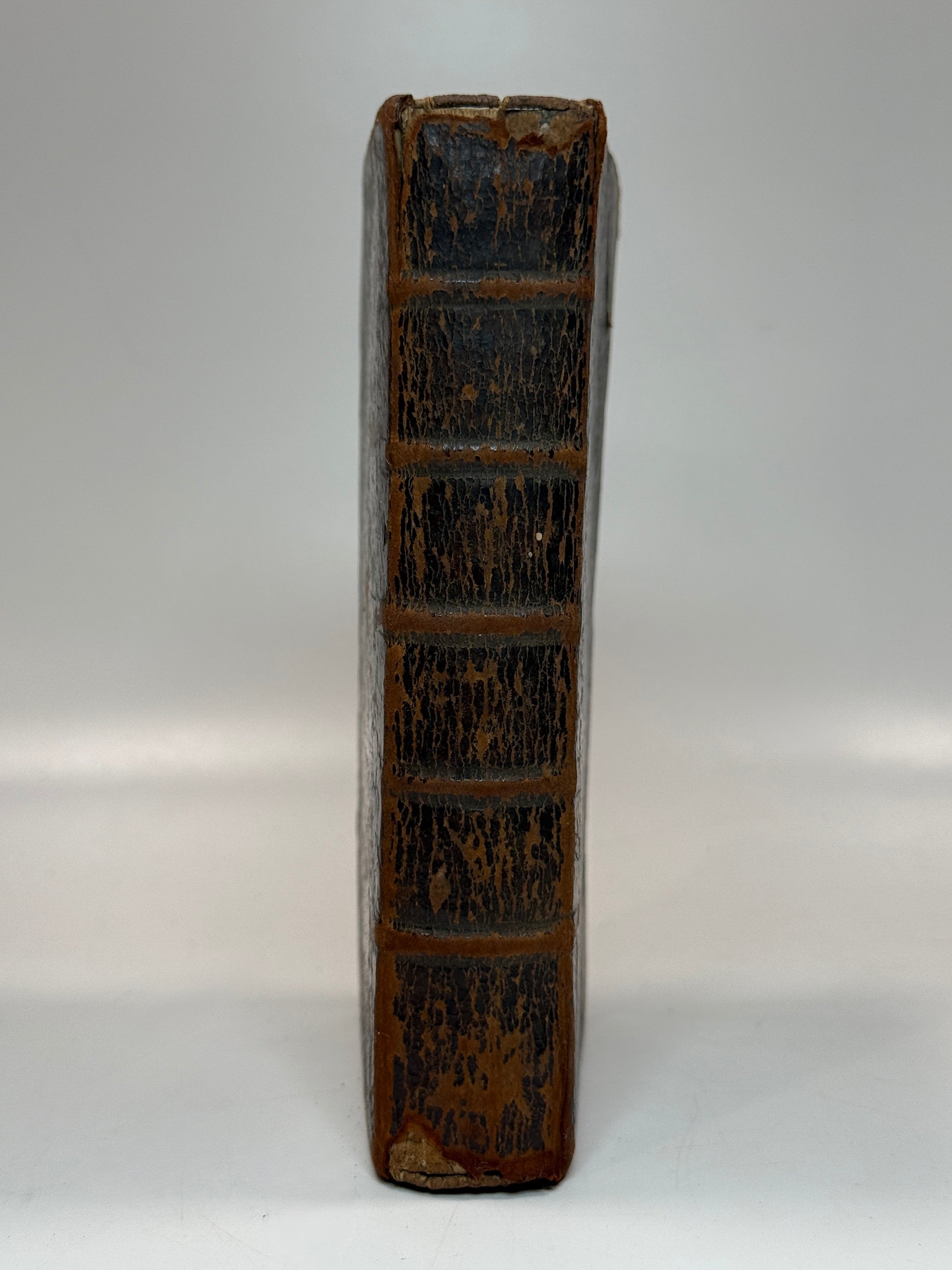 Full brown calf binding, rubbed and scuffed, with corner repairs. Both boards attached with minor wear to joints and hinges. Shelf and edge wear. Page edges toned. Binding slightly warped. Very minor loss to the backstrip to the head and bottom. Bookplate attached to front pastedown. Ink inscription to front blank. Text block fairly clean with light toning, sporadic foxing, and damp-staining, mostly very minor, not affecting legibility. A very good copy.