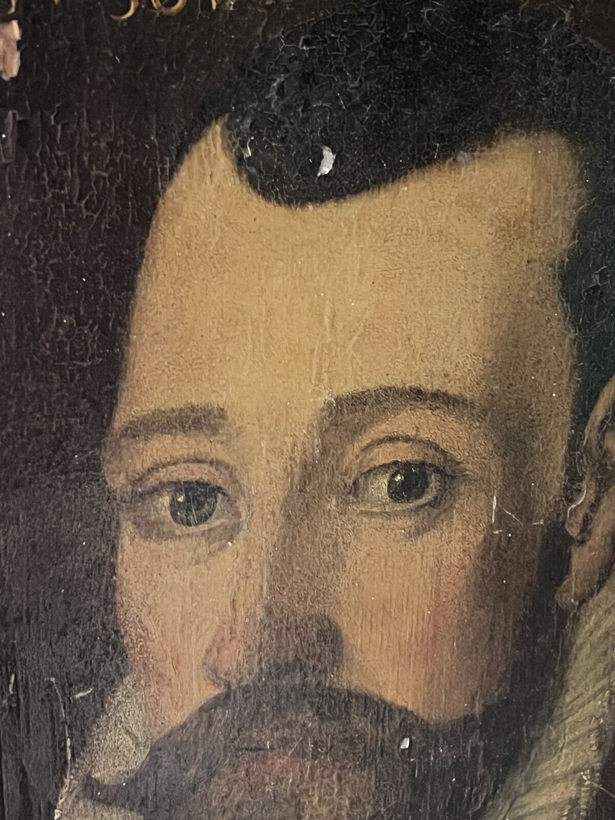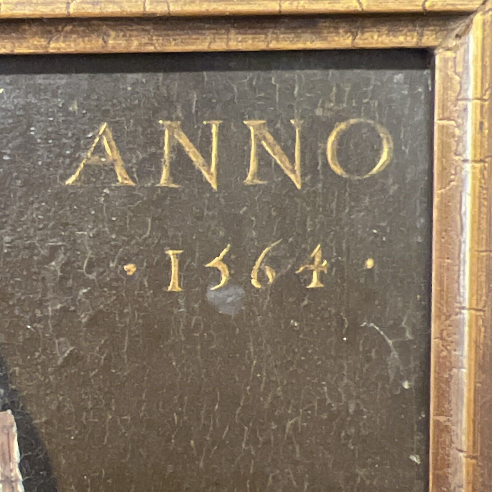 It is fantastic to have a painting contemporaneously dated. Given the excellent manner of production, one imagines the artist is from the circle of the royal portrait artists of the time, perhaps being one of them. Unfortunately the identification of both the artist and sitter of Tudor paintings is an extremely challenging task, with even traditionally well attributed paintings often challenged in their attributions. It is for this reason we here describe this painting as 'Continental School', circa 1564, almost certainly of an English sitter. There are striking resemblances between the sitter and the known portrait of Sir Francis Walsingham which is of him in his later years. His birth year is put as circa 1532, and so the chronology is roughly consistent with that as given by this painting.