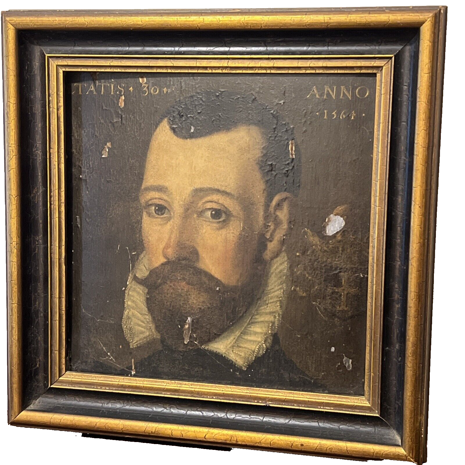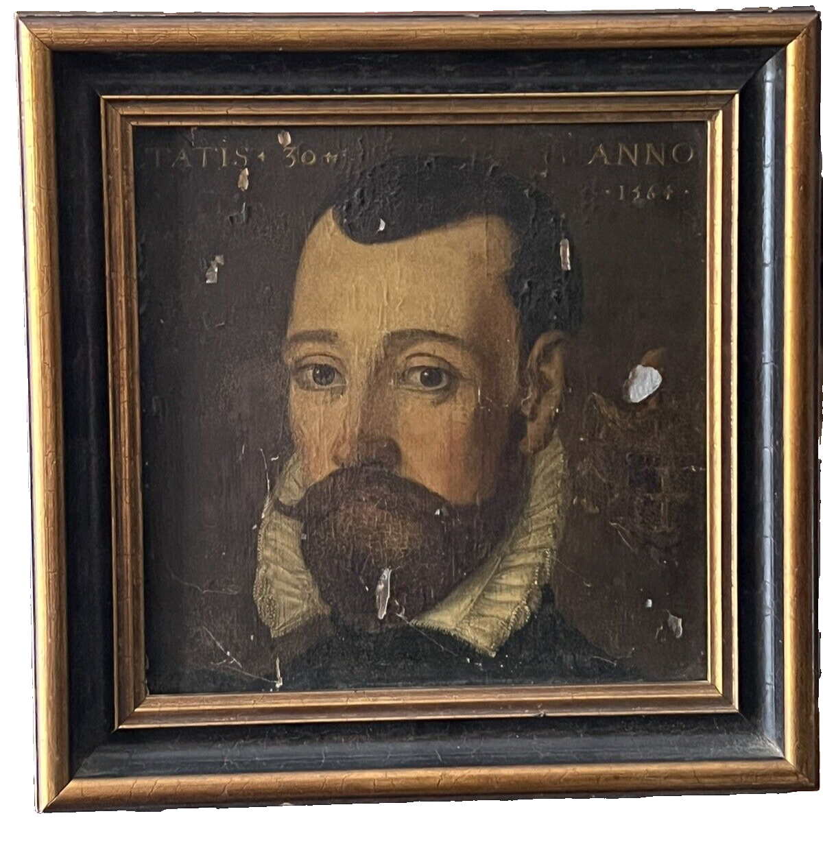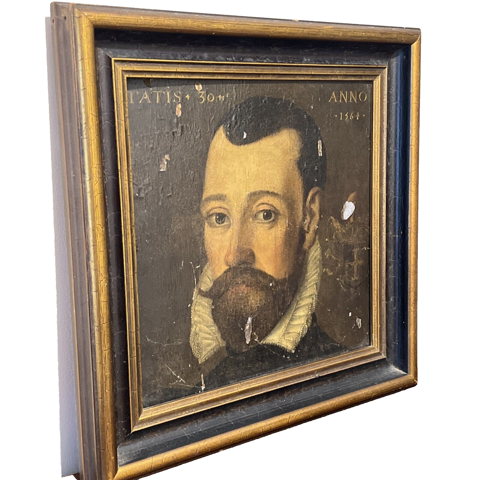 A beautifully executed portrait of an unknown sitter, but perhaps depicting Sir Francis Walsingham, dated 1564, the year of birth of William Shakespeare. The painting with 'etatis 30' written at the top left, i.e. at the age of 30, so the sitter was born in (or circa) 1534 during the reign of King Henry VIII, the year of the first Act of Supremacy declaring Henry VIII as the leader of the Church of England, here the sitter is depicted during the first few years of Elizabeth I's reign.