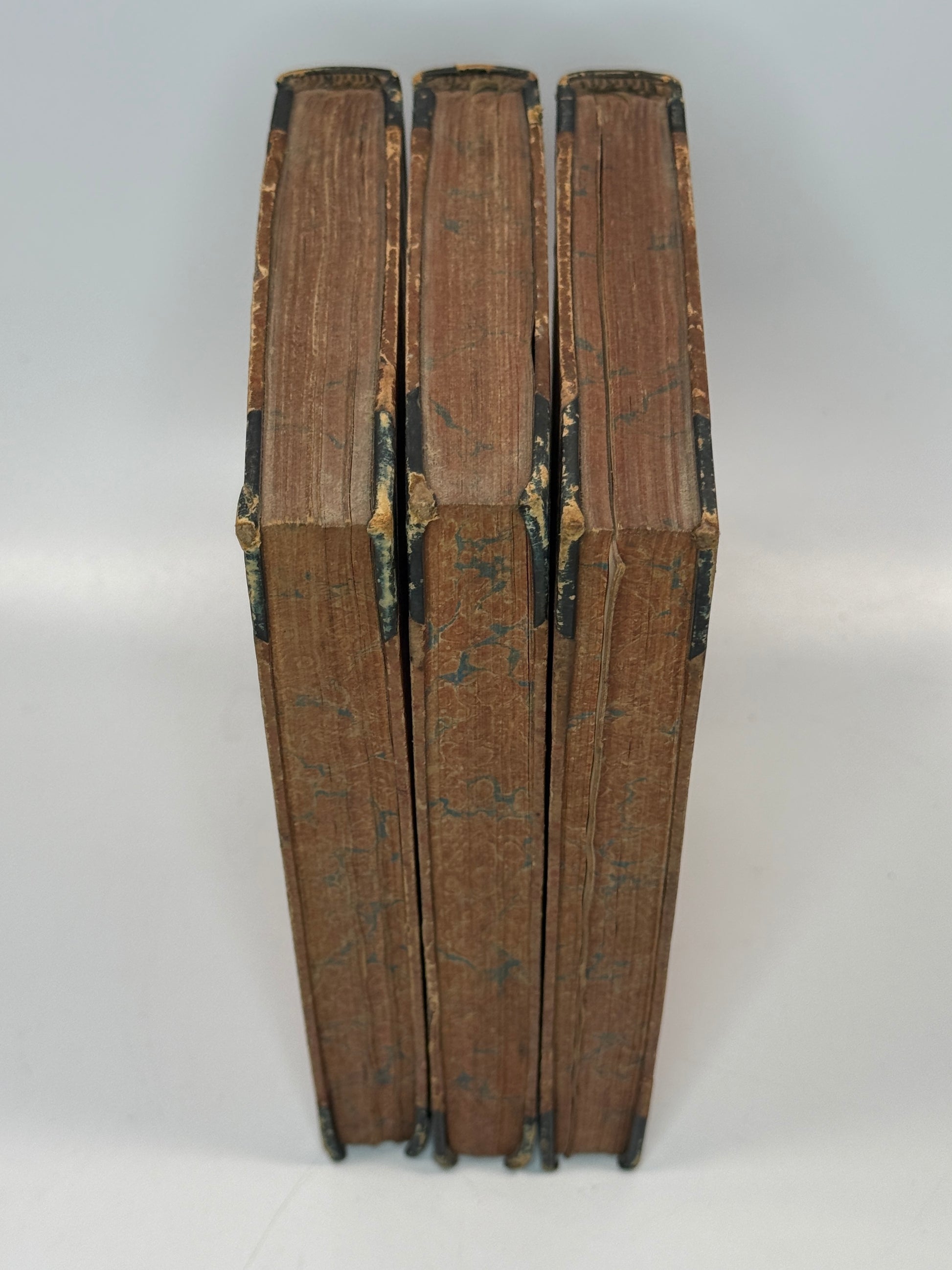 Contemporary quarter navy morocco over marbled paper backed boards with gilt titles and volume numbers to spines. Bindings with very minor signs of wear, some minor toning, very minor and faint marks, and few very minor scratches. All boards attached with wear to joints and hinges, some starting. Shelf and edge wear. Marbled page edges somewhat dulled with the top edges darkened. Bookplate attached to front pastedowns and binder's sticker attached to front blanks. Text blocks very clean with light toning and occasional foxing. pp.79-90 in volume three partially detached. Uncollated.