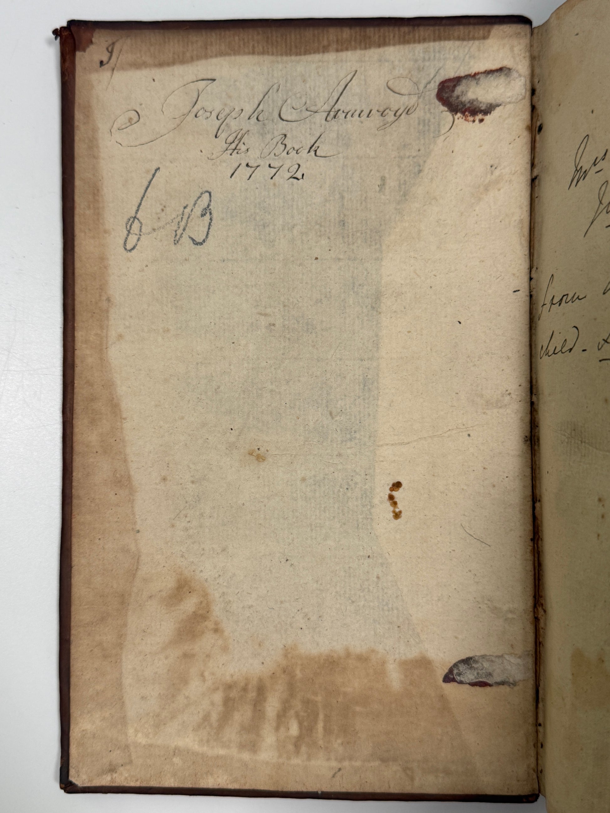 Ink ownership inscription dated 1772 of Joseph Annoyd (?).
