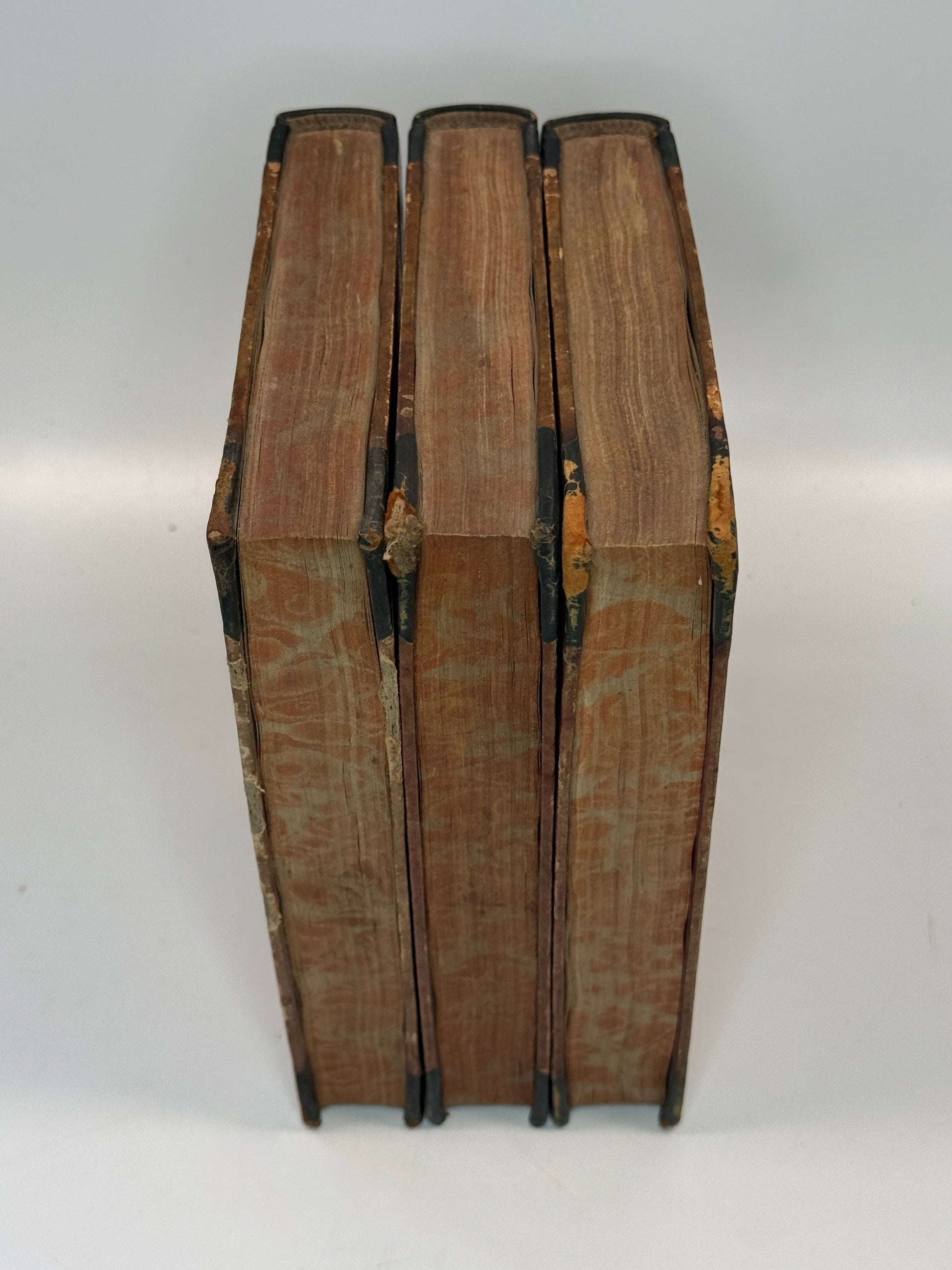 Contemporary quarter navy morocco over marbled paper backed boards with gilt titles and volume numbers to spines. Bindings with some minor toning, minor and faint marks, rubbing. and some scratches. All boards attached with wear to joints and hinges, some hinges starting. Shelf and edge wear. Marbled page edges somewhat dulled with the top edges darkened. Bookplate attached to front pastedowns. Binder's sticker attached above the bookplate in volume three. Text blocks very clean with light toning and occasional foxing. Ink ownership inscription to half titles. Uncollated.