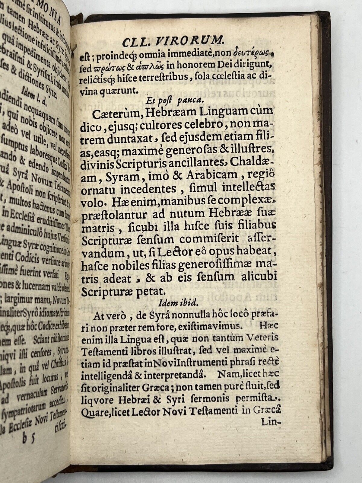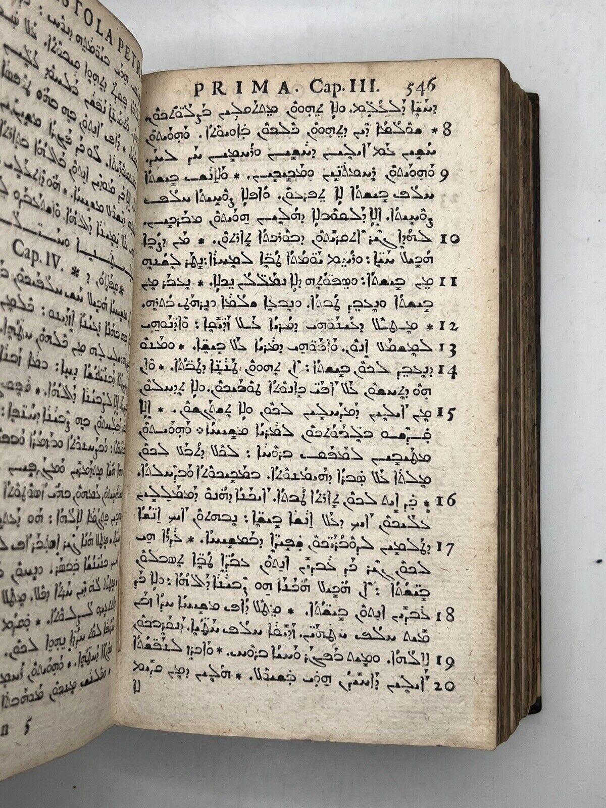 A fantastic volume containing three works bound together, here forming the most important reference work for Syriac New Testament studies in the period between 1663 and Samuel Lee's 1823 edition. This edition was the standard Syriac text until that printing, and a whole page is dedicated to this edition in Darlow & Moule's bibliography (no. 8965).