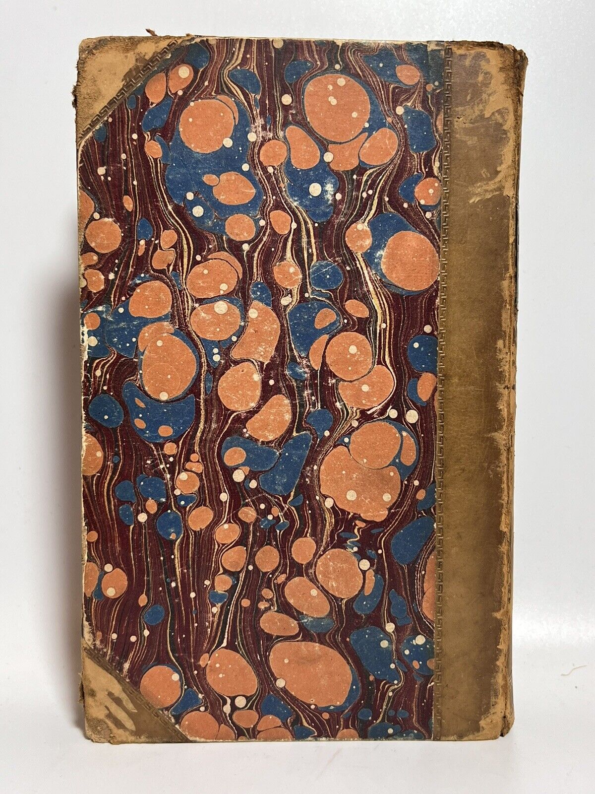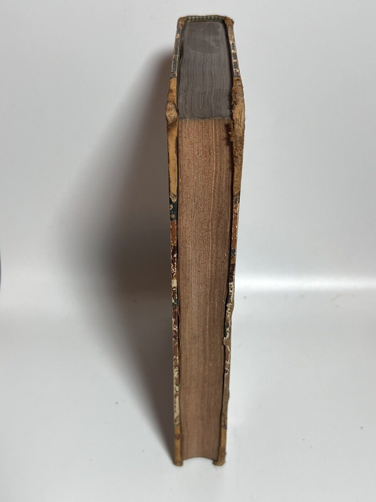 Spine rubbed. Tooled label present with minor scuffing and small fragment of tooled label lacking. Both boards attached with wear to joints and hinges, some starting. Boards rubbed and lightly scuffed. Some of the leather on boards peeling lightly. Shelf and edge wear. Dulling to page edges. Bookplate attached to front pastedown. Pencil inscriptions and spots of discolouration (Caused by tape?) on pastedown and endpapers facing pastedown. Title page foxed. Text block fairy clean with light toning and minor foxing.