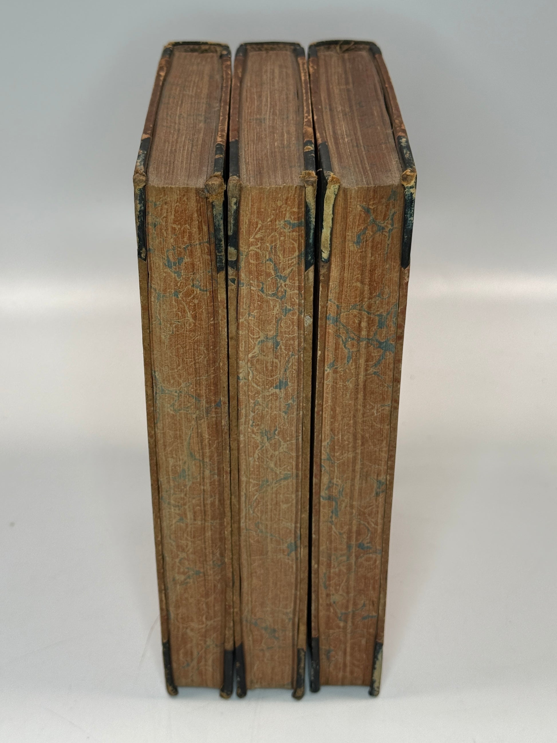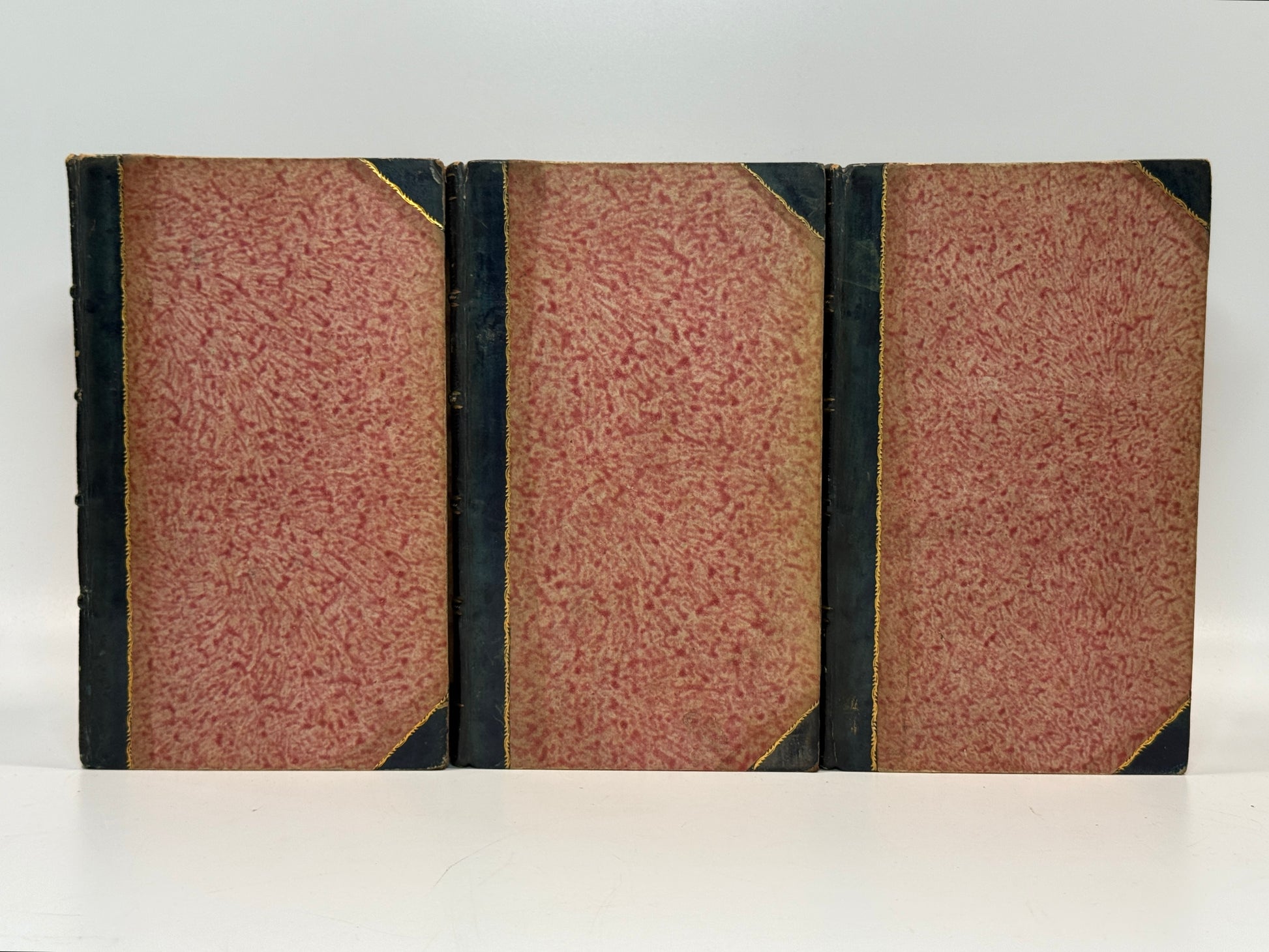 Contemporary quarter navy morocco over marbled paper backed boards with gilt titles and volume numbers to spines. Bindings with very minor signs of wear, some minor toning, very minor and faint marks, and few very minor scratches. All boards attached with wear to joints and hinges, some hinges slightly starting. Shelf and edge wear. Marbled page edges somewhat dulled with the top edges darkened. Bookplate attached to front pastedowns and binder's sticker attached to front blanks. Text blocks very clean with light toning and occasional foxing. Small number of leaves are more toned. Uncollated.