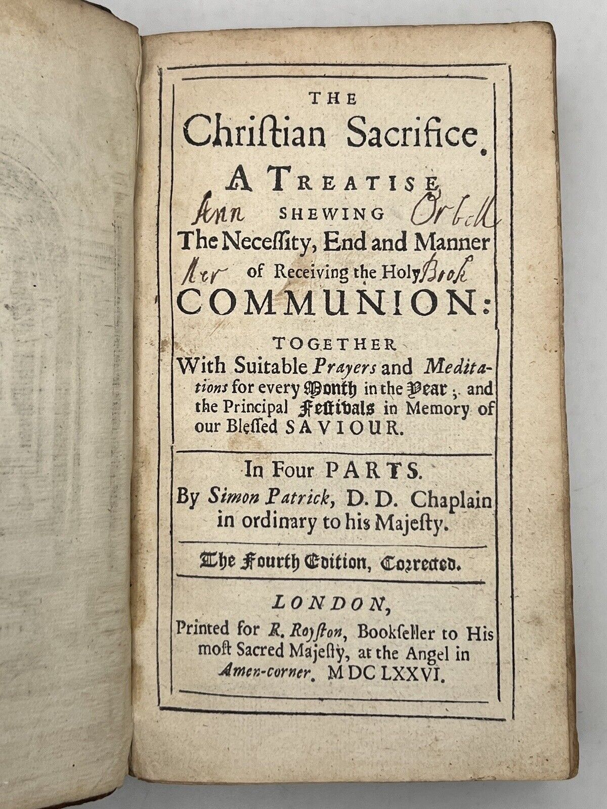 The Christian Sacrifice by Simon Patrick 1676