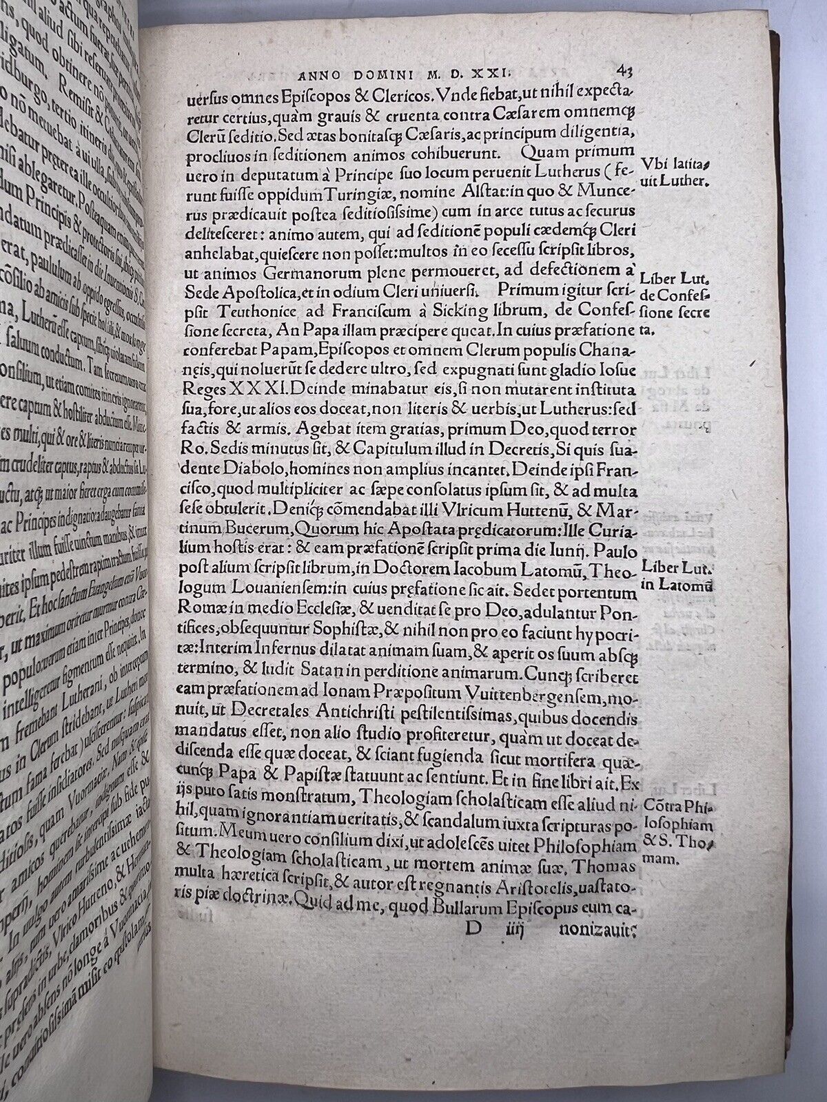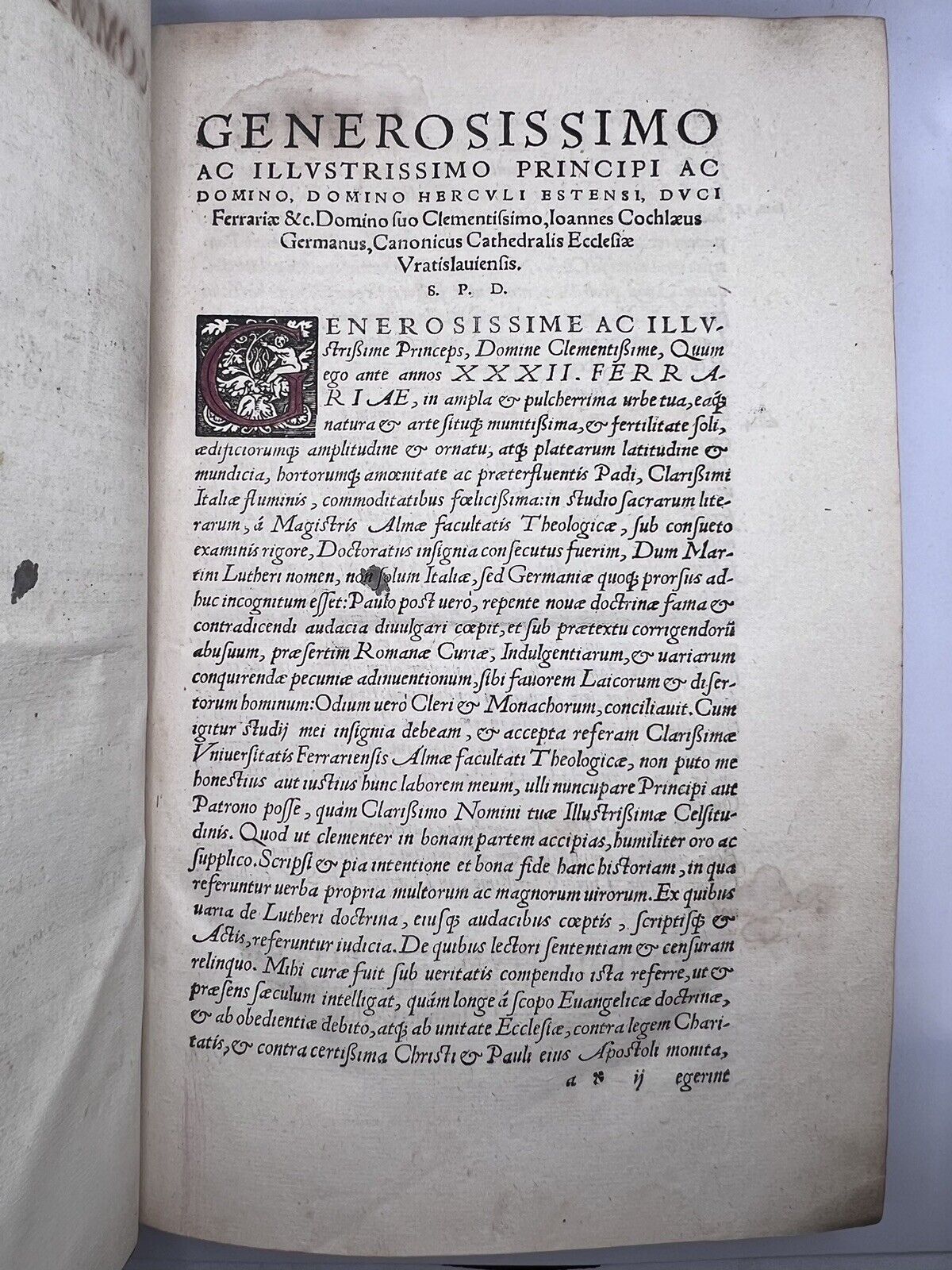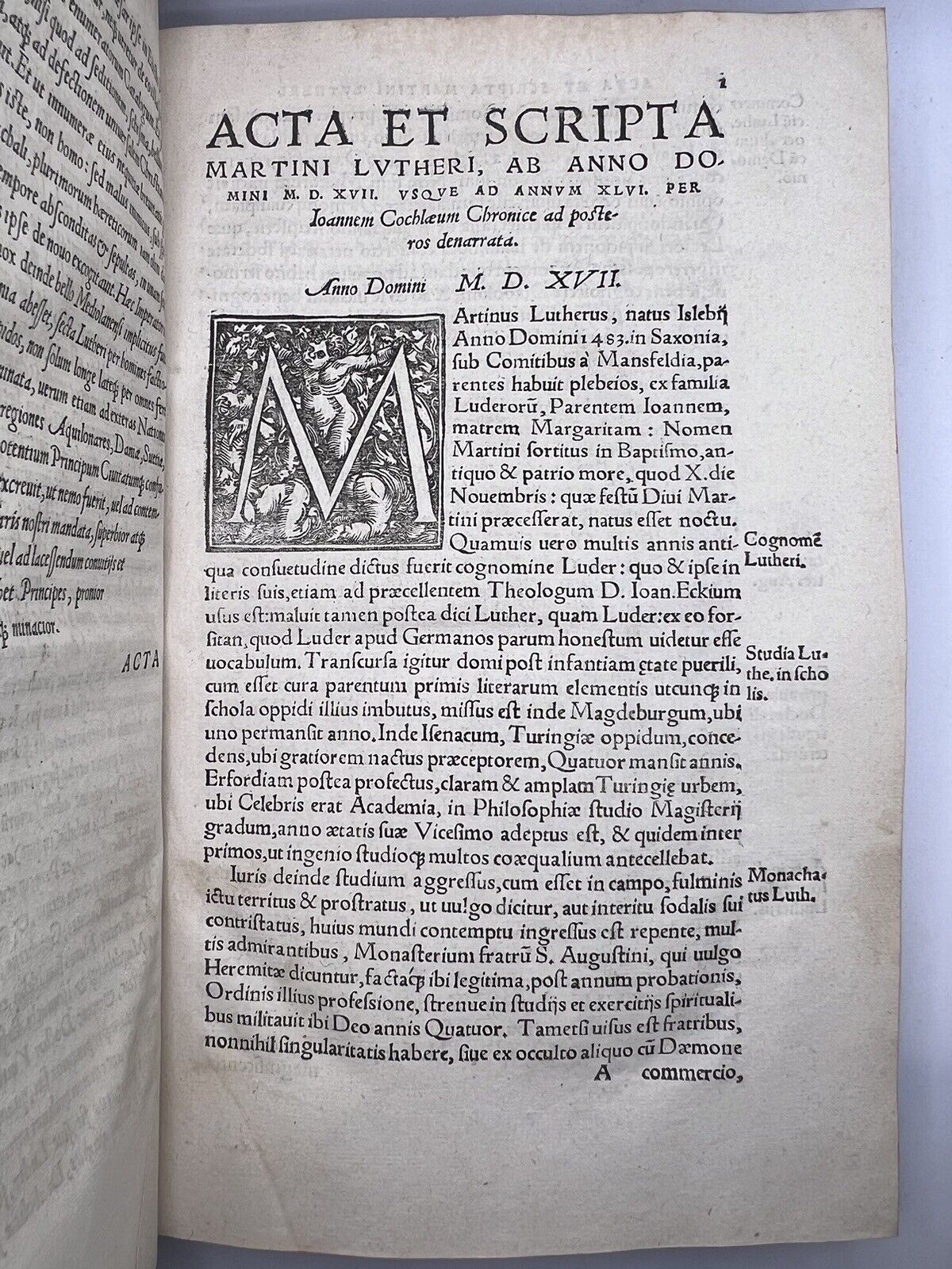 THE RARE FIRST EDITION OF THIS IMPORTANT ANTI-REFORMATION, PRO-CATHOLIC WORK CHRONICLING THE ACTS AND WRITINGS OF MARTIN LUTHER. A REMARKABLE COPY WITH EXCEPTIONAL PROVENANCE.