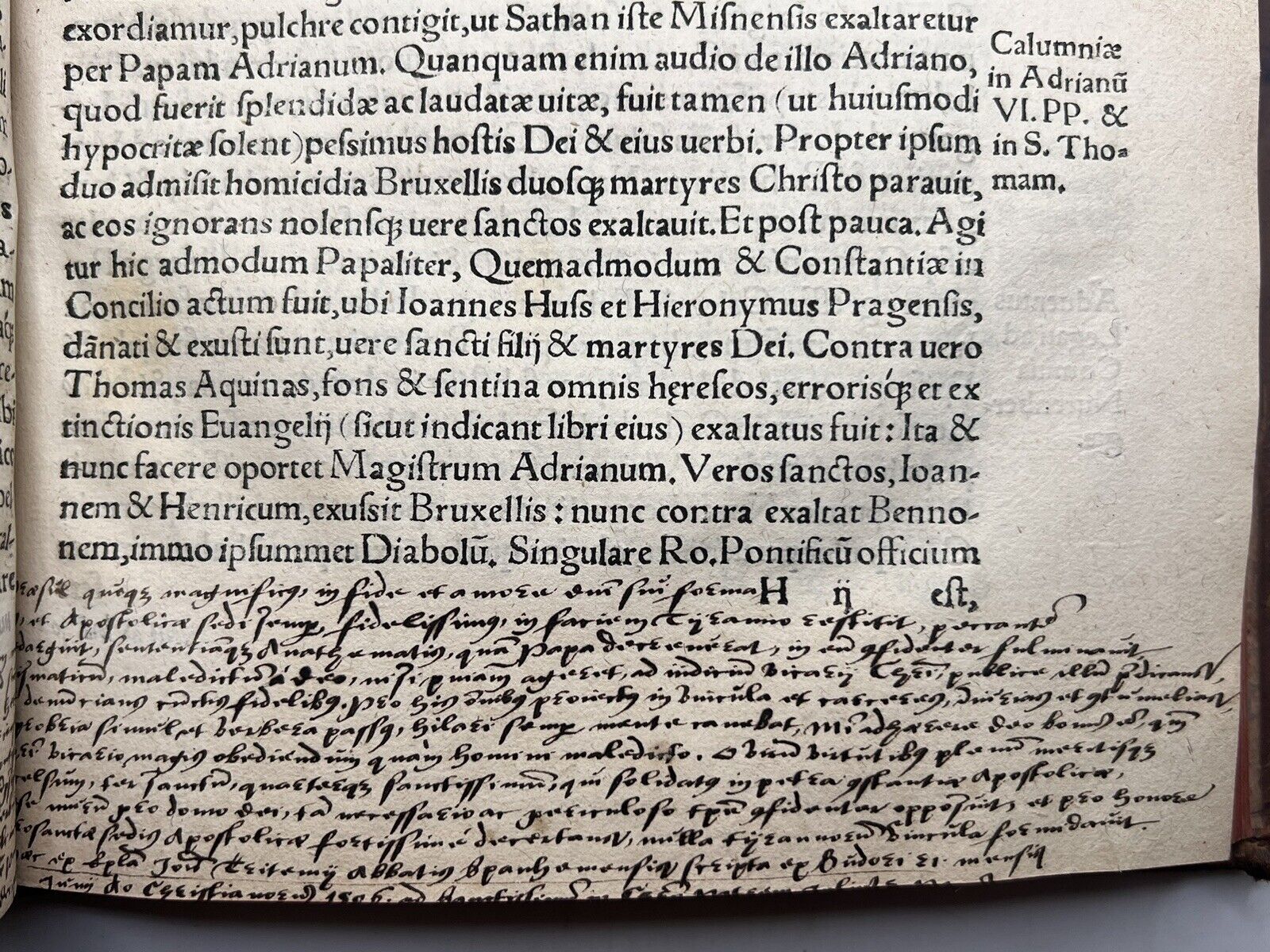 Circa early 18th century full calf binding, the spine decoratively tooled in gilt with floral motifs, an early manuscript date label pasted to the foot, with a modern tooled title label. Binding rubbed but remains very attractive. Both boards are securely attached, the binding is secure with joints and hinges uncracked. Bookplate attached to front pastedown with several ownership inscriptions in various places throughout, but generally to the title page and final leaf. Sporadic contemporary marginalia throughout, including a fine manicule in the section on Tyndale. Textually collates as complete though with the original blanks now replaced with sympathetically added early 18th-century blanks commensurate with the binding. Generally very clean throughout the text, a few minor stains but overall a crisp, well preserved copy of this important & rare first edition. VD16 remarks that this book is related to the Historia Hussitarum, but it's clear that these are in fact distinct works, just published simultaneously.