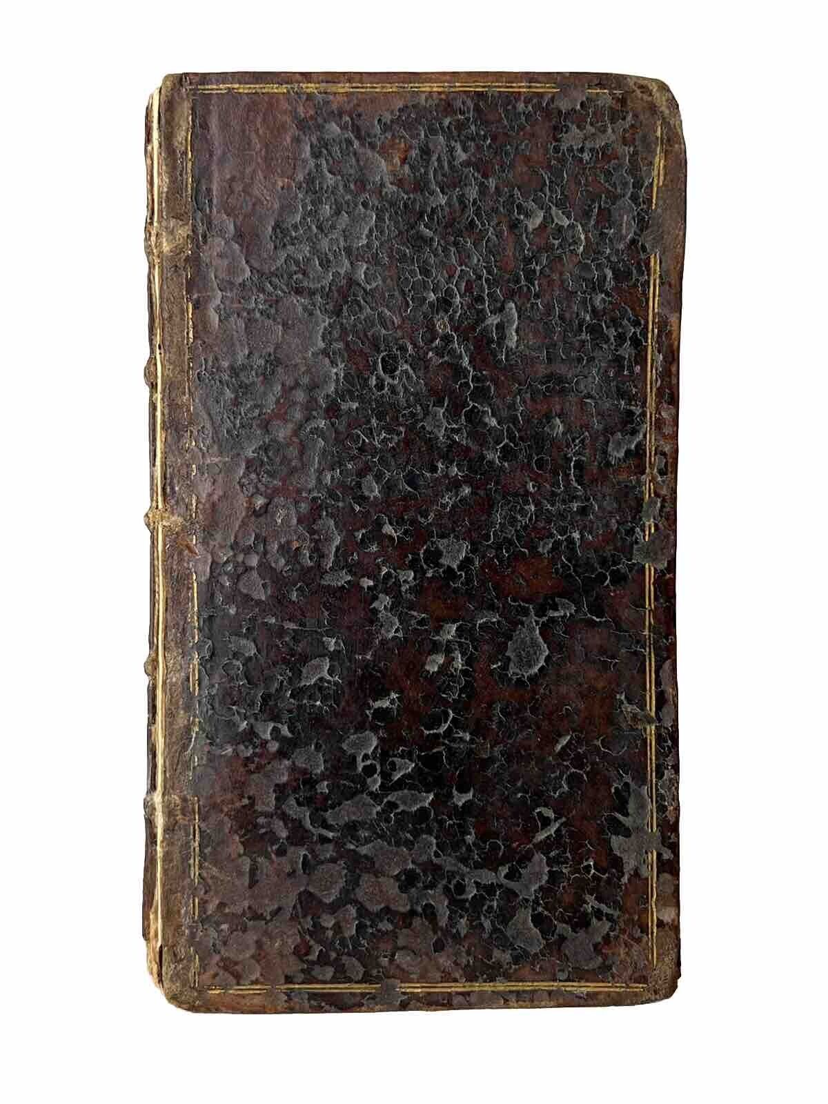 Collated as complete including the original blanks. Contemporary full calf binding, heavily rubbed with some losses to the leather in places, notably at the extremities of the backstrip. Joints rubbed and cracked but with both boards attached but a little fragile. Boards ruled in gilt with some loss. Lacks most of the original tooled label but some remains in fragmentary condition. No shelf lean. Page edges very good if a little discoloured as typical. Hinges internally reinforced preserving the original endpapers. Endpapers edge toned as commensurate with the binding. Without any attached bookplates, with an inverted ownership inscription to the rear pastedown reading 'Beaton'. Some dampstaining through the text block, toned throughout, but all text legible without loss of sense.