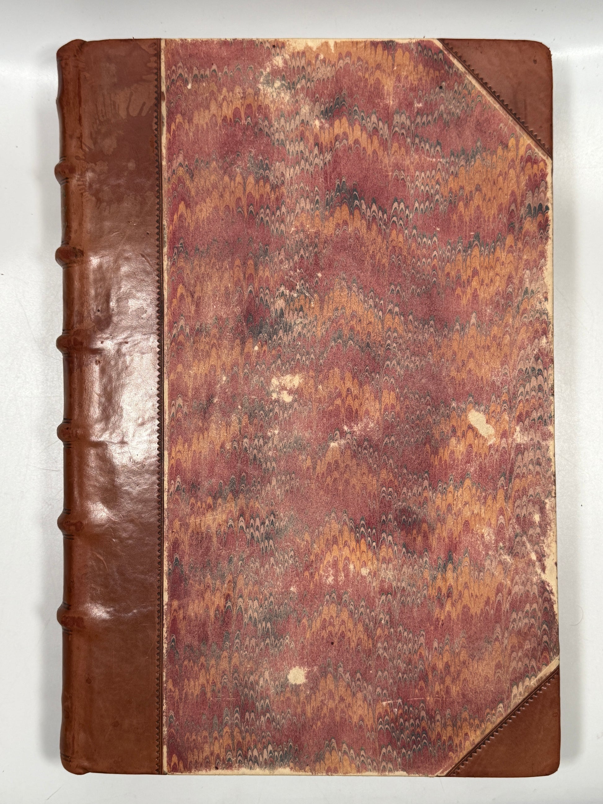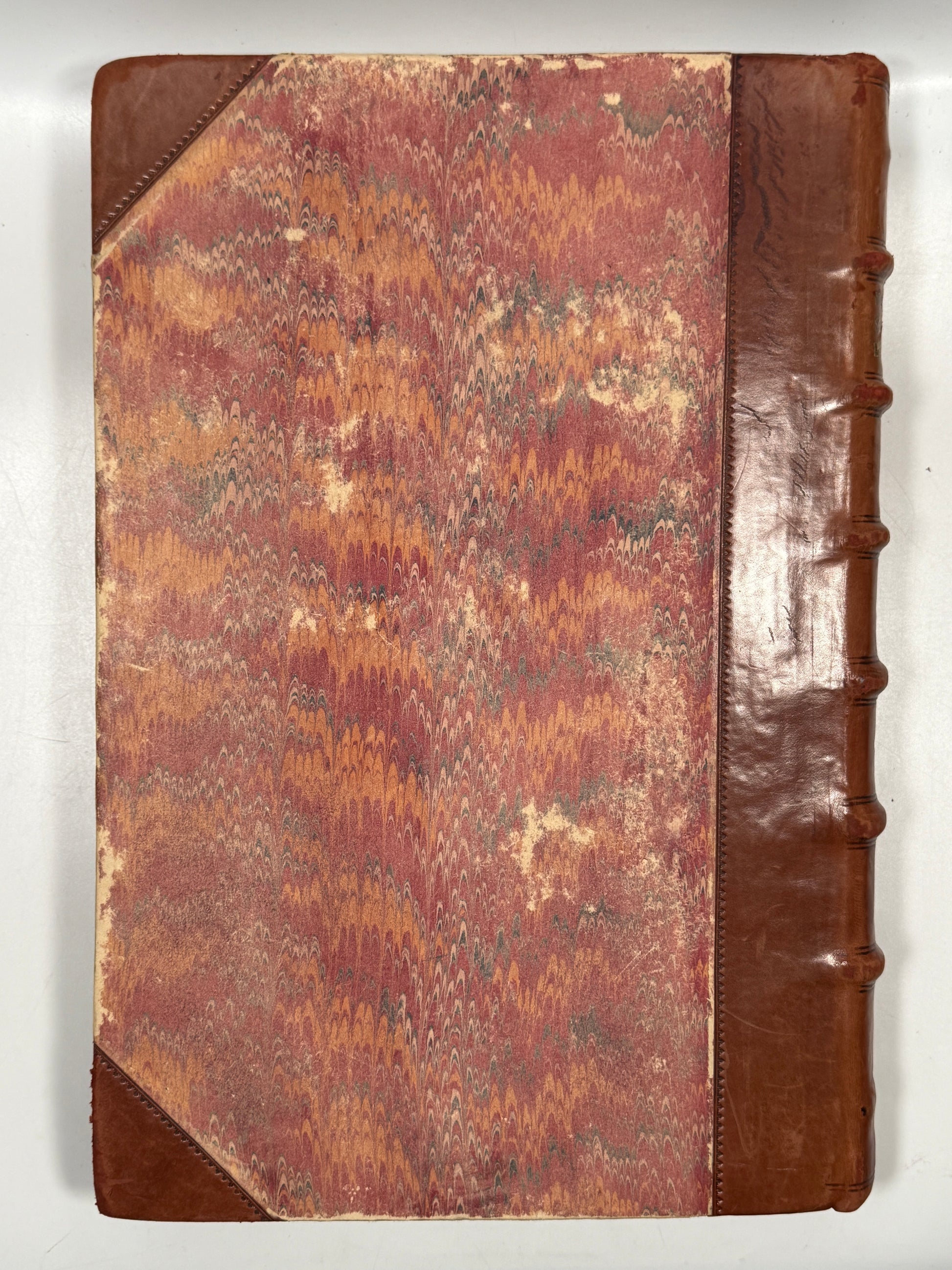 Half brown calf over marbled paper backed boards with a gilt title to the spine in a compartment between raised bands, other compartments with decorative gilt. Binding lightly rubbed and scuffed. Both boards attached. Shelf and edge wear. Prominent shelf lean. Red spotted page edges somewhat dulled. Inscribed "bookends" to front blank. Two blanks bound between pp.8 and the first plate. Some small repairs to plates. Some plates are bound in the wrong order / place. Text block lightly toned with some foxing. Small number of pencil marginalia to preliminary leaves.