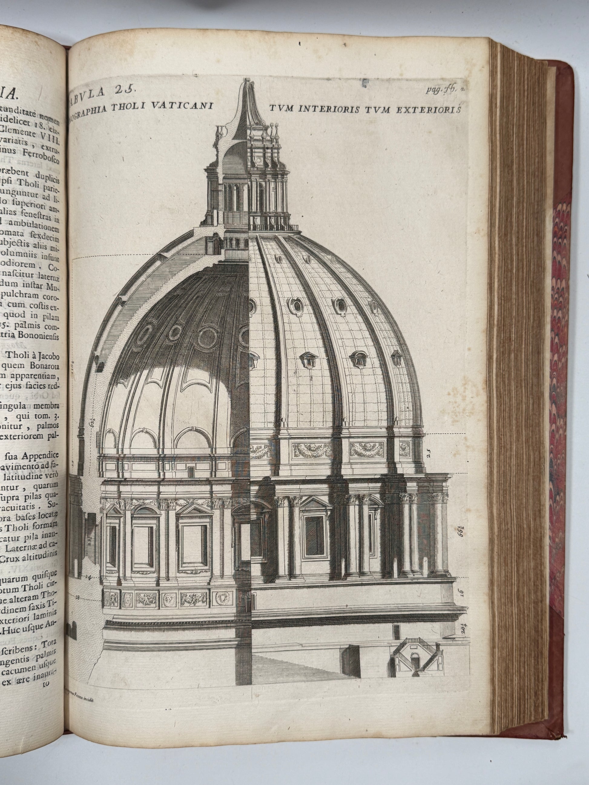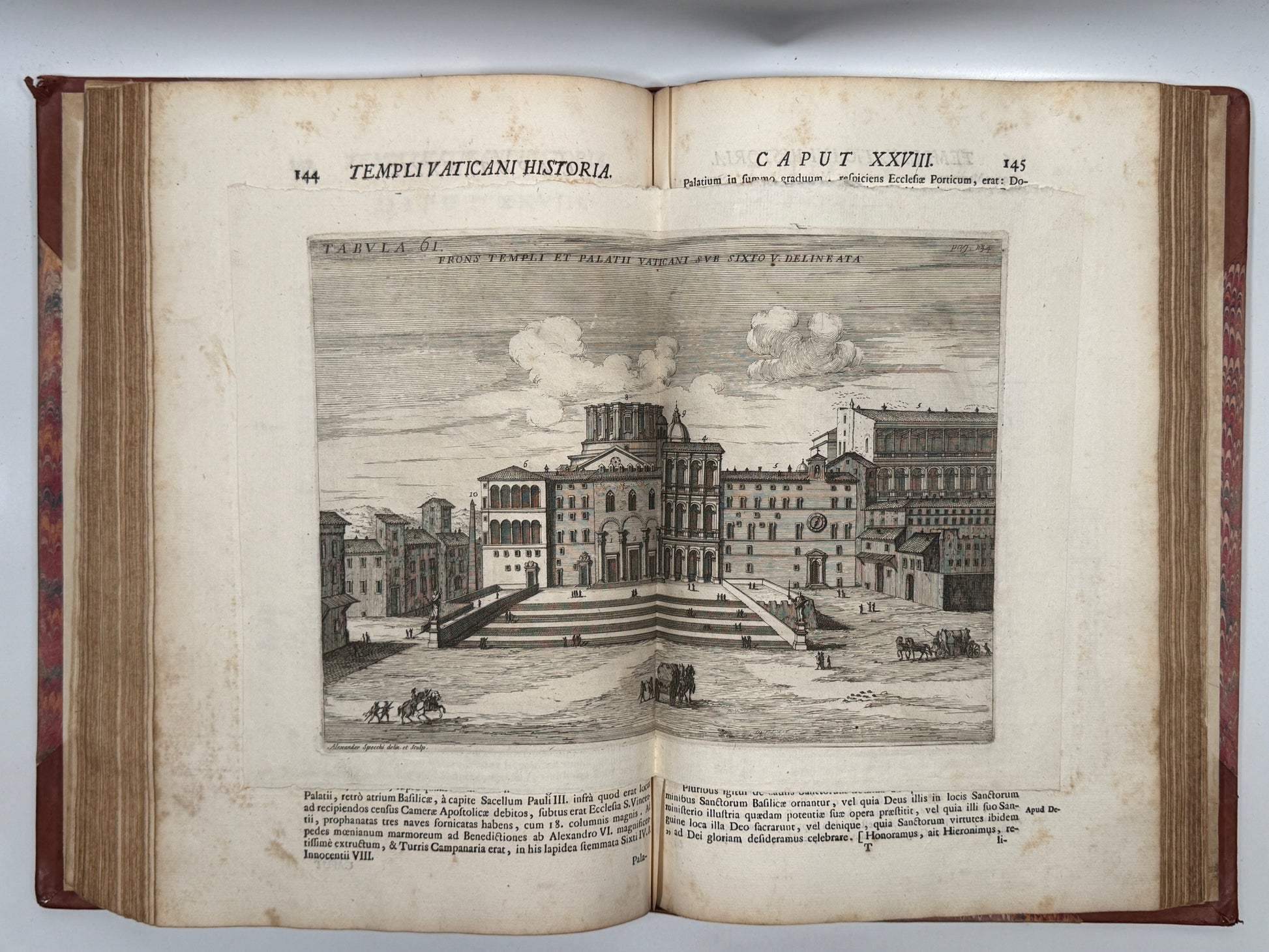 VERY RARE. This magnificently illustrated folio is the greatest edition of this important account of the construction of St. Peter's Basilica in Vatican City. It typically sells for £1,000 - £2,000 at auction (see Christie's 15 Dec 2005 lot 303; Ketterer Kunst Nov 21 2016 lot 824, etc).