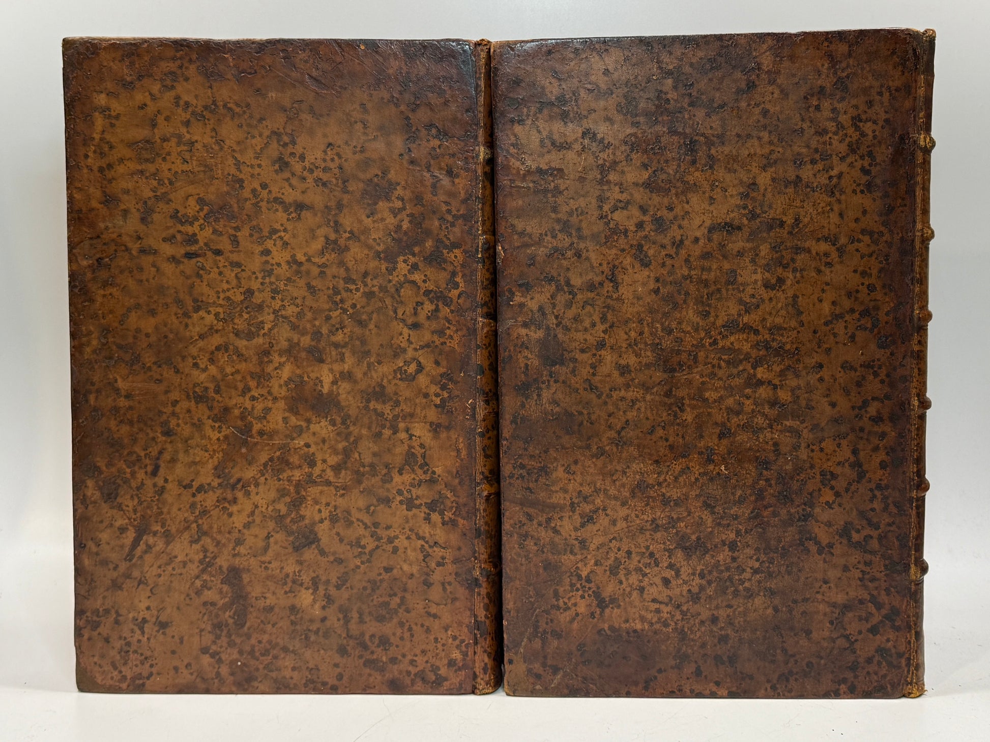 18th century full calf, attractively bound, all boards securely attached, titles in gilt to spines, finely rebacked, some shelf and edge wear, edges coloured red, but overall externally excellent and attractive. Both volumes stand without shelf lean.