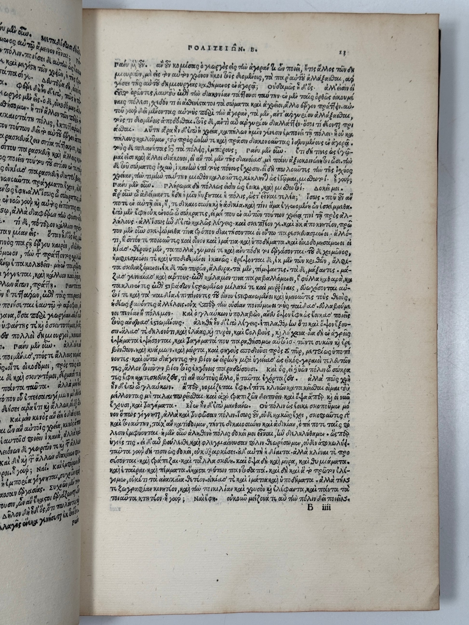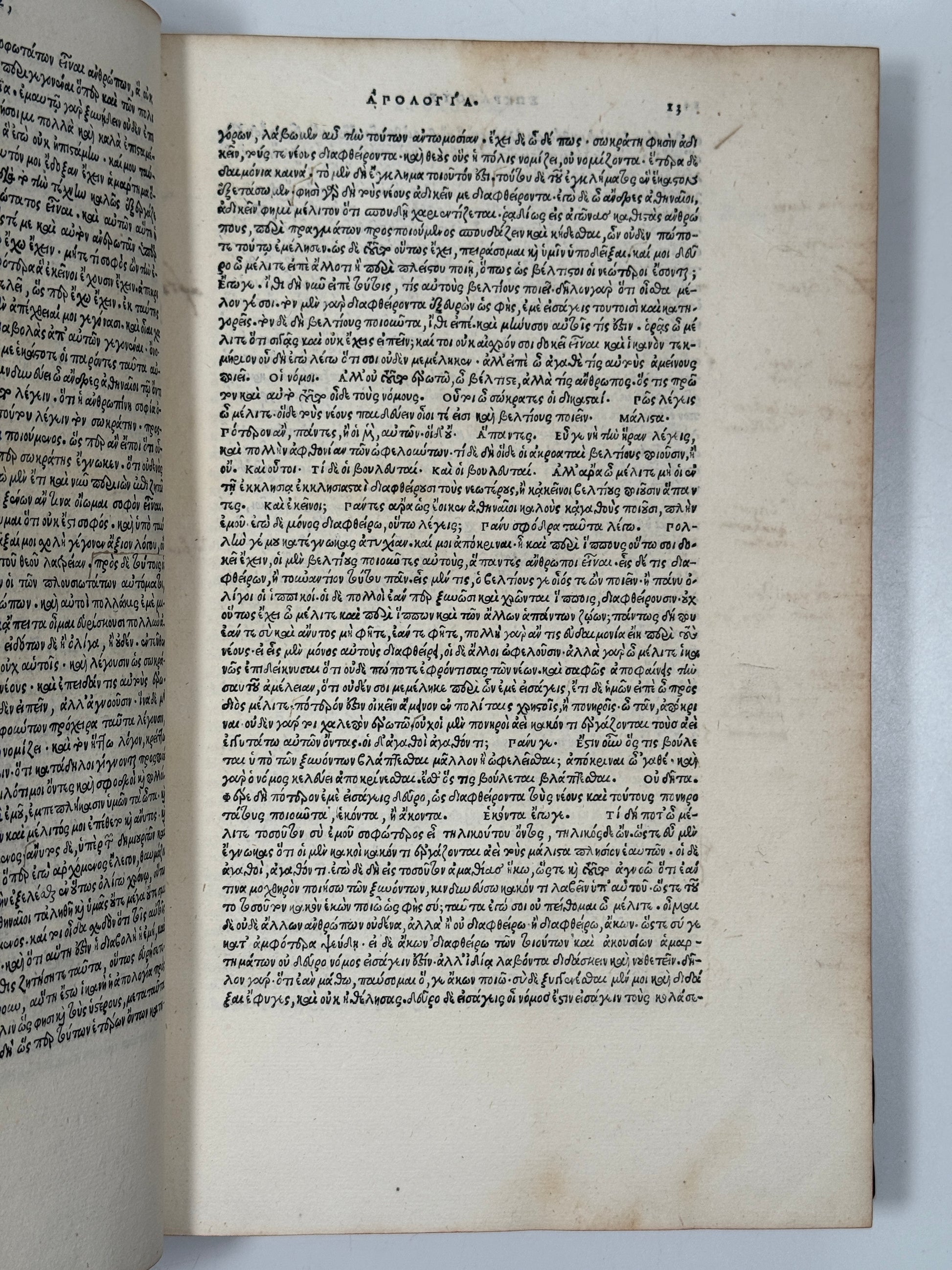One of the supreme monuments of Western printing and the culmination of Aldus Manutius’ epoch making Greek publishing programme. This is the edition that brought Plato into the heart of the Renaissance. Together with the Hypnerotomachia Poliphili (1499), the editio princeps of Aristotle (1495-98), and the Aldine Virgil (1501), this Plato of 1513 is one of the defining masterpieces of the Aldine Press. If the Aristotle marked the beginning of Greek philosophy in print, the Plato represents its apotheosis, the consummation of Aldus’ lifelong devotion to the recovery, perfection, and dissemination of Greek learning. Indeed, when the University of Illinois acquired a copy in 2024, they remarked that "classical studies exist because of this [edition]", and their acquisition of it sparked an event at the National Hellenic Museum in Chicago which drew over 400 people, including the consul general of Greece.