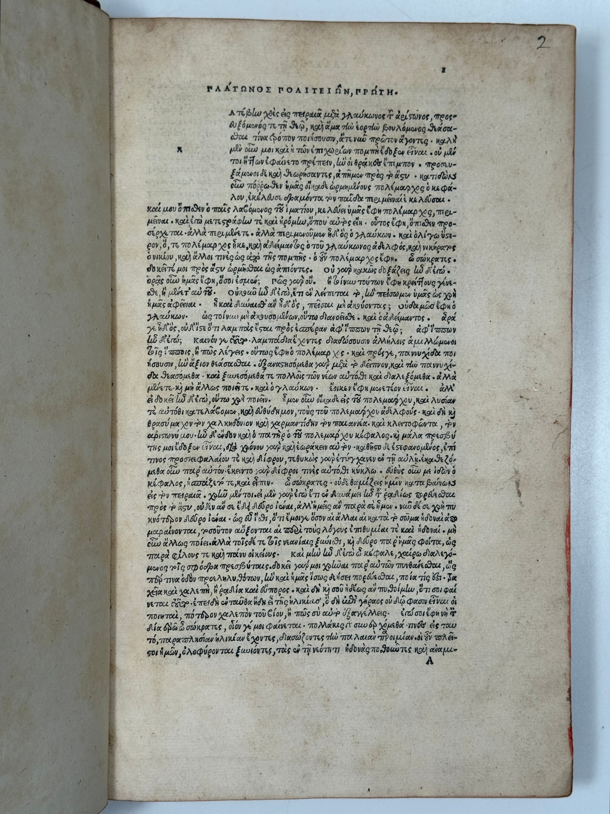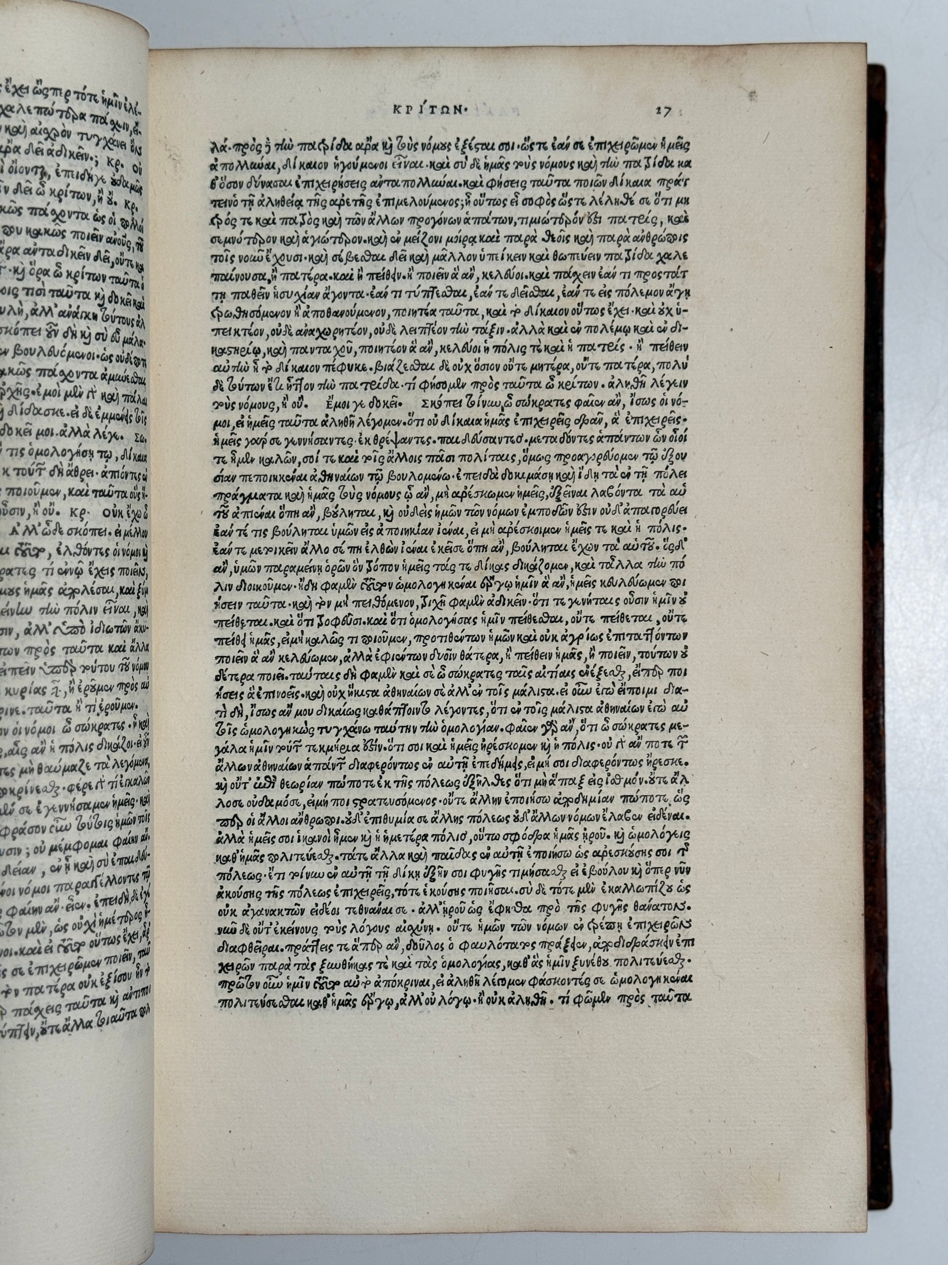 Overall, a very nice attractive copy of this important and rare first edition of Plato in the original Greek.