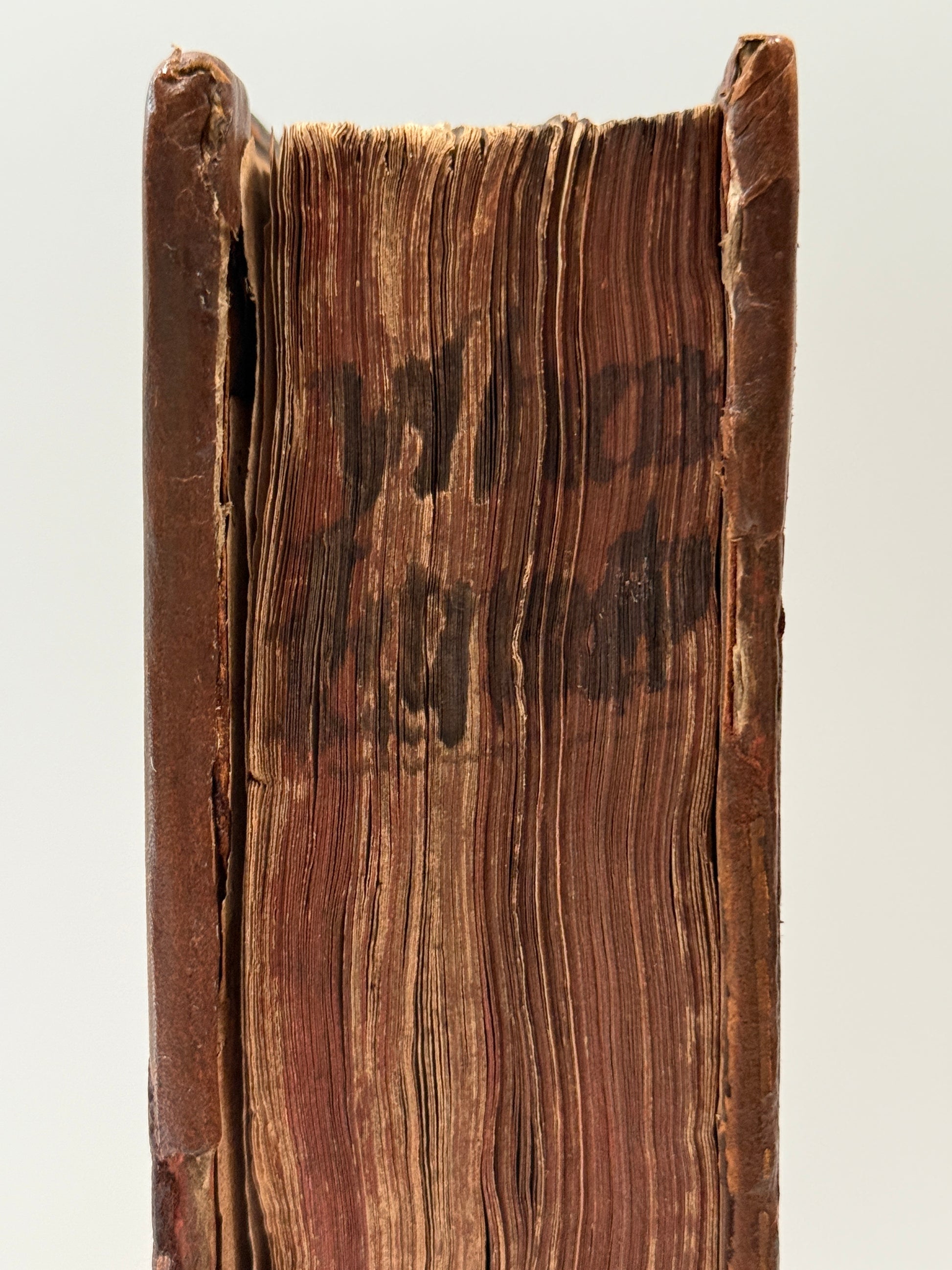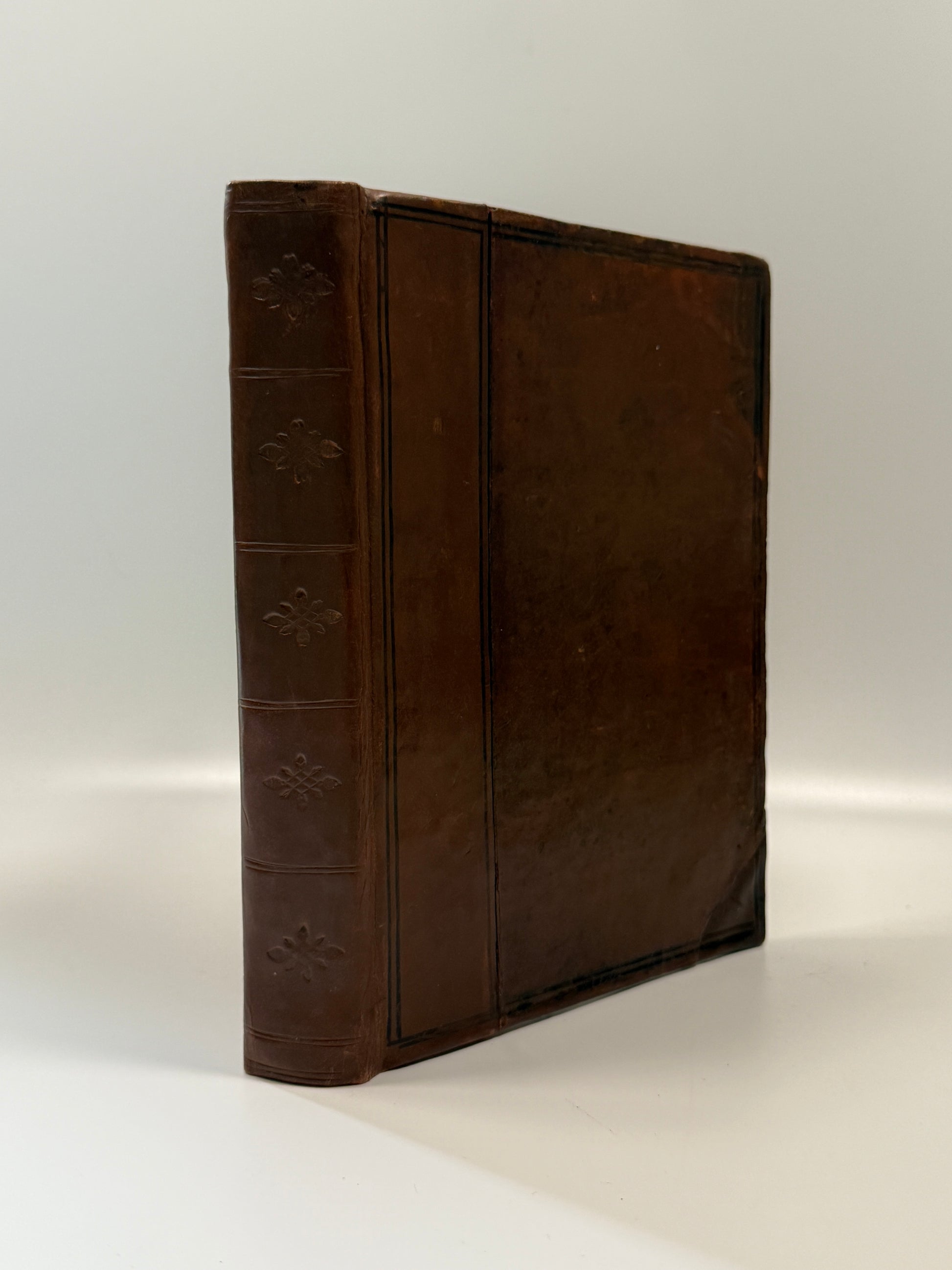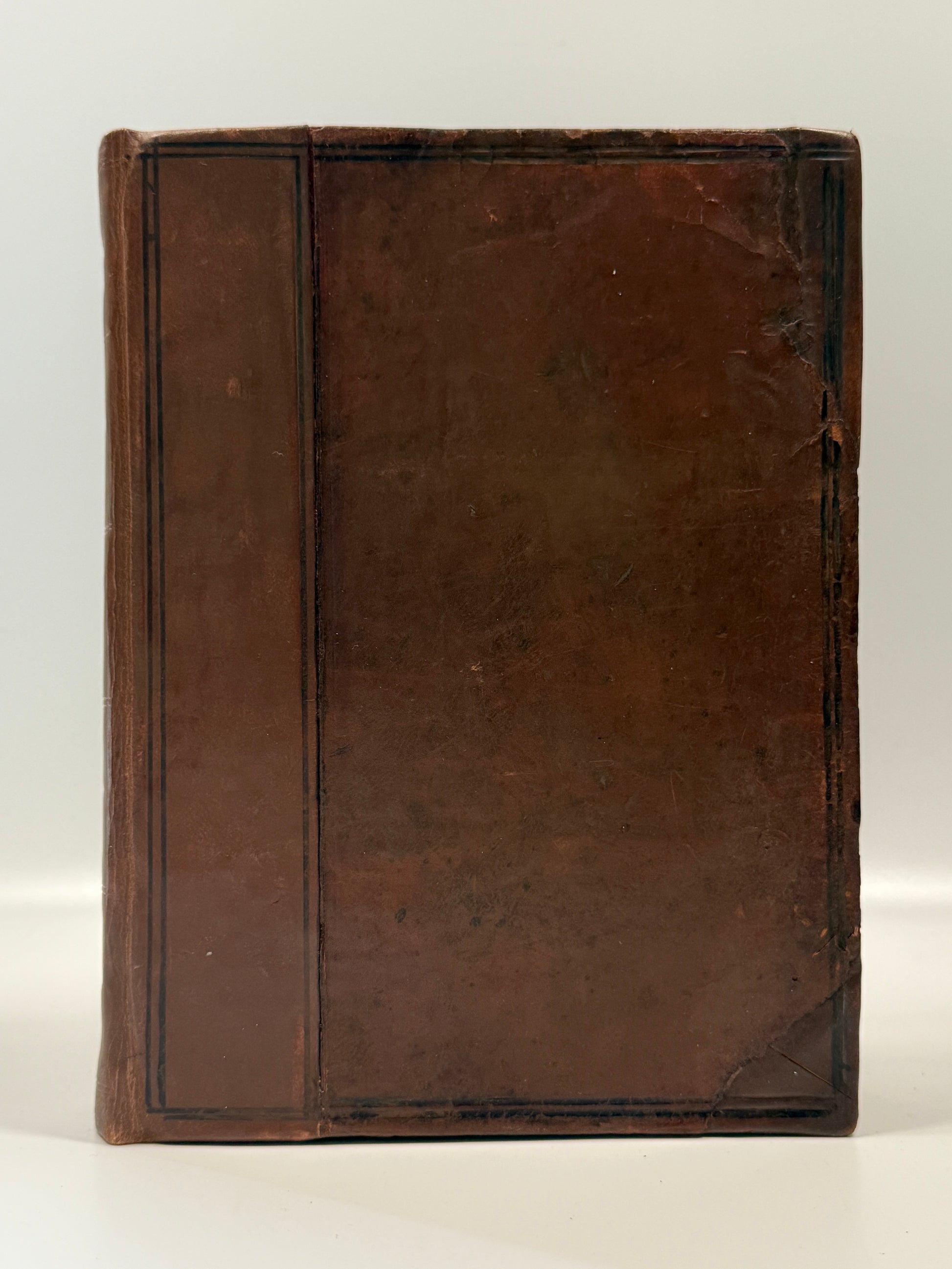 Full brown calf, binding rubbed and scuffed with some tears to the leather of the boards, remaining attached. Both boards securely attached with minor wear to joints and hinges. Shelf and edge wear. Shelf lean. Page edges toned. Ink inscription to fore-edge. Edge toning to endpapers as commensurate with the full leather binding. Ink inscriptions to front pastedown and title pages. Text block very clean with light edge toning and occasional foxing and few marginalia. Pagination slightly varies from the WorldCat copy which is as follows: [4], 53, [1], cxlvi, [2], 12, [2], [13]-243, [1] pages.