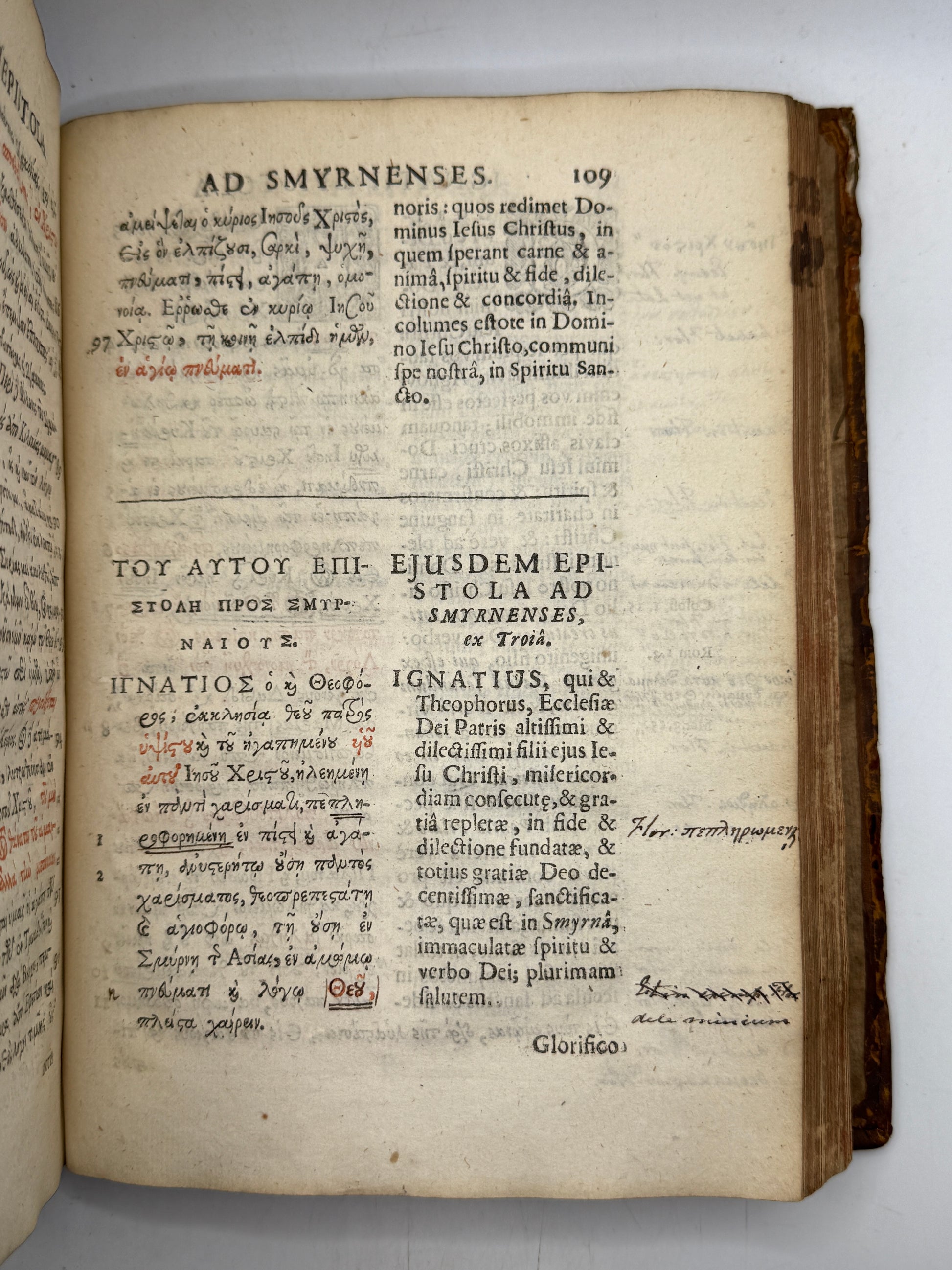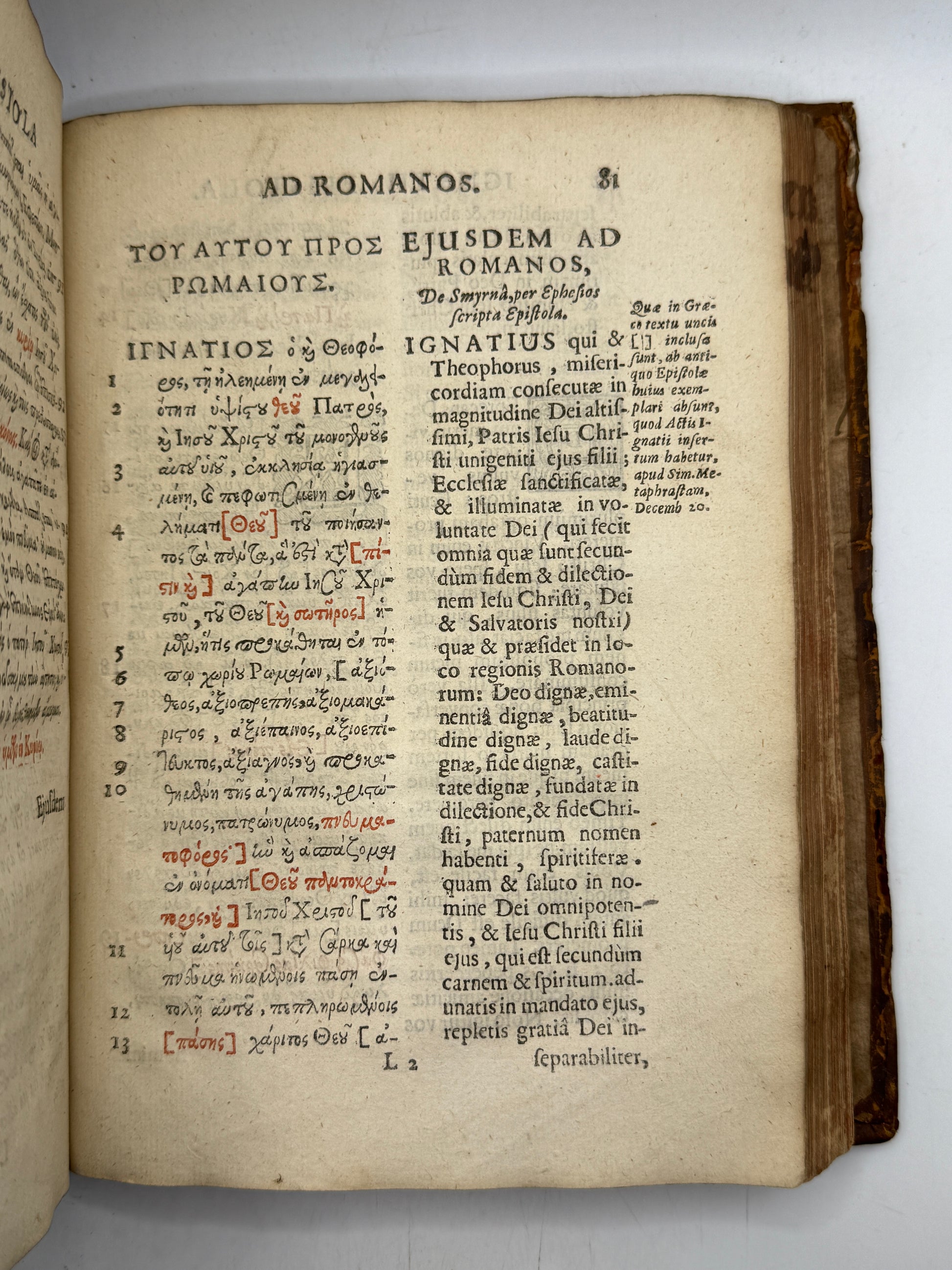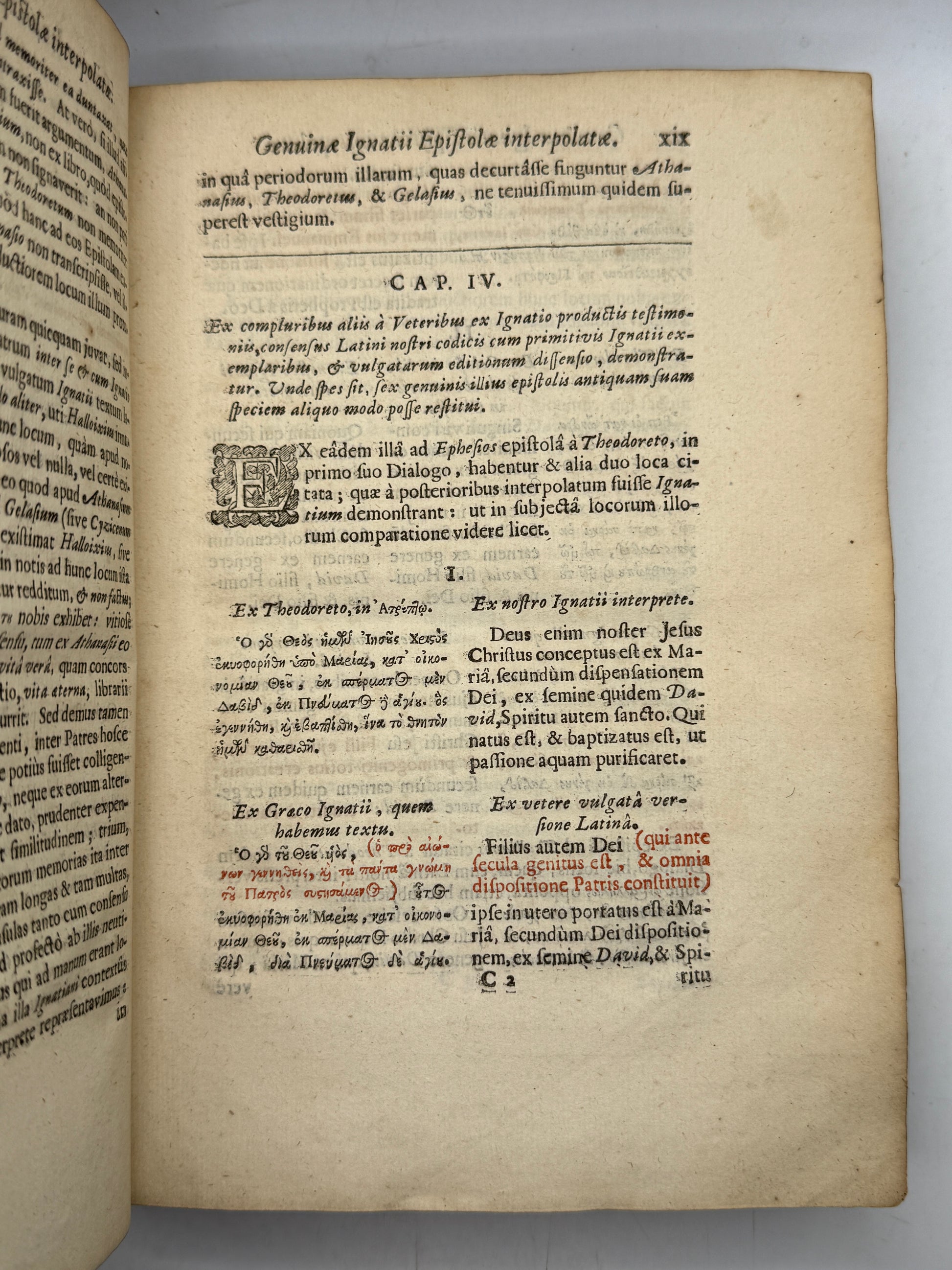 Annotations on the Collection of Ignatian Epistles to Polycarp; Corresponding to the Numbers Placed in the Inner Margin: In Which a Comparison of the Greek Copies of Ignatius, Both Among Themselves and with Both Ancient Latin Translations, Is Contained. Oxford, Printed by Henry Hall, 1644.