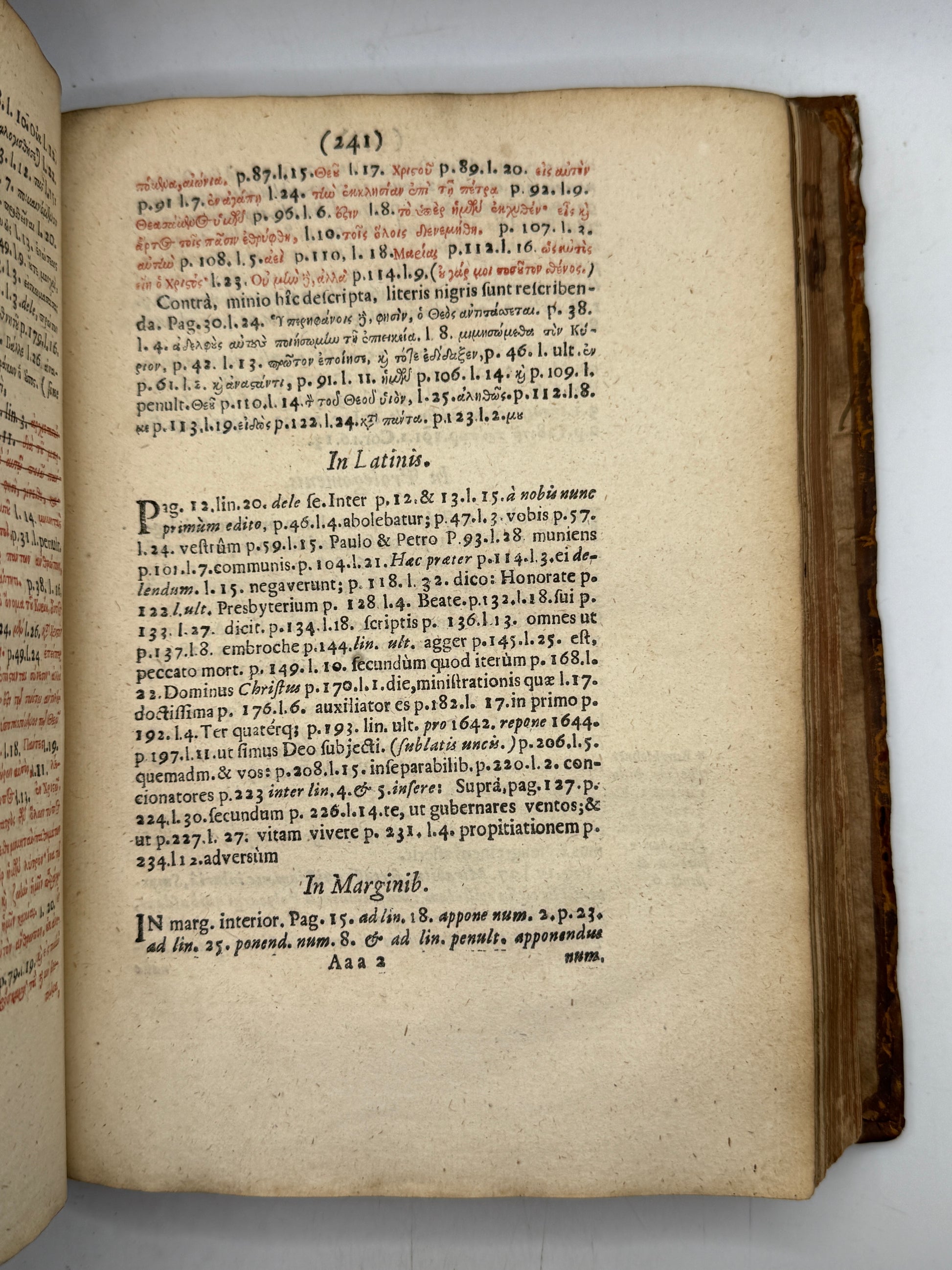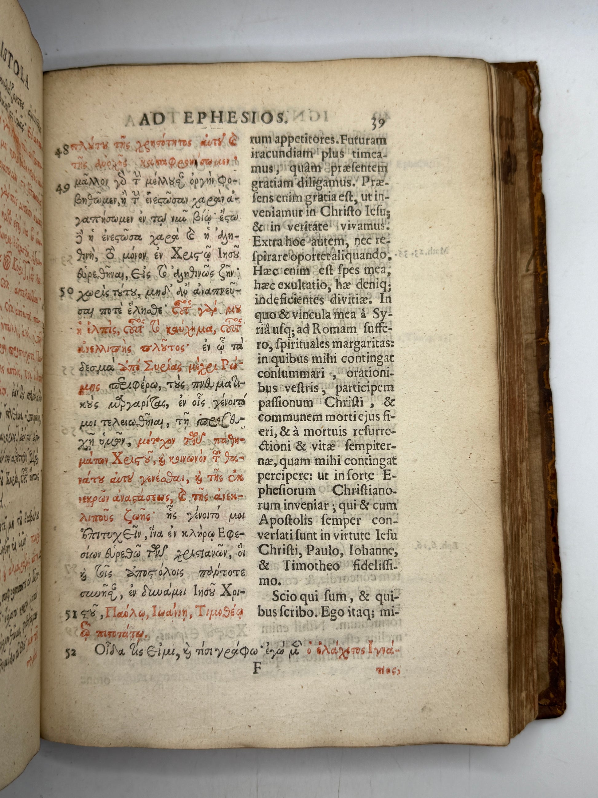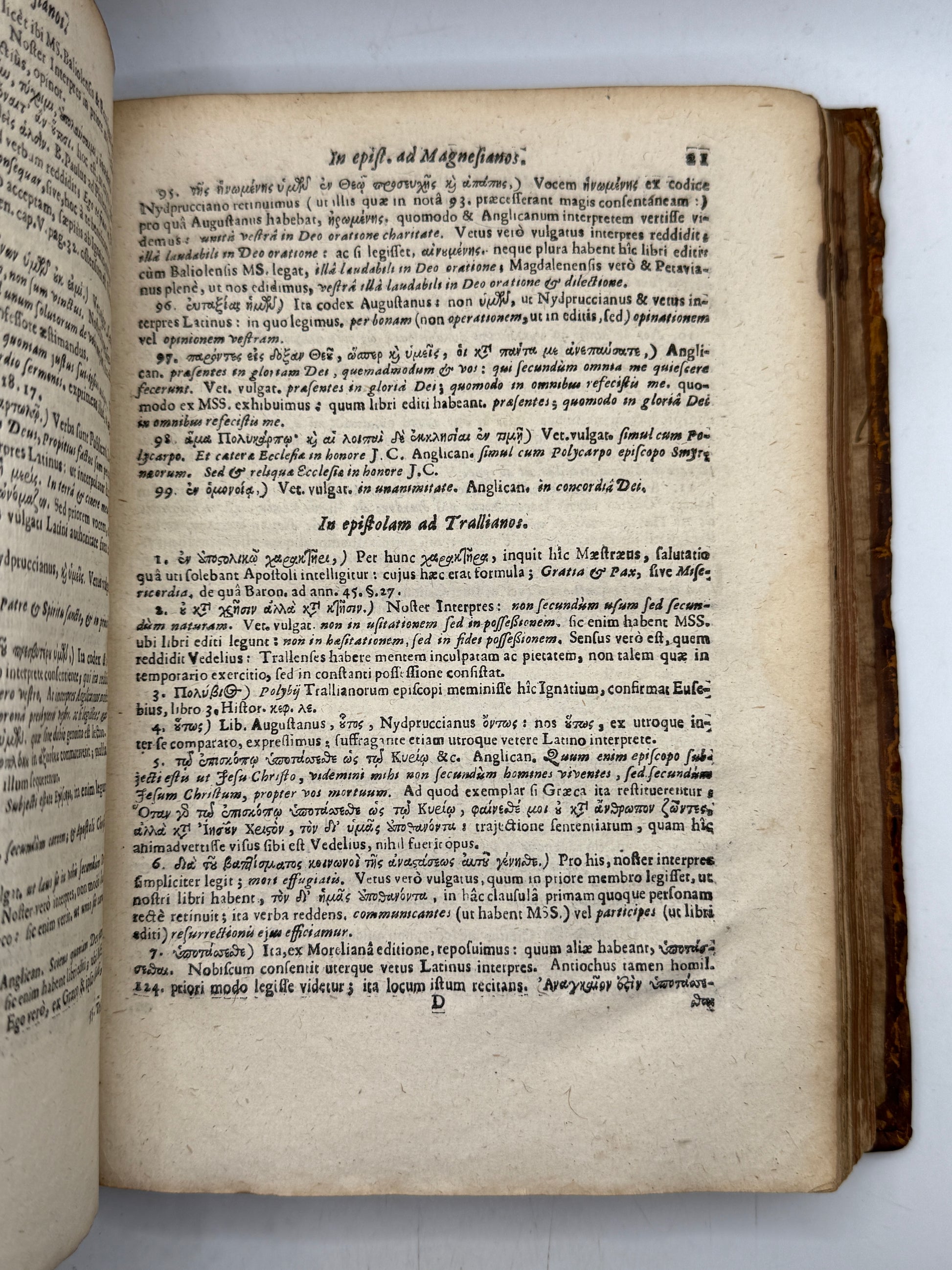 Annotations on the Collection of Ignatian Epistles to Polycarp; Corresponding to the Numbers Placed in the Inner Margin: In Which a Comparison of the Greek Copies of Ignatius, Both Among Themselves and with Both Ancient Latin Translations, Is Contained. Oxford, Printed by Henry Hall, 1644.