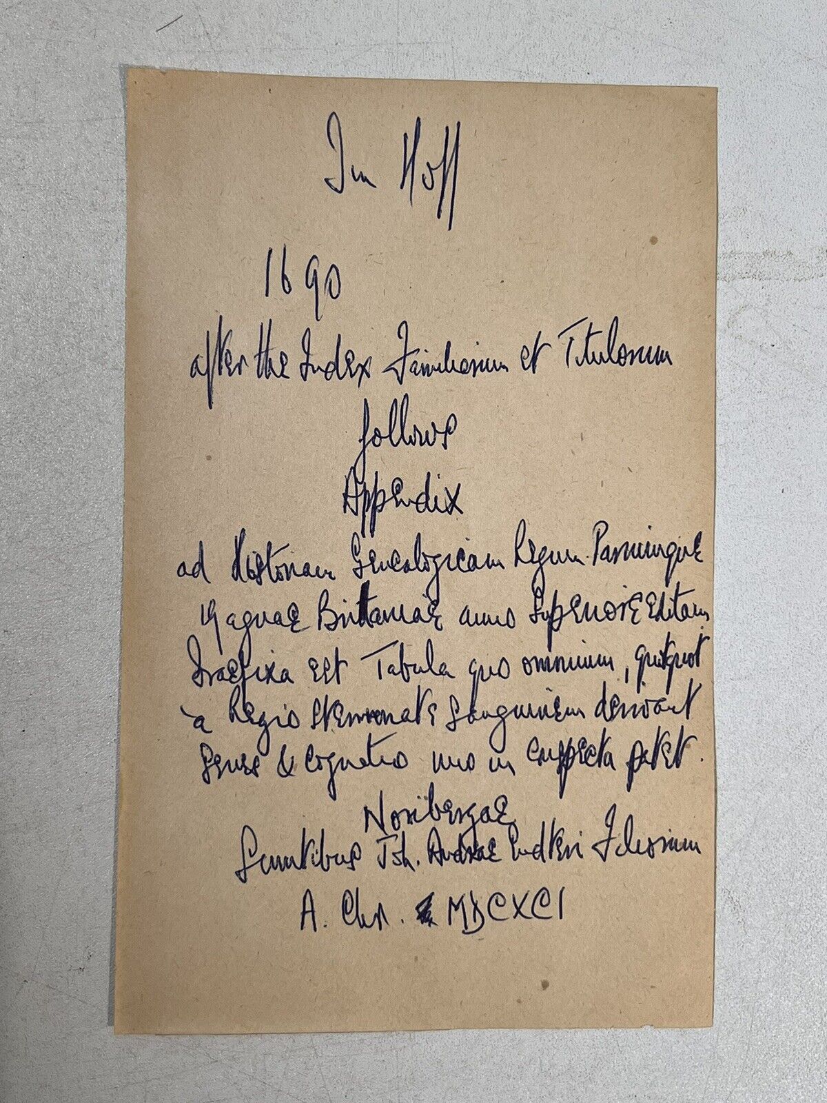 Regum Pariumque Magnae Britanniae Historia Genealogica. Qua Veterum Juxta Ac Recentium In Illa Familiarum Origines, Stemmata, & Res Memorabilires, Ordine Ad Novissimum Angliae Statum Aptato, Recensentur Atque Explicantur Additis Aeneis Insignium Tabulis Et Indice Necessario Studio Ac Opera Jacobi Wilhelmi Im. Hoff. Norimberga: Sumptibus Johannis Andreae Endteri Filiorum. Anno MDCXC.