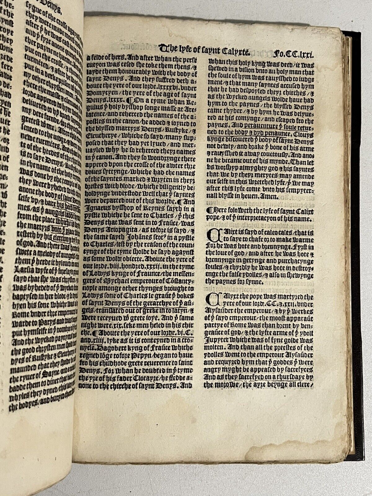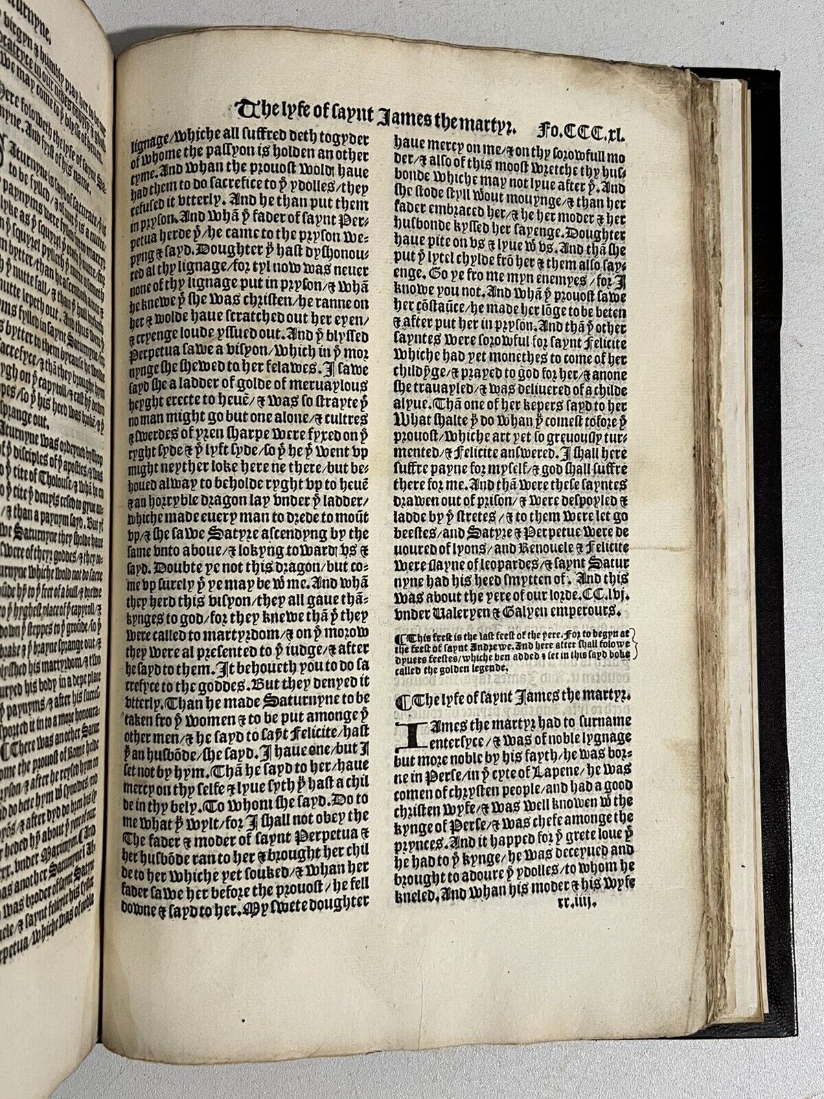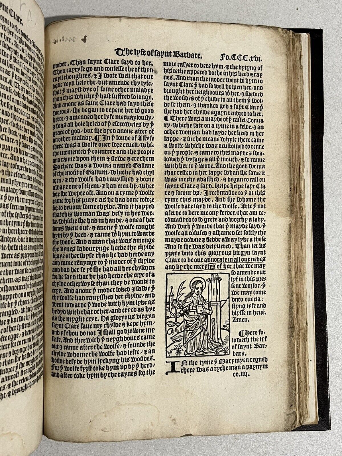 Legenda Aurea: that is to saye in Englysshe the Golden legende. For lyke as golde passeth all other metalles, so this boke exedeth all other bokes [...]. By Jacobus de Voragine. London: Wynkyn de Worde, 27 August 1527, folio.