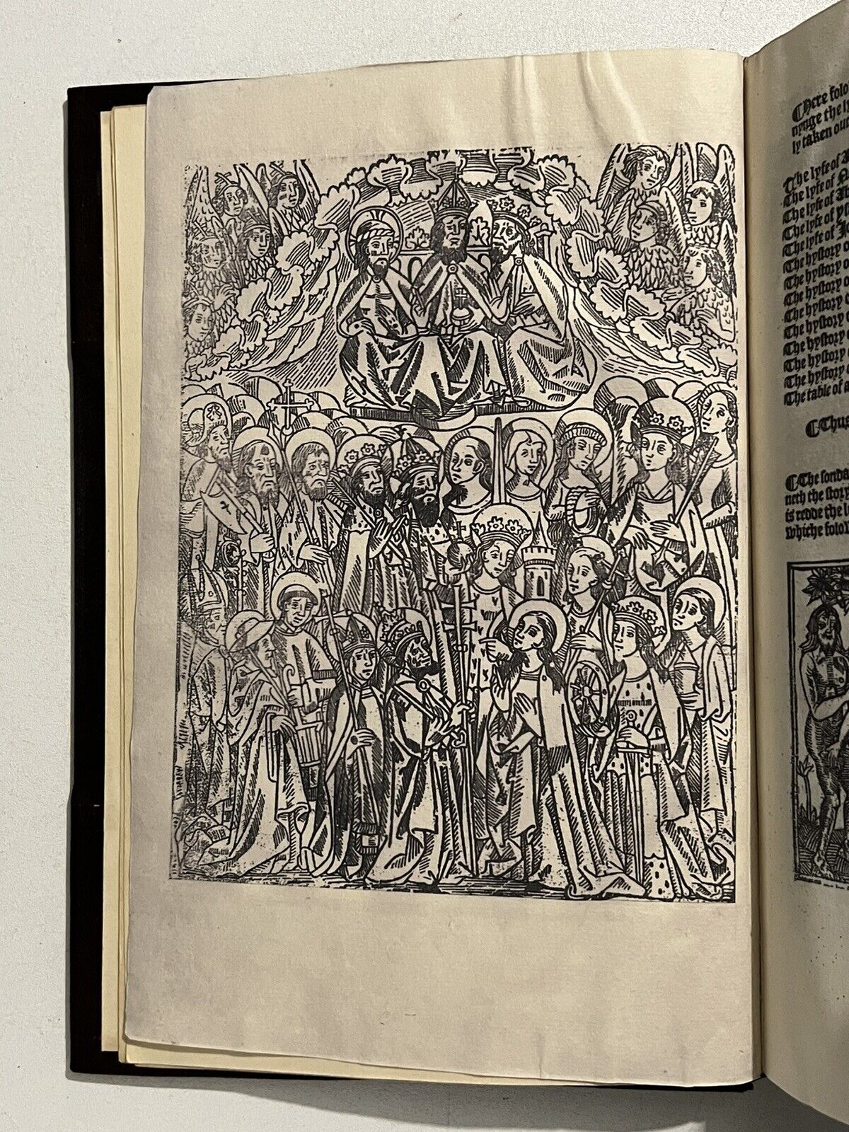 A noble fragment of this work, containing folios 233-382 (of 384), including 19 woodcut illustrations throughout. This edition is often owned only in single leaves and is exceptionally rare in any state of completion. For example, Purdue University has just two non-consecutive leaves in their collection. This book, being second only to Caxton in early English printing, is incredibly significant. Having a large consecutive portion of the text as here is exceptional. It is a fantastic book for historical reasons; it is one of the last explicitly Catholic oriented books printed in England prior to the Reformation and formation of the Church of England. This was printed just one year after Tyndale's first New Testament which appeared in 1526, of which only three copies survive. Extremely few books printed in England this early survive in any state of completion.