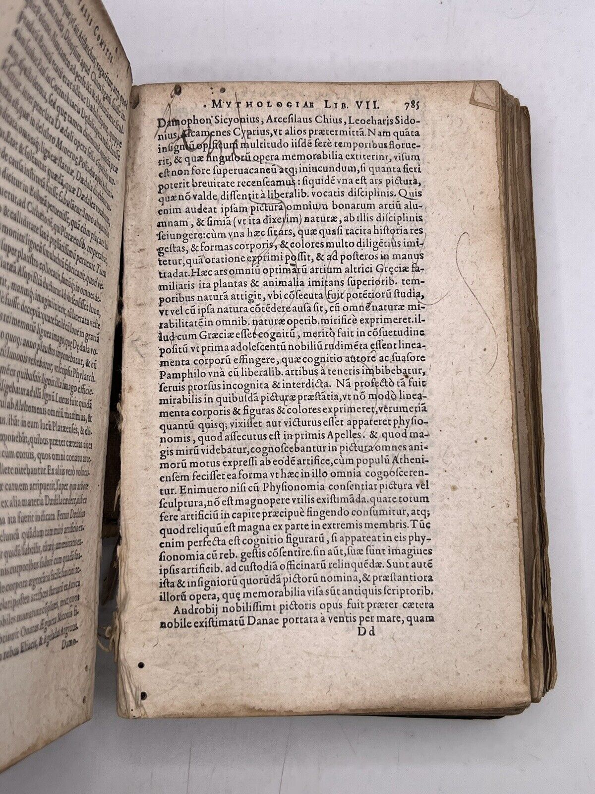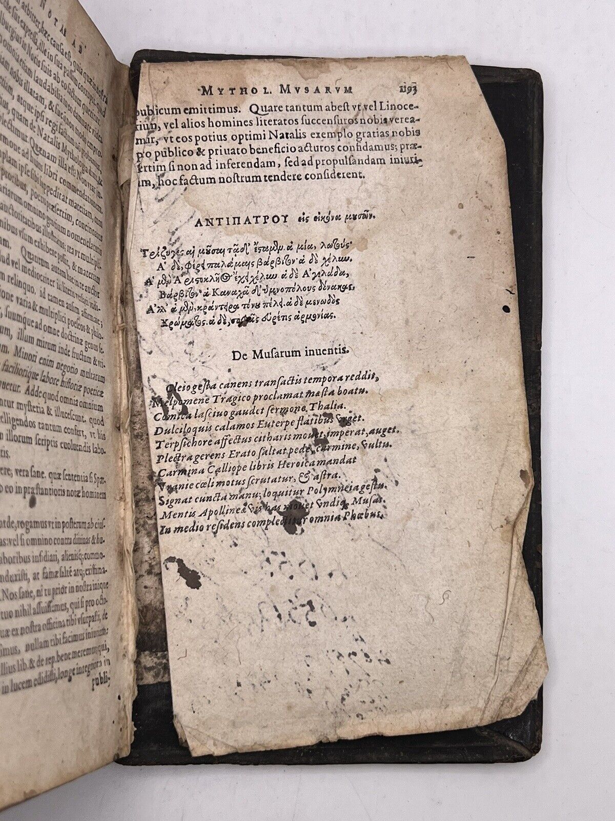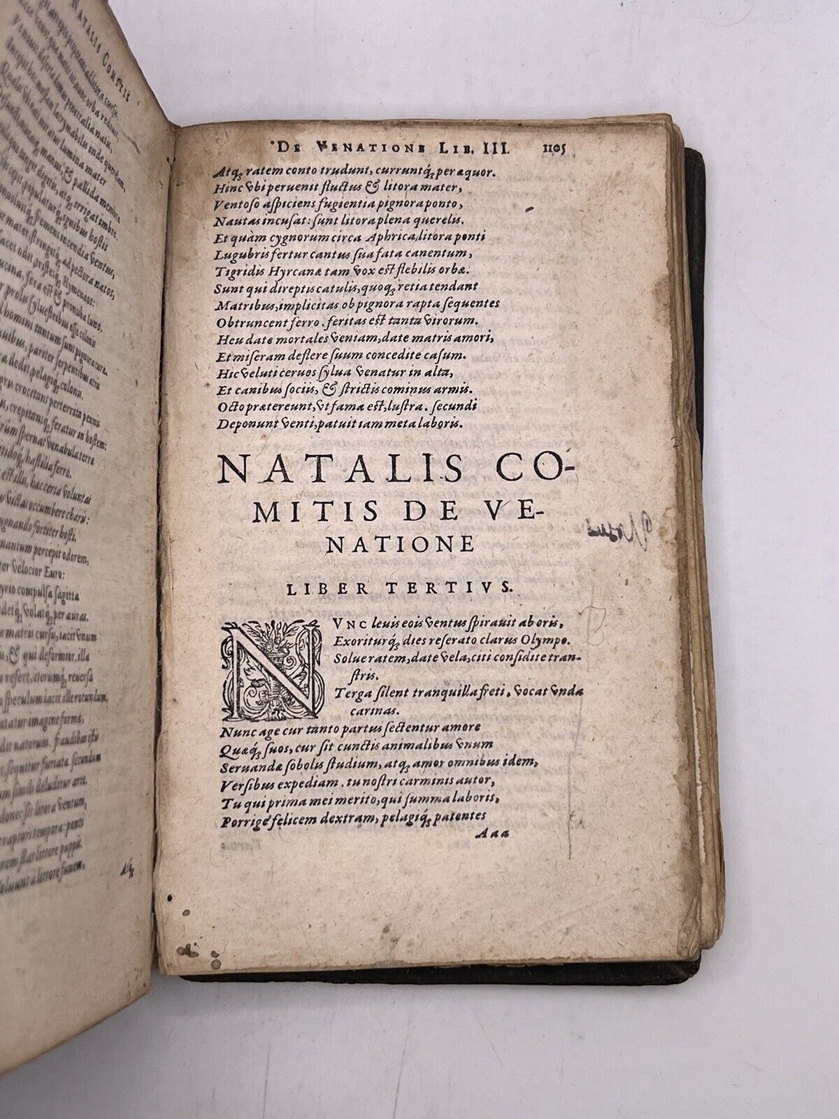 Natale Conti (Natalis Comes in Latin), was an Italian mythographer, poet, humanist and historian. His major work Mythologiae, ten books written in Latin, was first published in Venice in 1567 and became a standard source for classical mythology in later Renaissance Europe. It was reprinted in numerous editions; after 1583, these were appended with a treatise on the Muses by Geoffroi Linocier, also included in our edition. By the end of the 17th century, his name was virtually synonymous with mythology: a French dictionary in defining the term mythologie noted that it was the subject written about by Natalis Comes.