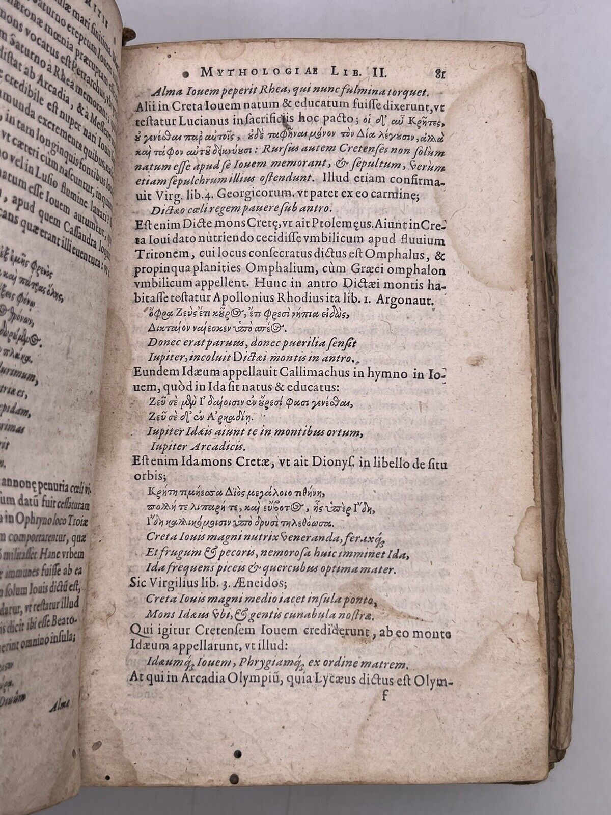 The Mythology of Natalis Comes, or the Explanation of Myths, in Ten Books: In Which It is Demonstrated That Almost All the Doctrines of Natural and Moral Philosophy Were Contained. Recently Recognised and Enriched by the Author Himself. Also, Four Books of the Hunt by the Same Author. With a Triple Index of Memorable Things, Cities & Places Named After Various Heroes, and of Plants & Animals Dedicated to Each God. A Work Highly Useful and Almost Necessary for Students of Any Faculty. Also Added, The Mythology of the Muses, Comprehended in a Single Book by Geoffrey Linocerius, Now Recently Purged of Many and Gross Errors by F.S. Frankfurt, Published by the Heirs of Andreas Wechel, Claudius Marnius & John Aubrius. 1596.
