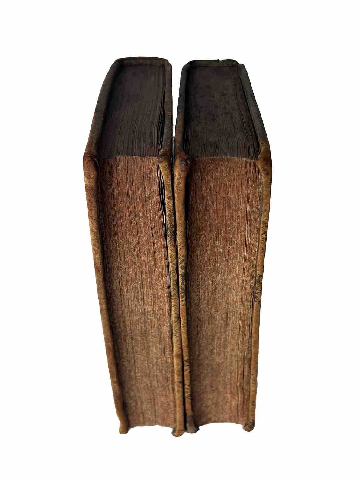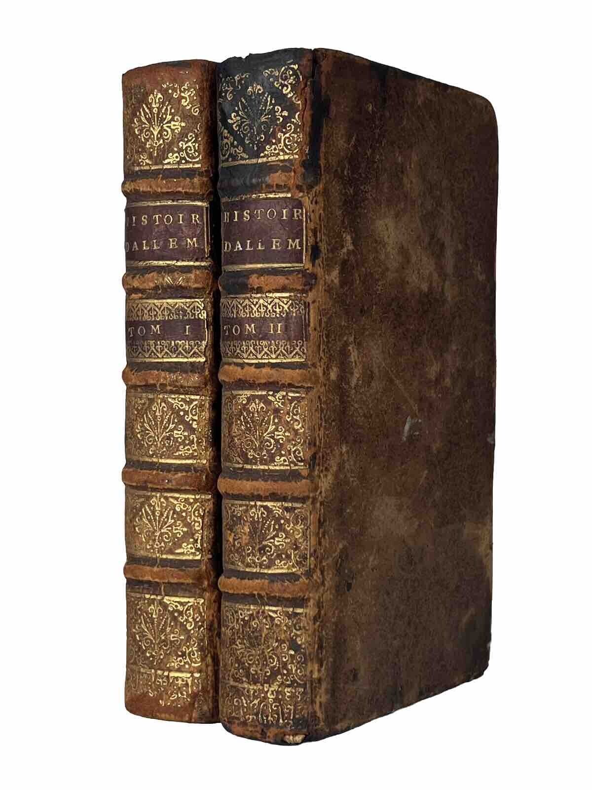 Near contemporary full calf, finely tooled to the spines retaining the tooled morocco labels. Bindings rubbed, the head of the spine of volume two is blackened. Joints rubbed but with all boards securely attached. Binding secure and without shelf lean. Shelf and edge wear as typical. Top page edges uniformly dulled, others very good. Bookplate to front pastedown dated 1724 with some early ink to the head with shelf reference marks of volume one and to the head of the ffep in volume two. Early ink writing to the foot of the first volume's title page. Generally very clean throughout text blocks, including some lovely plates. A lovely set.