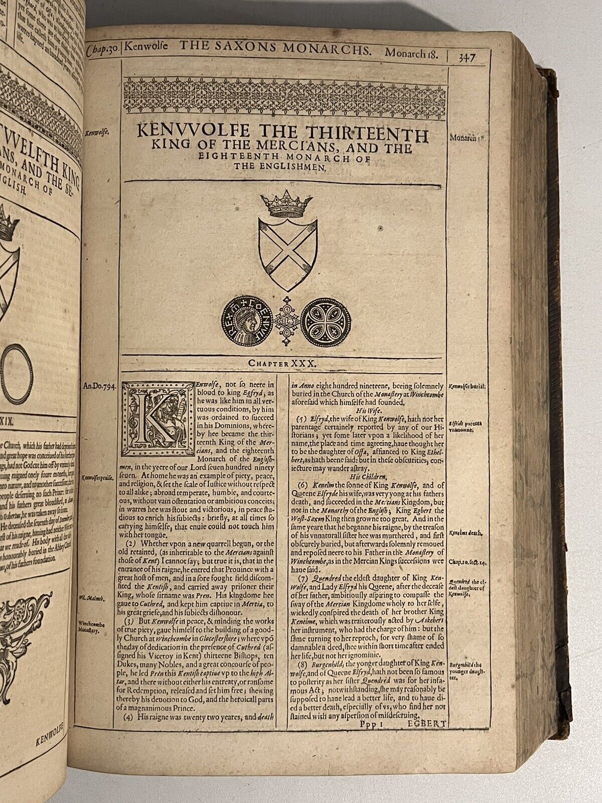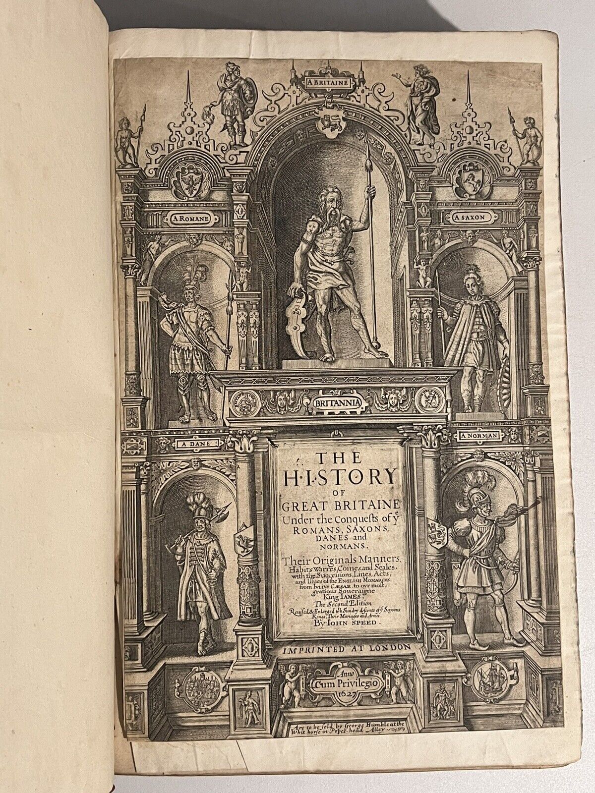 The History of Great Britain Under the Conquests of ye Romans, Saxons, Danes, and Normans. Their Originals Manners, Habits, Warres, Comes and Seales, with the Successions, Lines, Acts, and Issues of the English Monarchs from Julius Caesar to Our Most Gratious Soueraigne King James. The Second Edition. Revised and Enlarged with Sundry Descents of ye Saxons Kings; Their Marriage and Arms. By John Speed. Imprinted at London. Anno Cum Privilegio 1627.