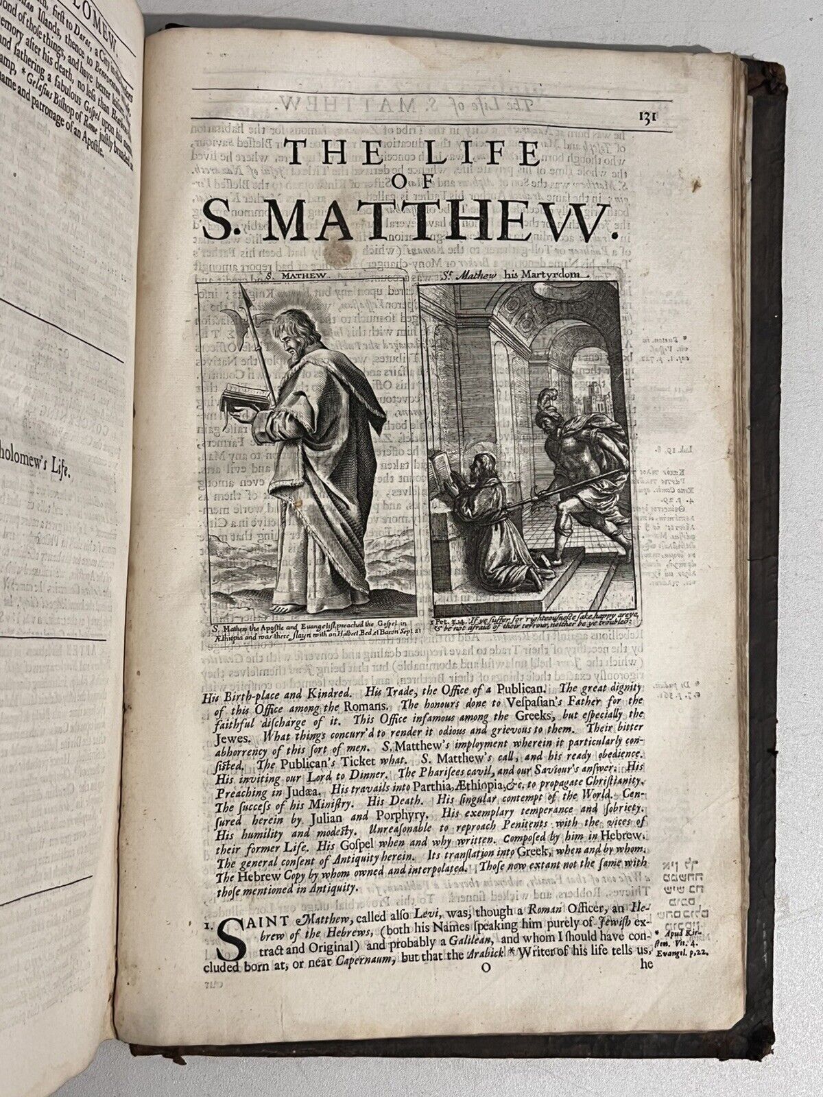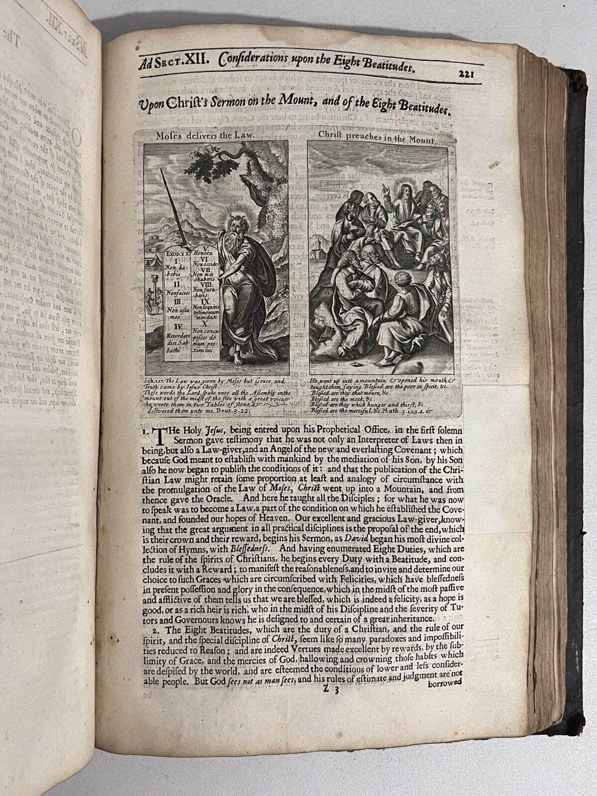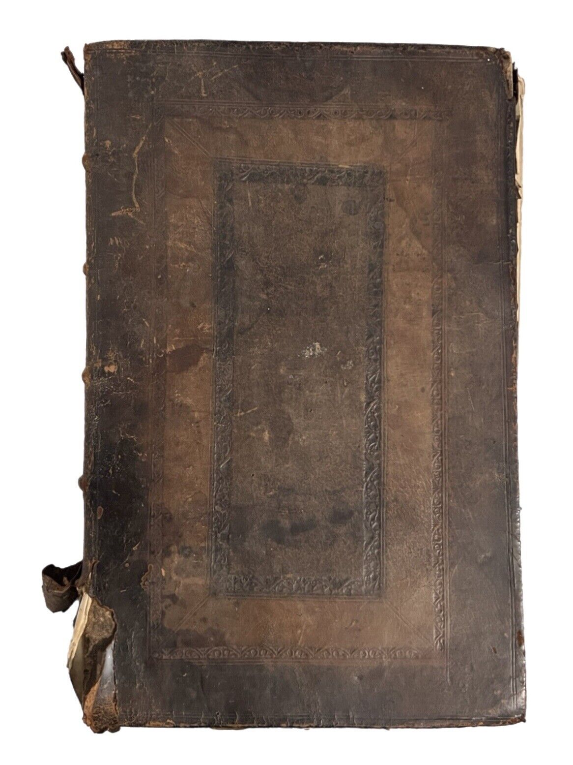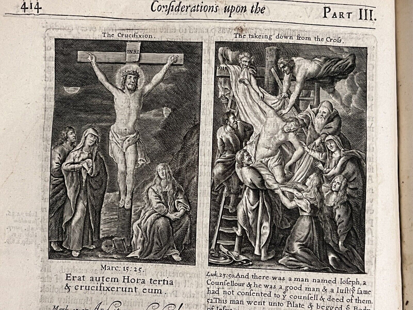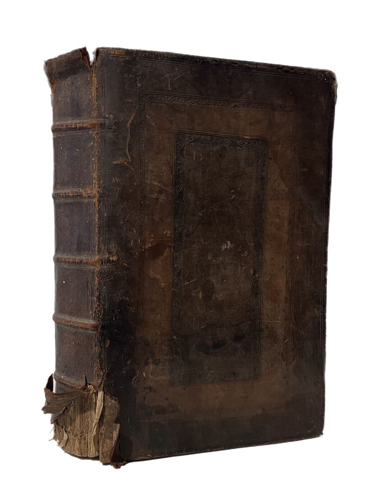 Full brown calf with blind-stamping to the boards. Binding rubbed and scuffed with some leather fragments lacking and peeling in places, and some discolouration/damp staining. Some wormholing to the binding. Page edges dulled. Both boards attached with wear to joints and hinges, some cracked or starting, thus very fragile. Text block very clean with light toning and occasional foxing. Uncollated, some leaves are loose or partially detached. Front pastedown partially detached from the board. Leaf edge repair to pp.221/222 of the Life of Jesus Christ. Some small damp staining to the tops of leaves.