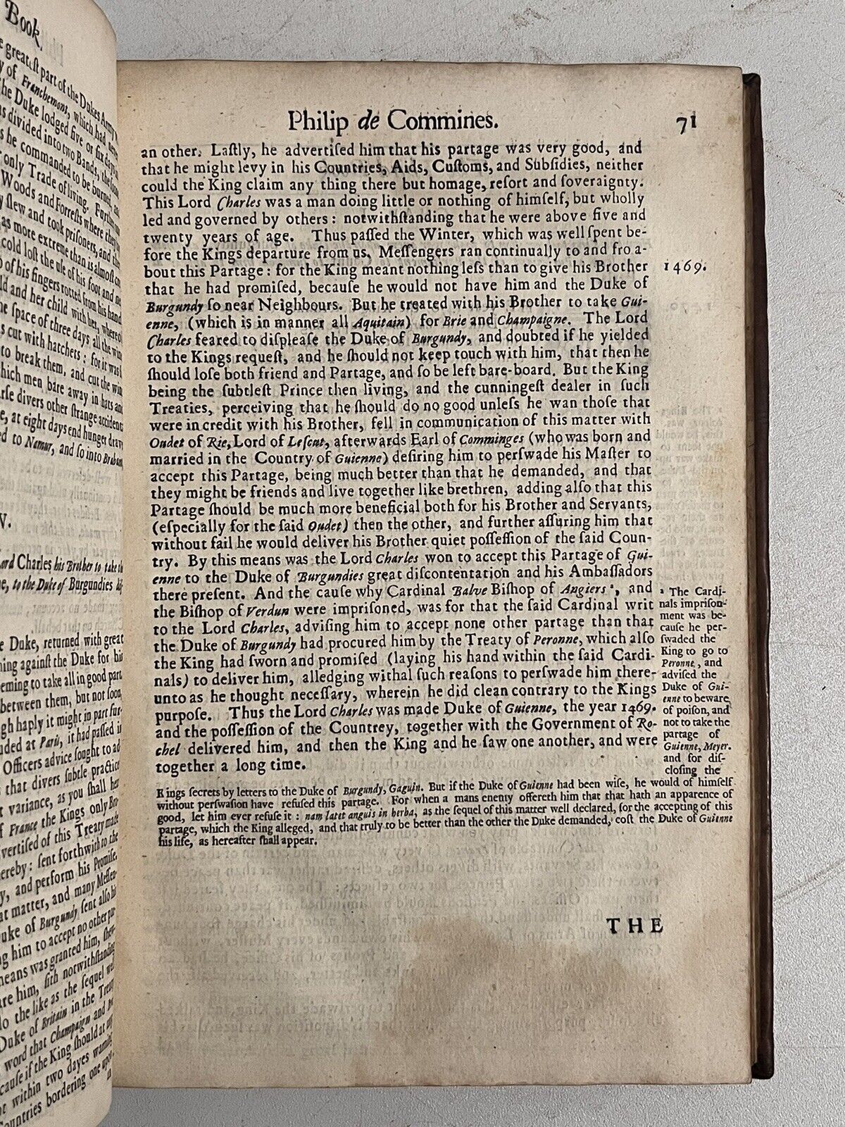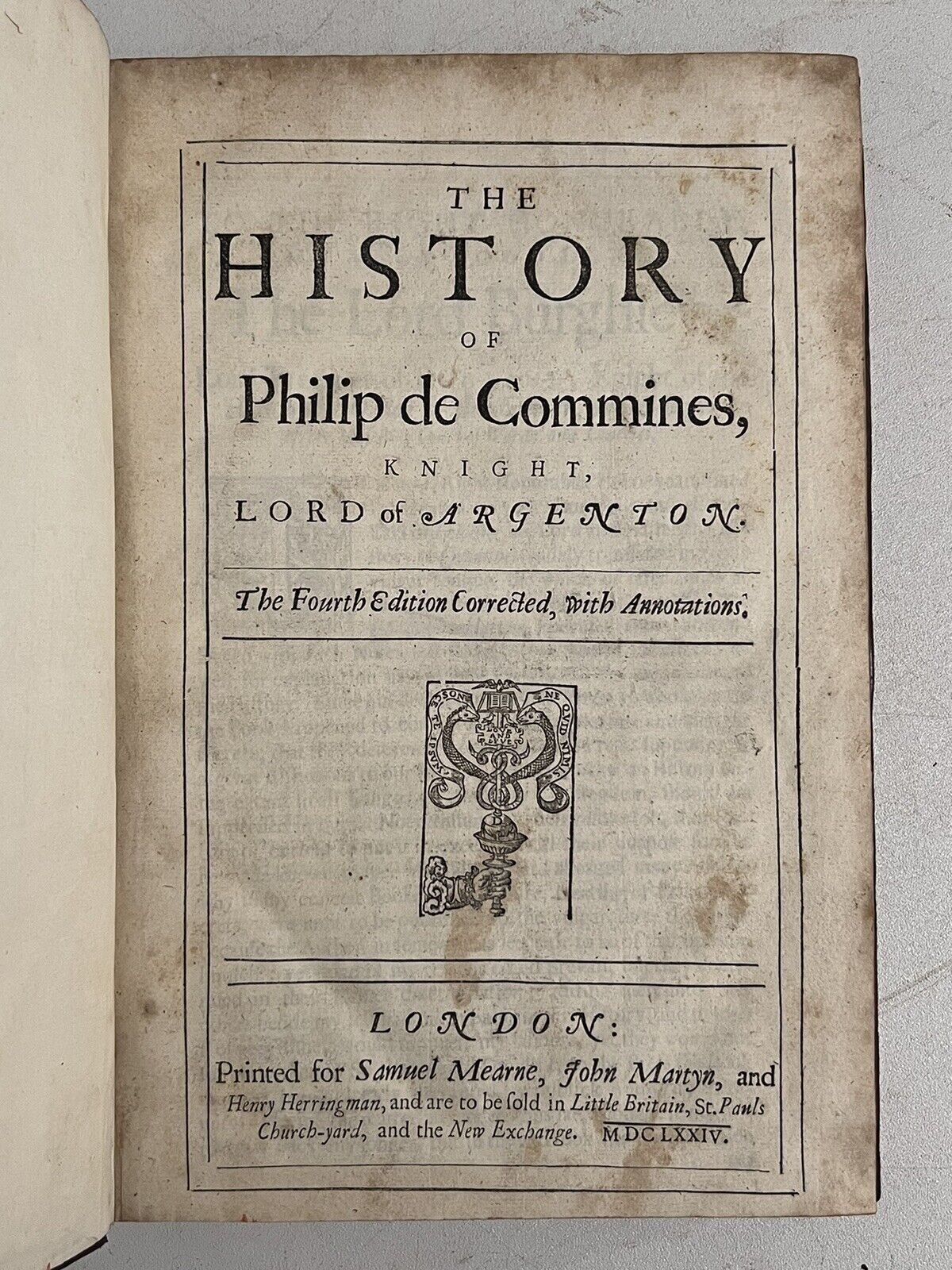 The History of Philip de Commines, Knight, Lord of Argenton. The Fourth Edition Corrected, with Annotations. London: Printed for Samuel Mearne, John Martyn, and Henry Herring, MDCLXXIV (1674).