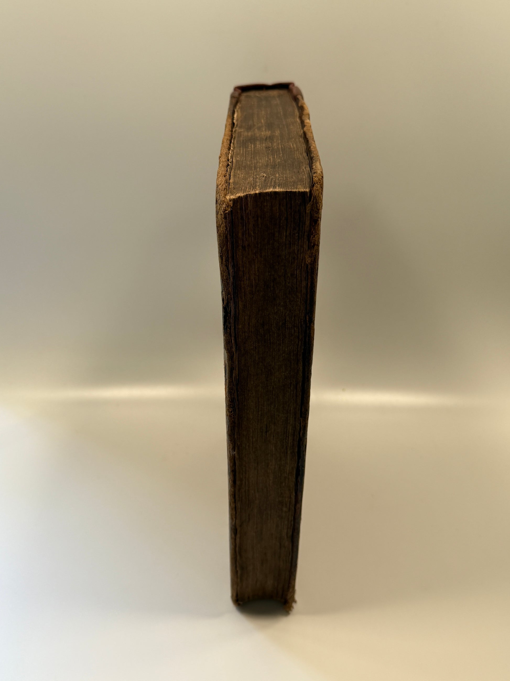 Full leather binding, rebacked, rubbed and scuffed. Prominent shelf and edge wear. Both boards attached with cracked hinges and reinforced joints from the rebacking. Page edges dulled. Ink inscription to the half title. Marks to the title page. Text block very clean with edge toning and occasional foxing. Ink corrections (?) to pp.1. The collation varies slightly from the WorldCat copy which has fewer leaves and collates as follows: [20], 546, 31, [12], and thus it seems most likely that this copy collates as complete.