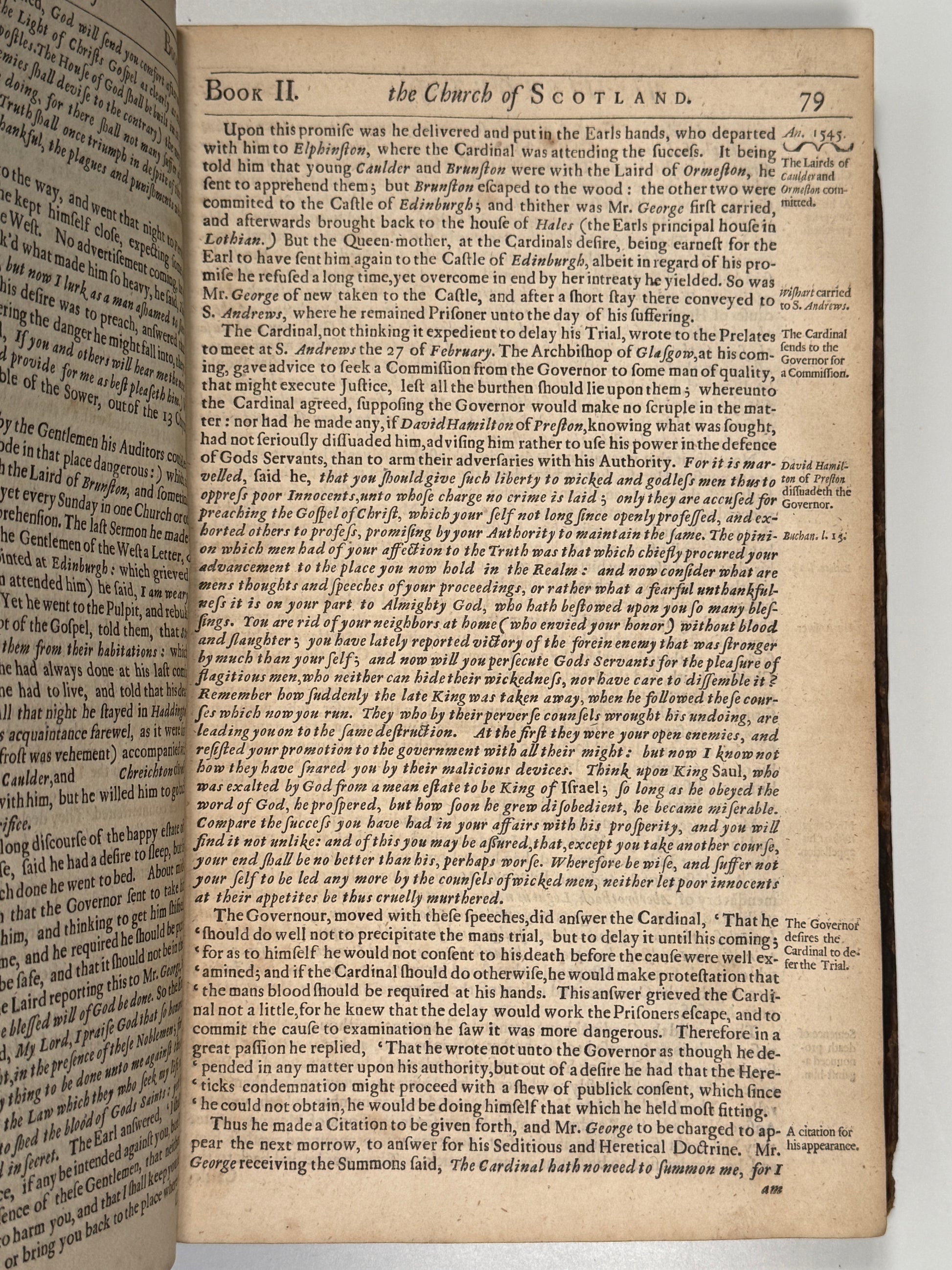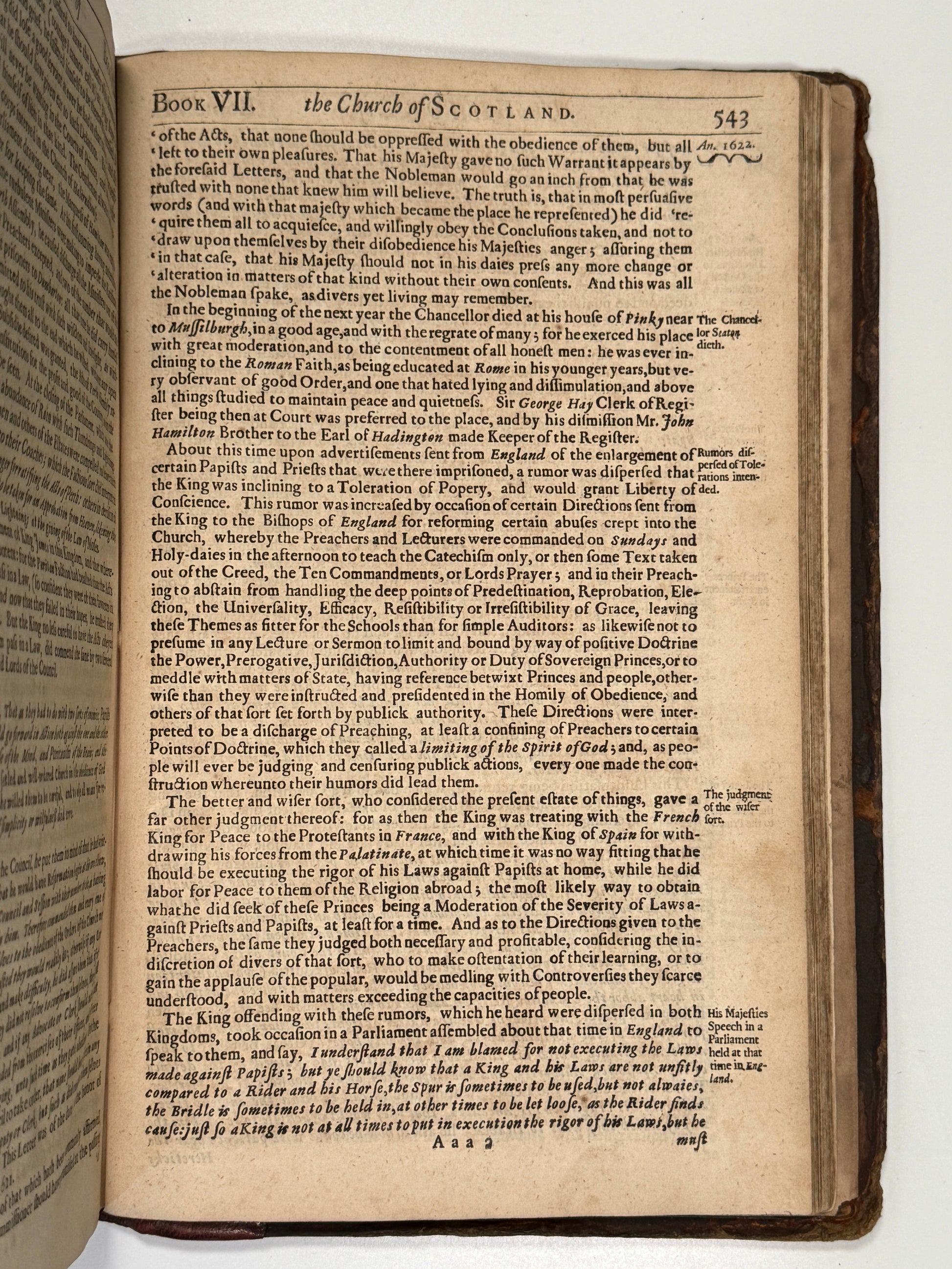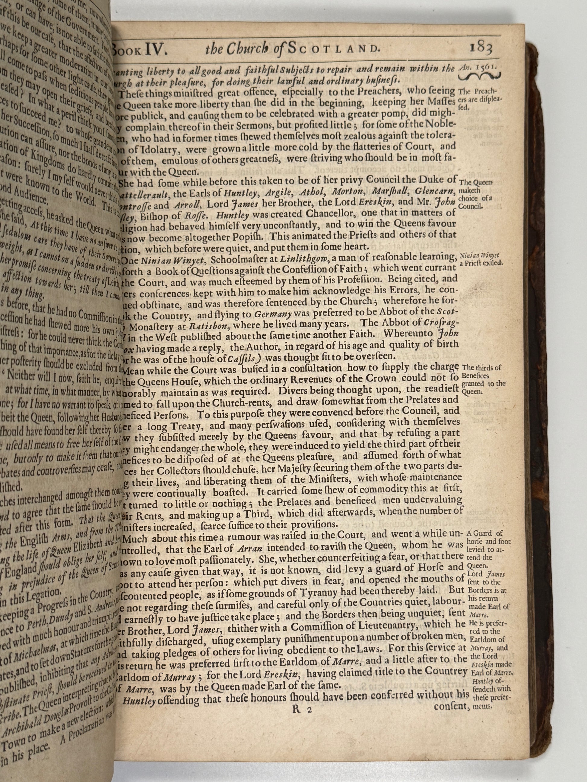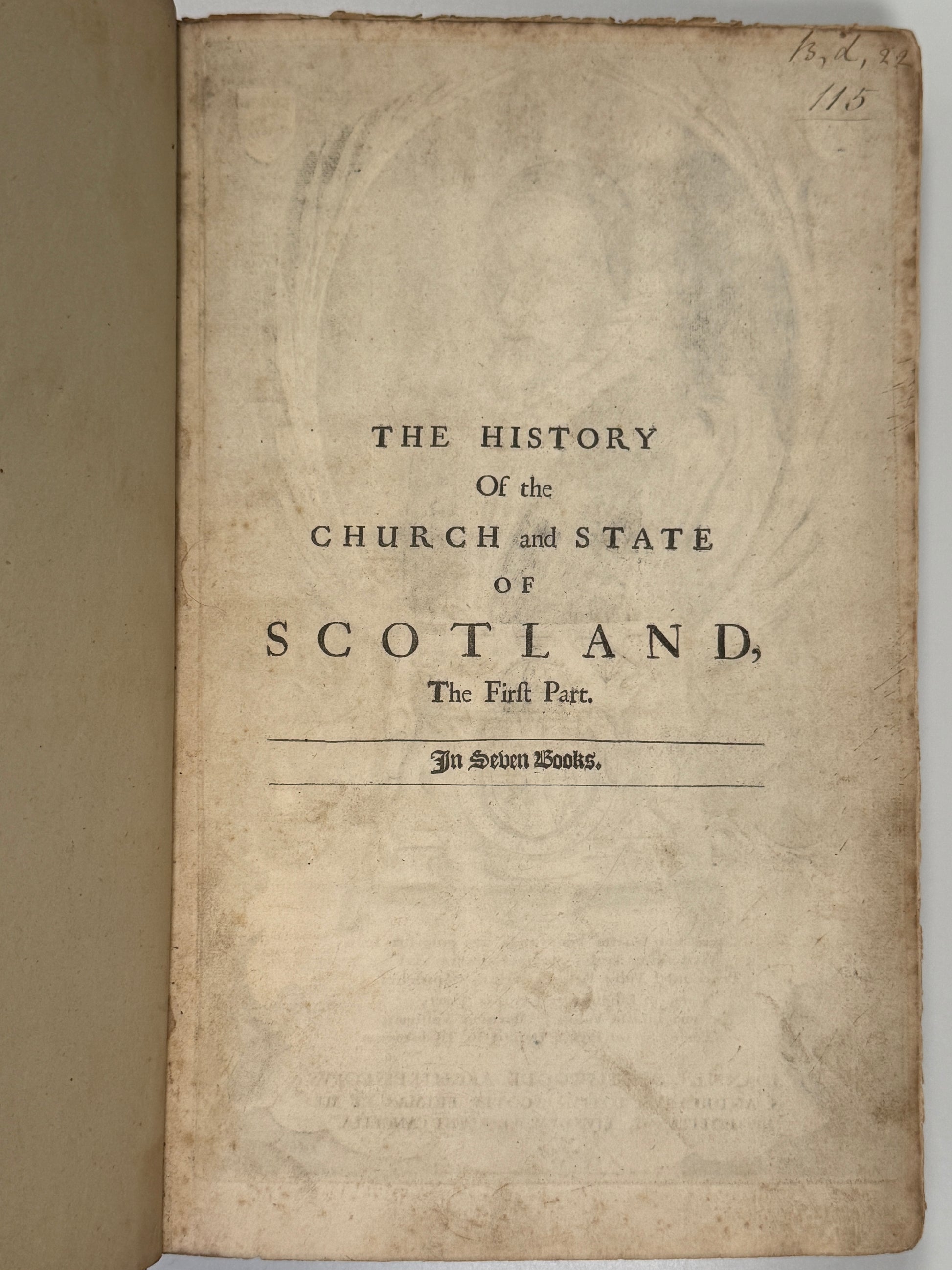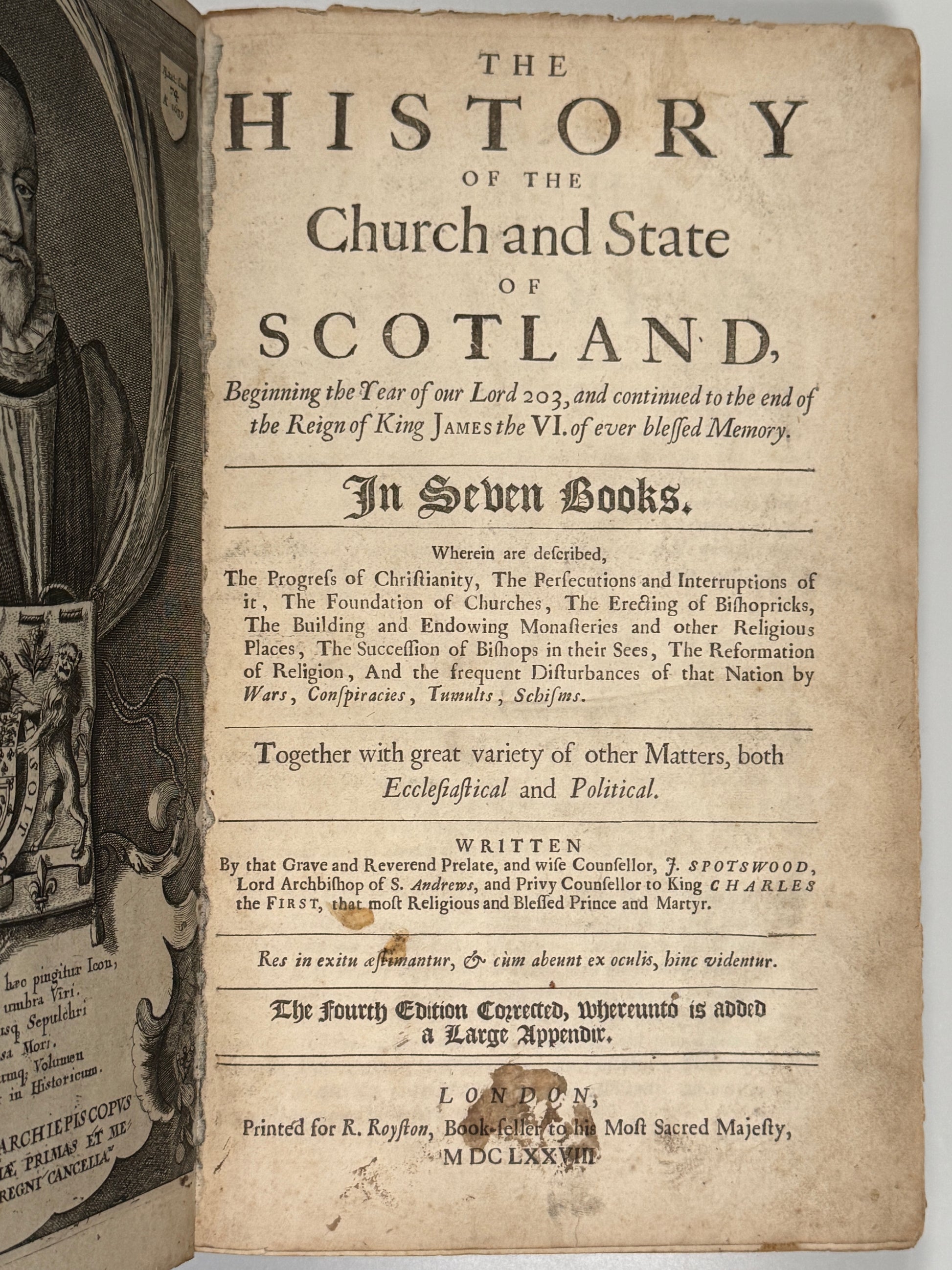 The History of the Church and State of Scotland, Beginning the Year of Our Lord 203, and Continued to the End of the Reign of King James the VI. of Ever Blessed Memory. The Seven Books. Wherein are Described, the Progress of Christianity, the Persecutions and Interruptions of its the Foundation of Churches, the Erecting of Bishopricks, the Building and Endowing Monasteries and Other Religious Places, the Succession of Bishops in Their Sees, the Reformation of Religion, and the Frequent Disturbances of That Nation by Wars, Conspiracies, Tumults, Schisms. Together with Great Variety of Other Matters, Both Ecclesiastical and Political. Written by That Grave and Reverend Prelate, and Wife Counsellor, J. Spotswood, Lord Archbishop of S. Andrews, and Privy Counsellor to King Charles the First, That Most Religious and Blessed Prince and Martyr. The Fourth Edition Corrected, Whereunto is Added a Large Appendix. London: R. Royston, MDCLXXVIII (1678).