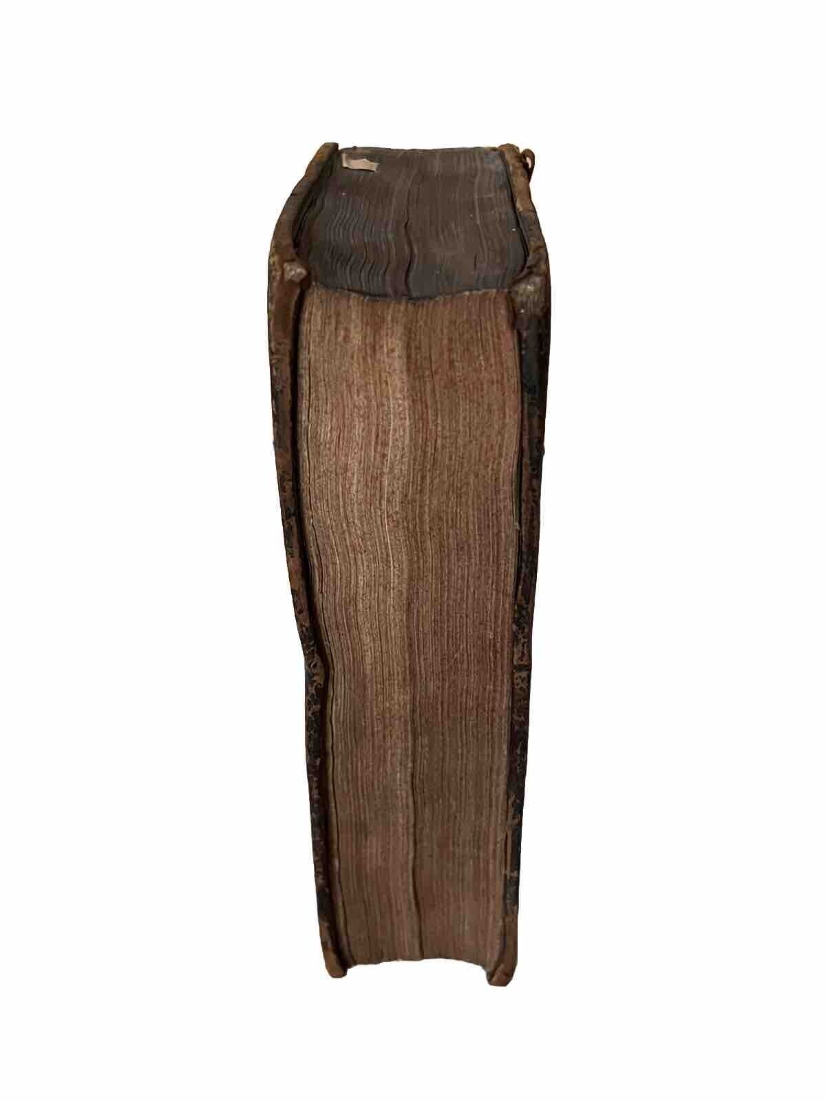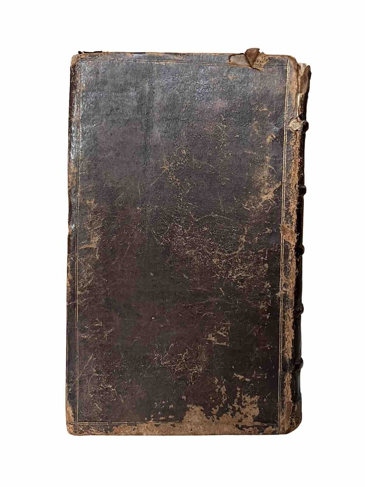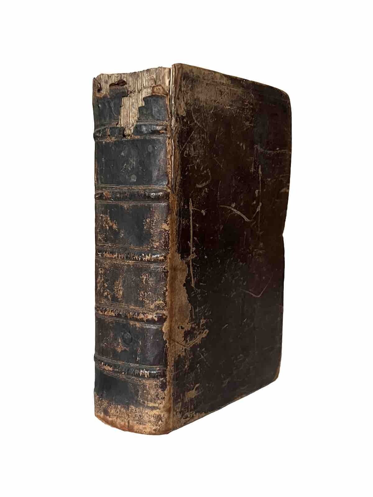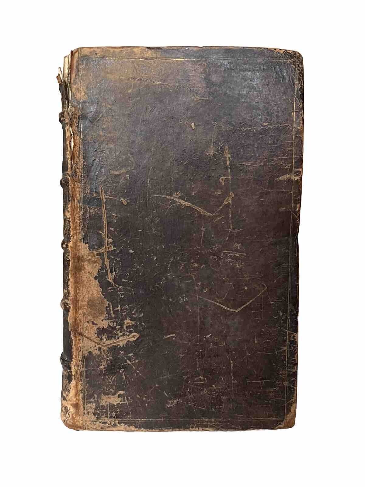Contemporary full calf binding, rubbed with some loss at head of backstrip, with the leather being relatively dry and would benefit from the application of a leather conditioner. Joints rubbed and cracked at the top on both sides, but with both boards securely attached, the binding secure, and without shelf lean. Shelf and edge wear. Top page edge dulled as typical, others very good. Without any attached bookplates, though with a small attached stamp backing (?) extending across from the front pastedown to verso ffep, perhaps in an effort to secure the hinge. A few ownership inscriptions to preliminaries, including some near contemporary, others dated 1803 and 1831, and another one to the head of the title page. Early marginalia throughout, not covering text, seemingly not in the hand of any of the ownership inscriptions. Endpapers edge toned as commensurate with the calf binding. Some dampstaining through the preliminary pages affecting up to around pp.5, decreasing in intensity from the title page & preface leaf onwards. Small edge dampstain in the marginal space between pp.291-319 of the first book not affecting text. Small stain extending across pp.337-343 obscuring a few words of text to pp.339, but with full legibility on the other pages. A few other small dampstains throughout generally not extending beyond a small number of pages. Text block mildly toned throughout as typical, else generally reasonably clean. The entire text without loss of sense throughout with the exception of around 4 words on pp.339 as previously mentioned. Leaf B1 slightly shorter at bottom edge and uneven, probably as printed, medium size hole to edge of title page in gutter just touching text of the printer imprint as pictured, also affecting the verso blank leaf.