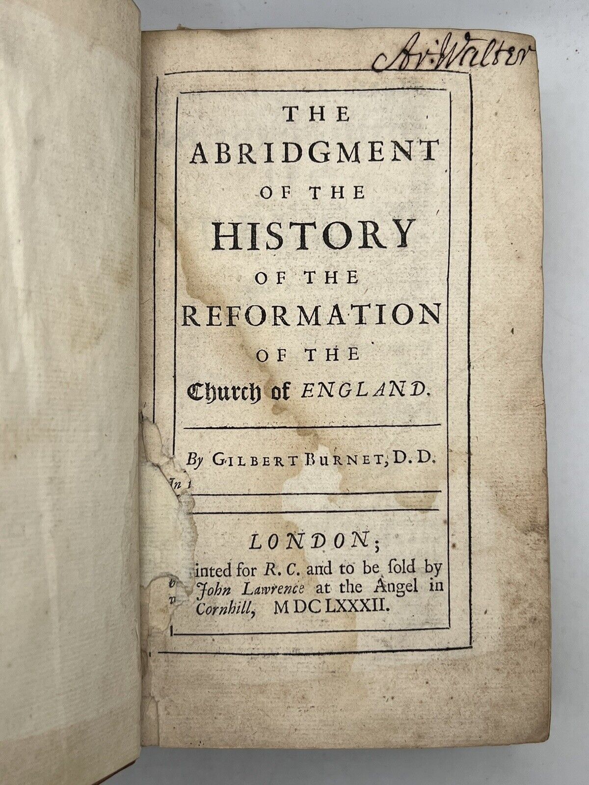 The Abridgement of the History of the Reformation of the Church of England. By Gilbert Burnet. London: R.C. for John Lawrence, 1682.