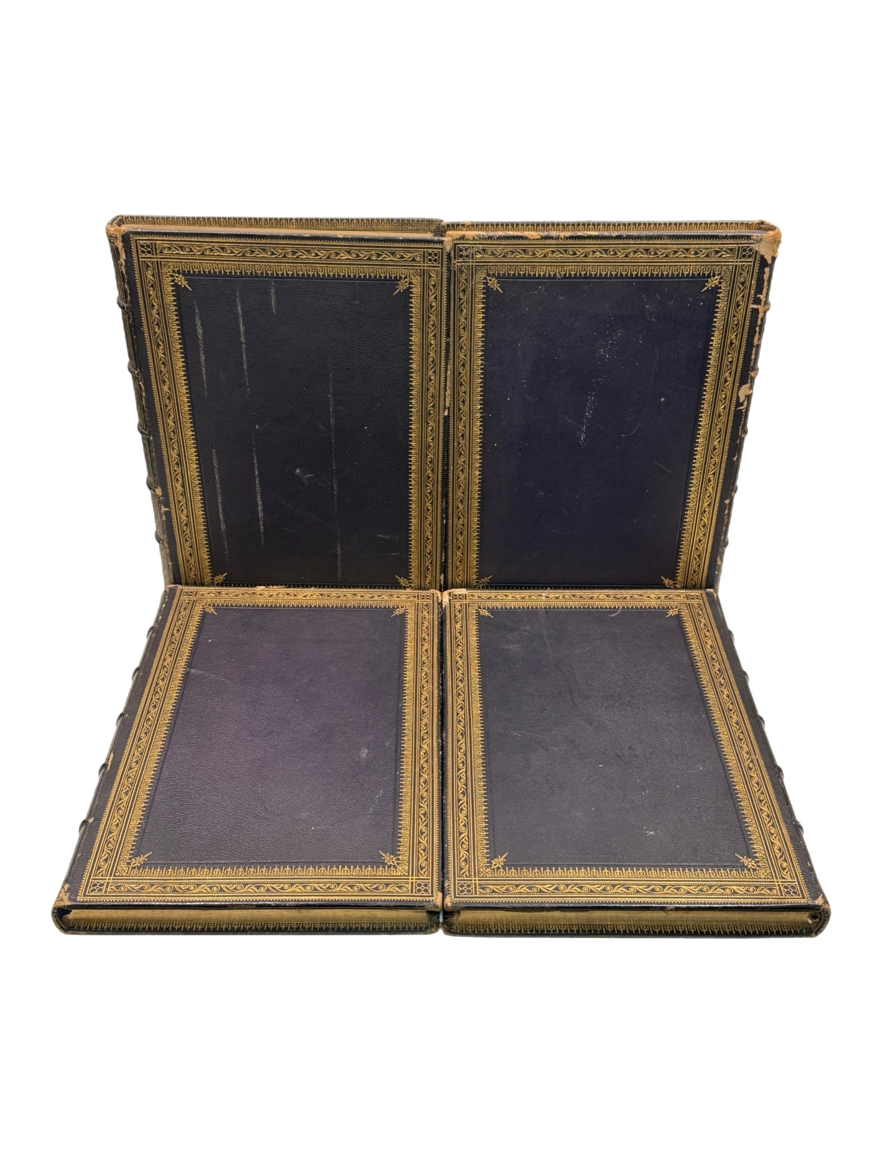 Complete with all six volumes. Contemporary (or very near) full pebbled calf bindings, richly tooled in gilt to spines and board edges with attractive gilt turn-ins. Bindings rubbed with shelf and edge wear. rubbed along joints, all boards securely attached, some wear at hinges in some of the volumes. Externally a very attractive set indeed. The set stands on the shelf without lean. Mildly toned throughout, particularly to the tissue guards as typical, scattered generally mild foxing/spotting throughout. Dampstain at the foot of the first few leaves of third and fourth volumes (pictured with the title pages of those two vols), generally confined to the the blank marginal space, and a larger one to the last two leaves and final blanks of the fifth volume. Uncollated, but appears to be complete.