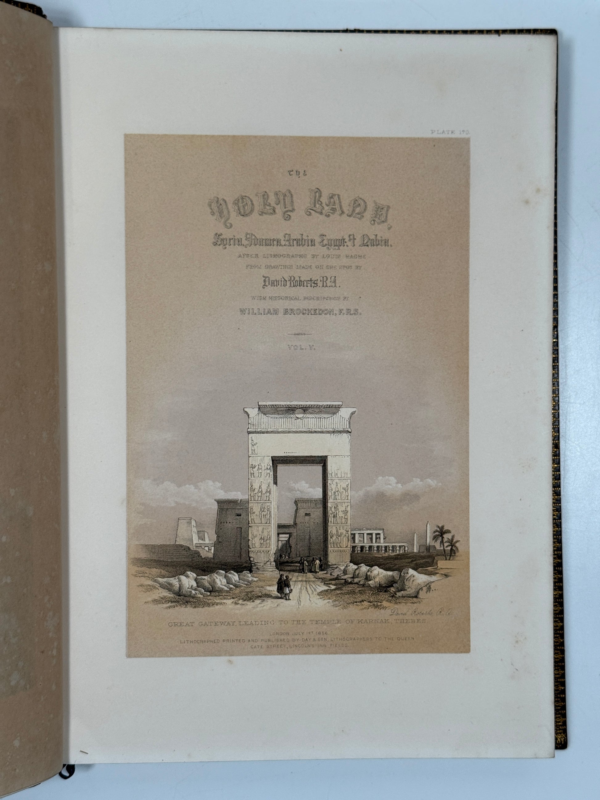 The Holy Land, Syria, Idumea, Arabia, Egypt, & Nubia. After Lithographs By Louis Haghe From Drawings Made on the Spot by David Roberts, R.A. With Historical Descriptions By The Rev. George Croly. London: Day & Son, 1855, 4tos, a.e.g.