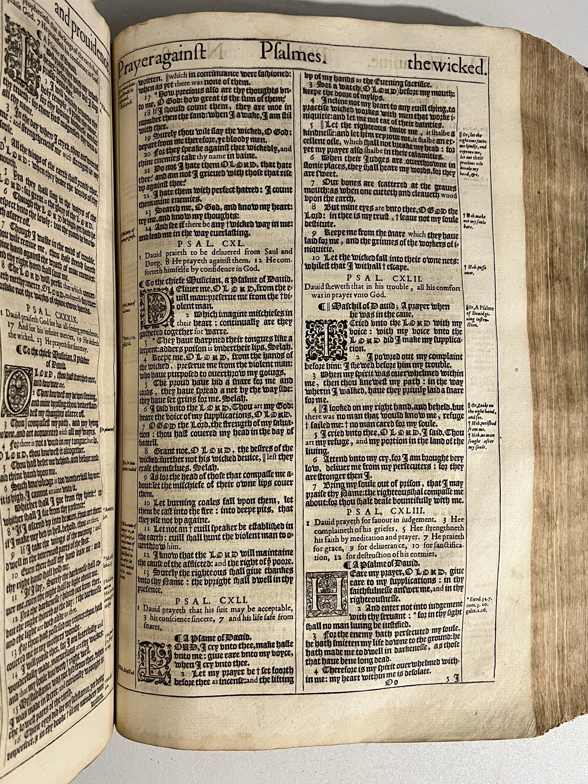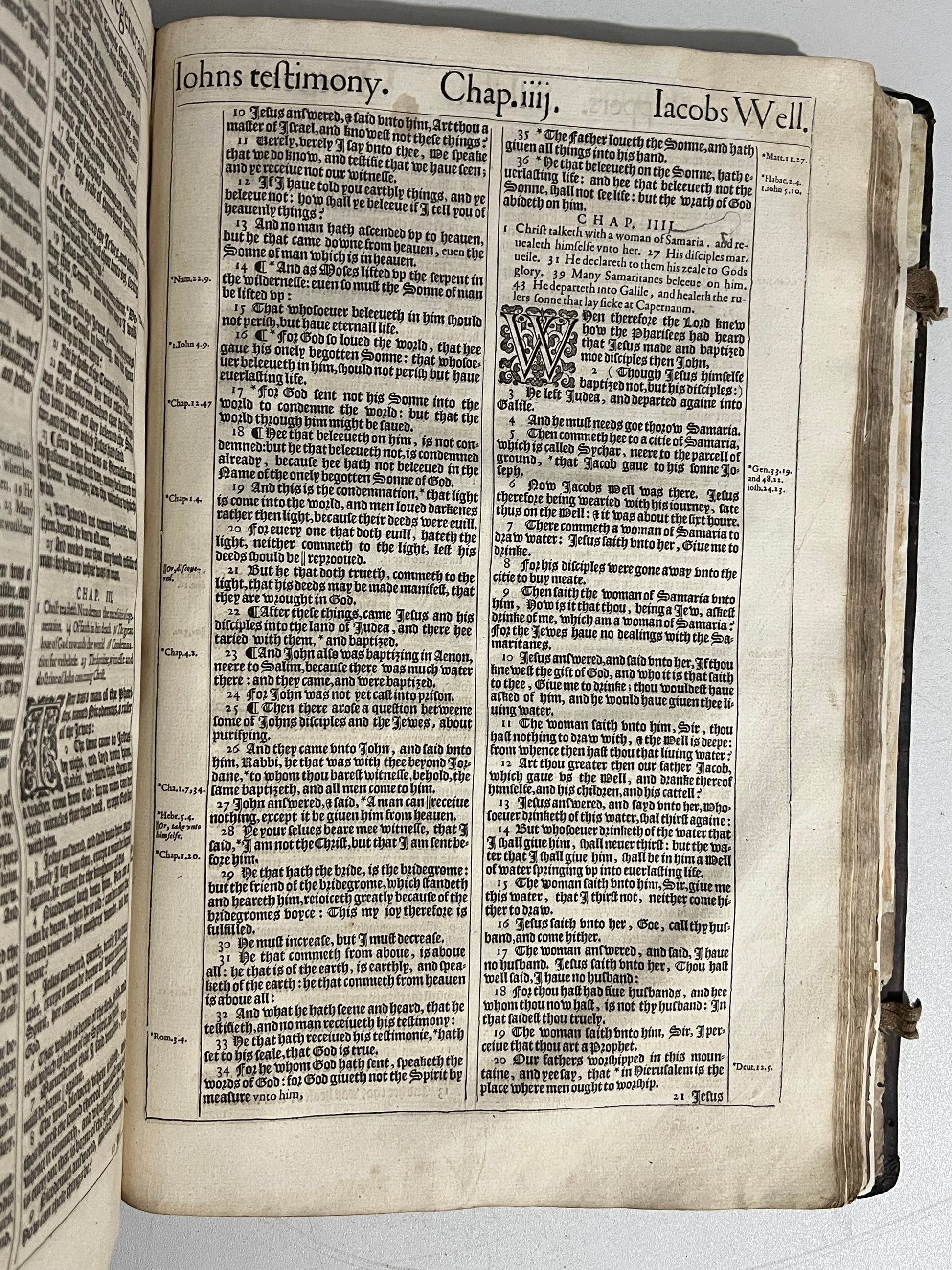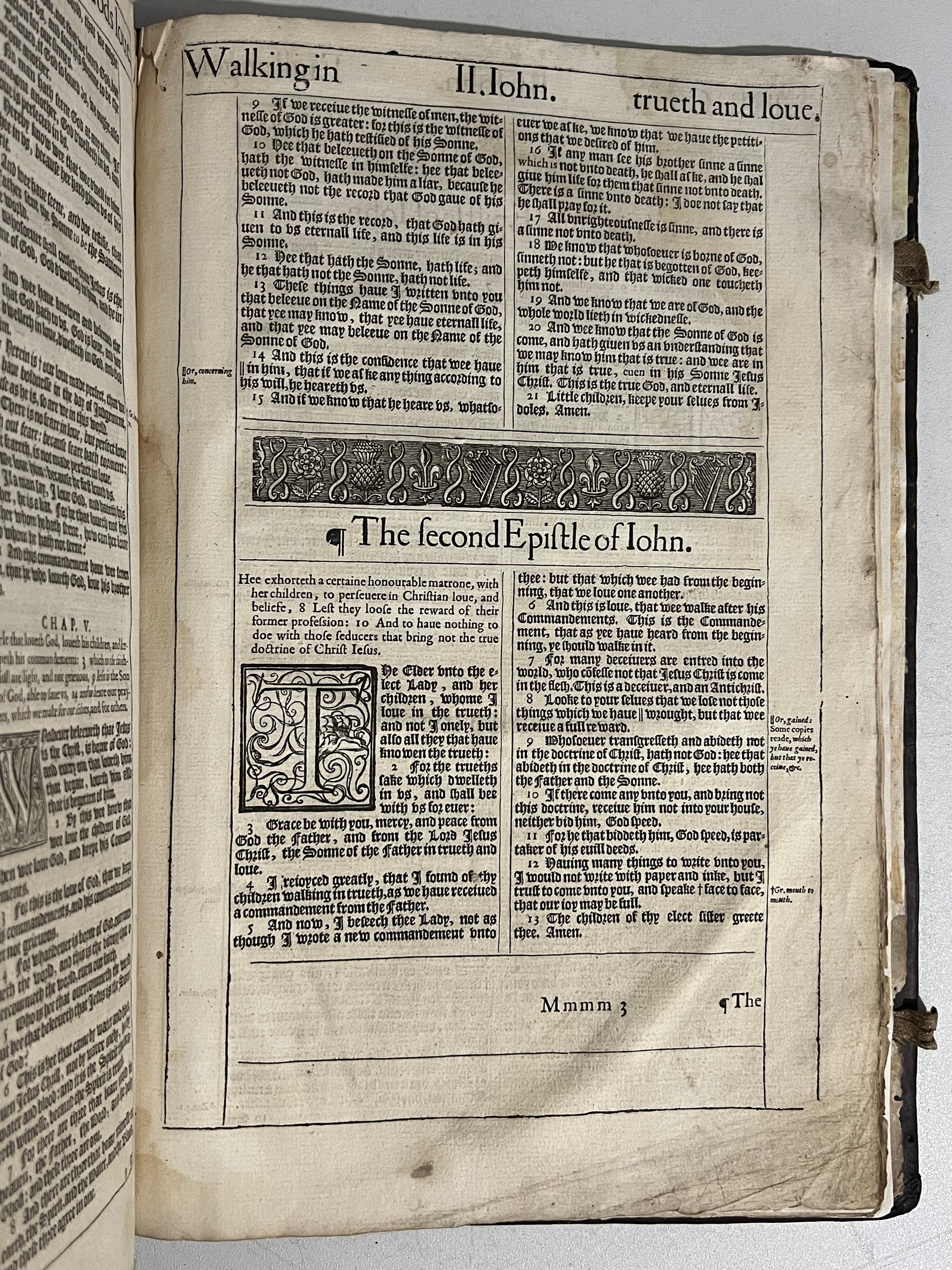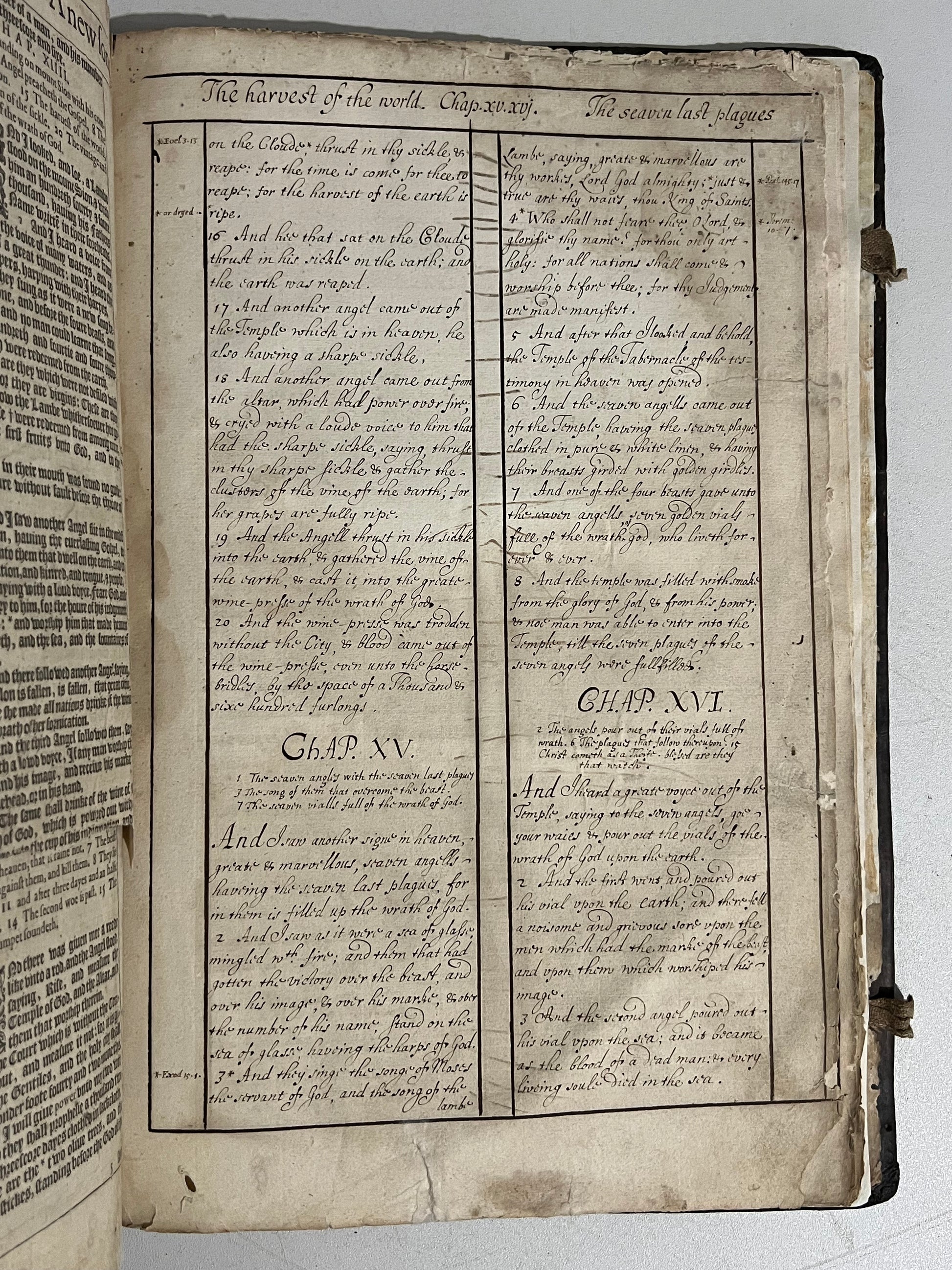"Appointed to be read in Churches", the original King James Bible was printed for use in the pulpit and therefore exposed to continual public use on lecterns, often for centuries. Subsequently, practically all surviving copies are significantly damaged, usually lacking a large number of pages, and are almost always lacking one or, more commonly, both title pages. This example is one of the most remarkable surviving copies to surface and has clearly been incredibly well looked after through its over 400 year lifetime.