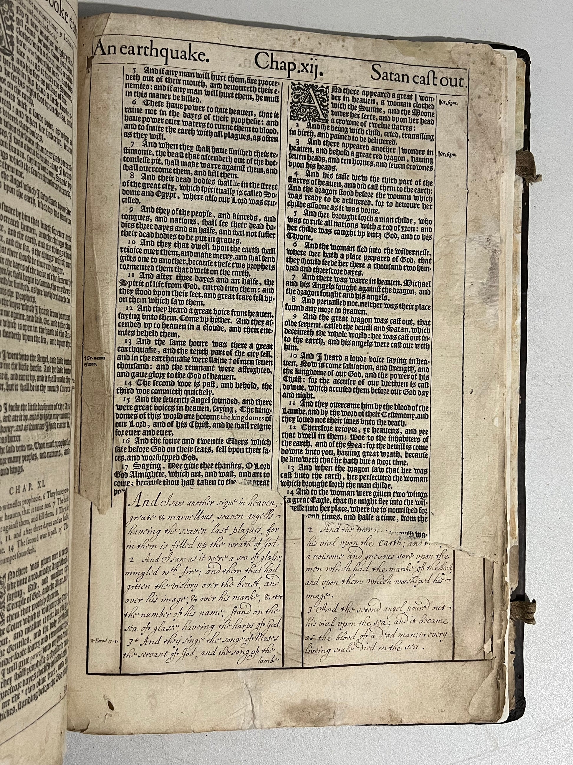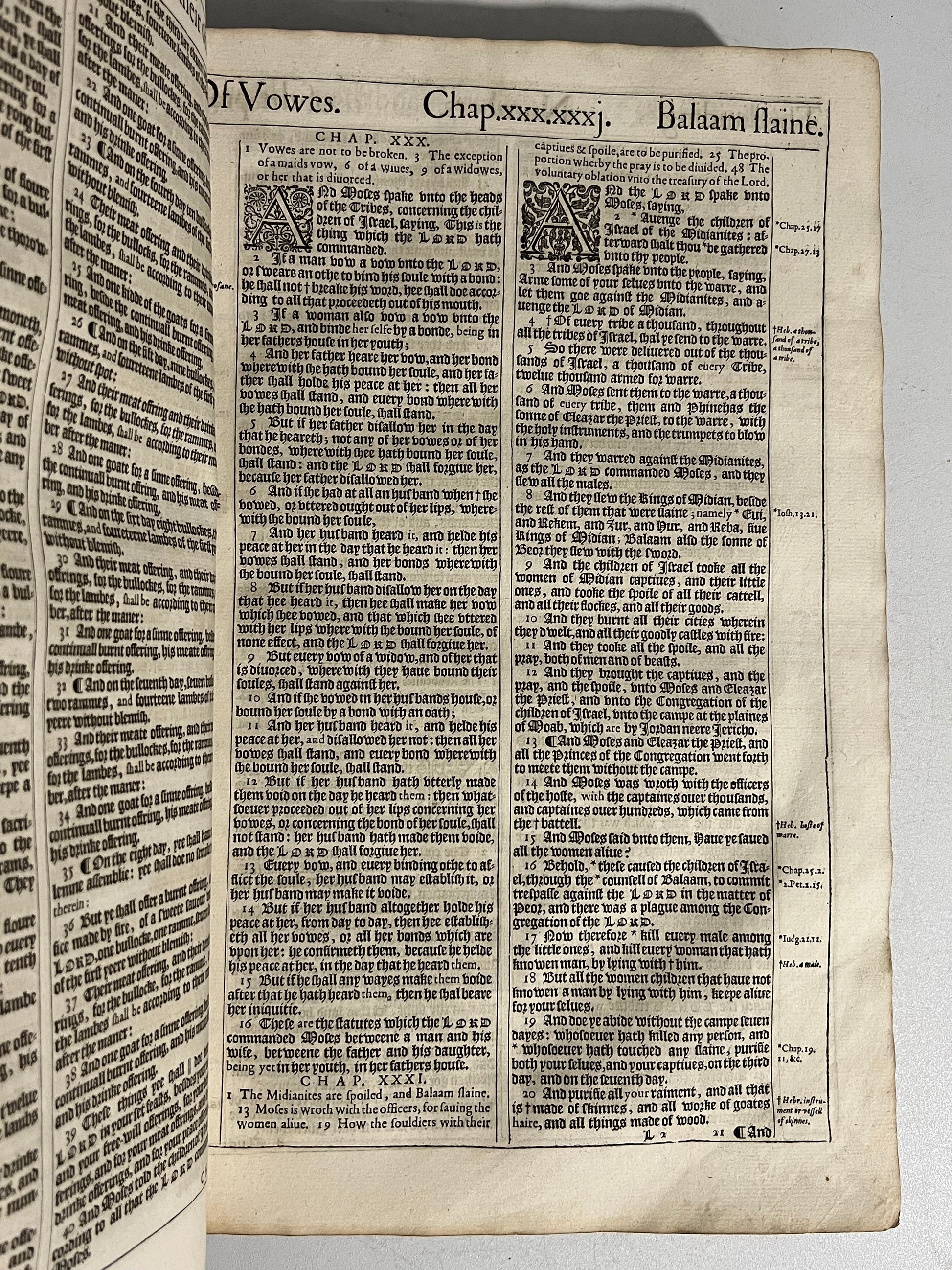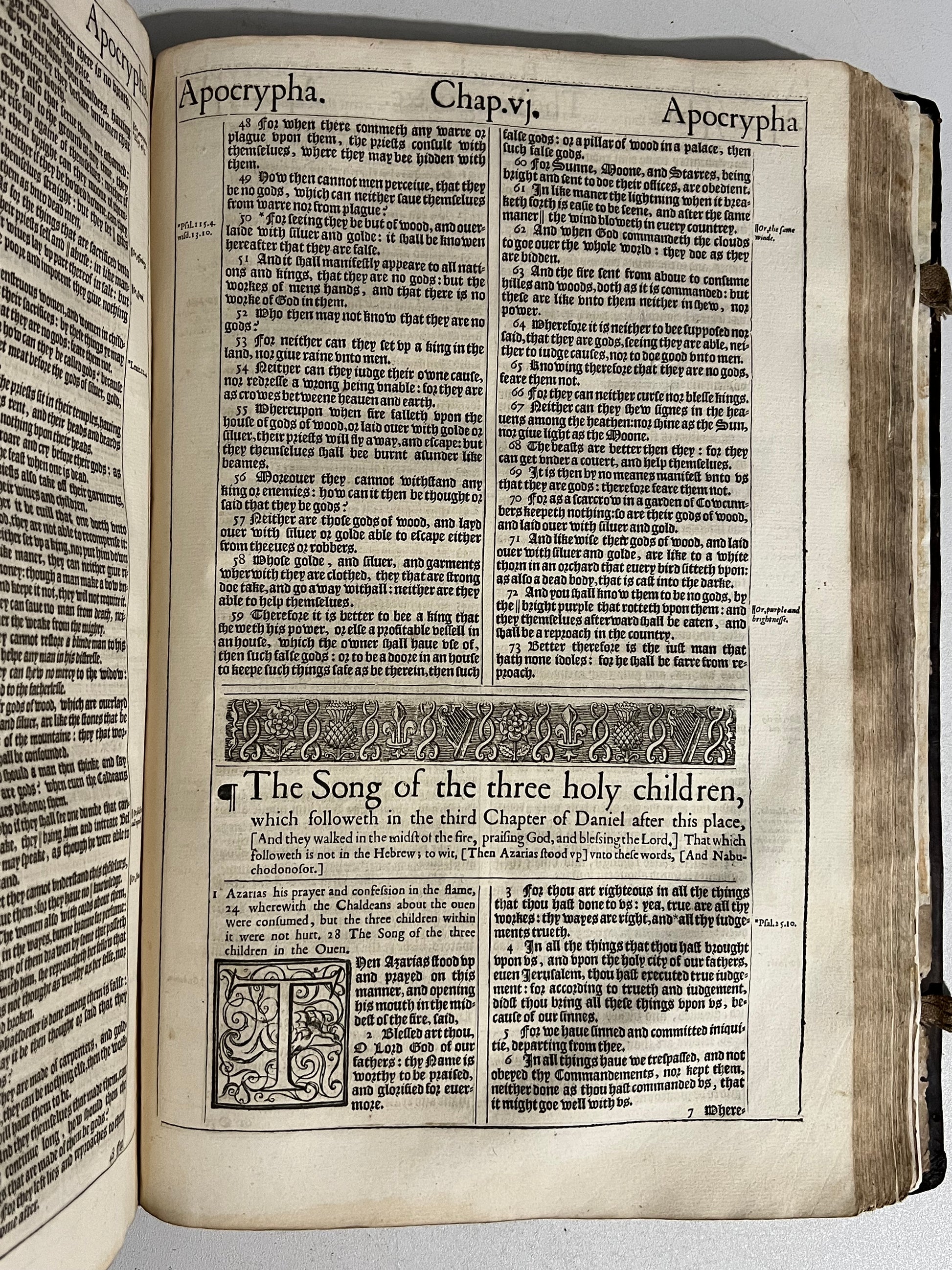 The King James Bible in its original pulpit folio format was printed in 1611, 1613 (as here), 1617, 1634, and 1640. All of these original pulpit folio editions are extremely rare to find in acceptable condition, owing to their extensive ecclesiastical use.